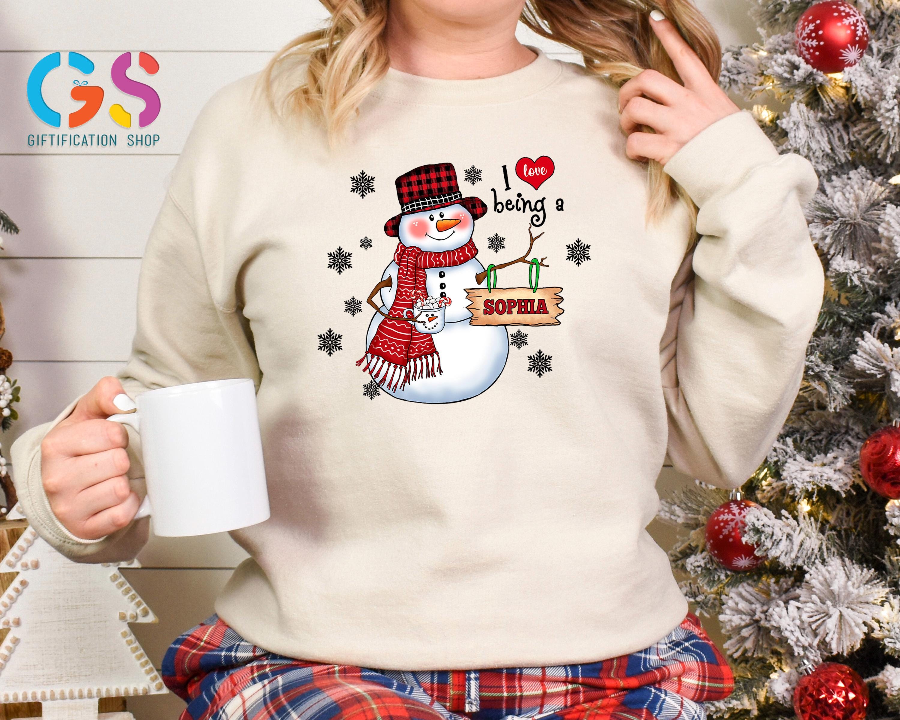 Personalized Christmas Snowman Sweatshirt, Winter Christmas Vibes Sweater, Custom Christmas Gift for Kids