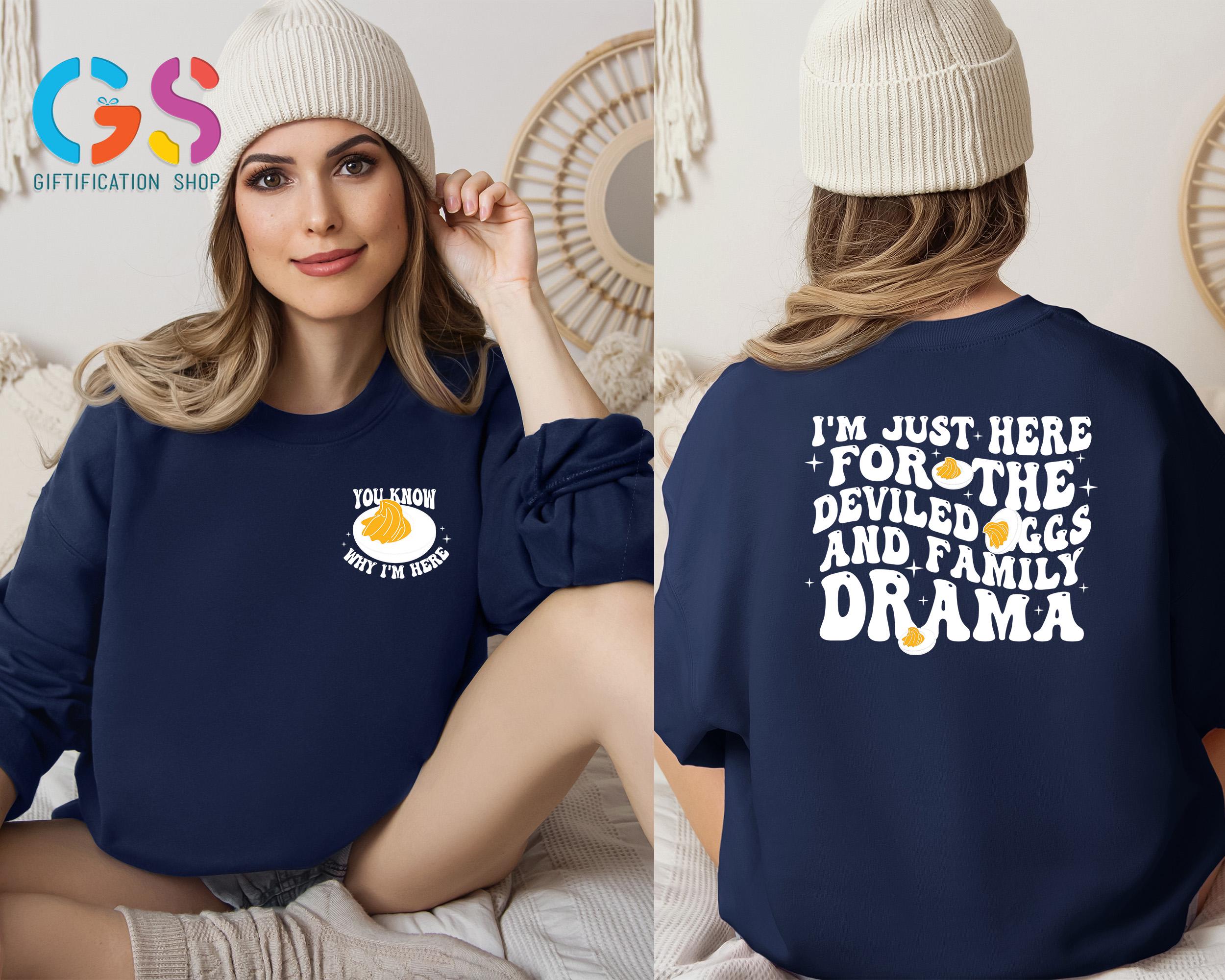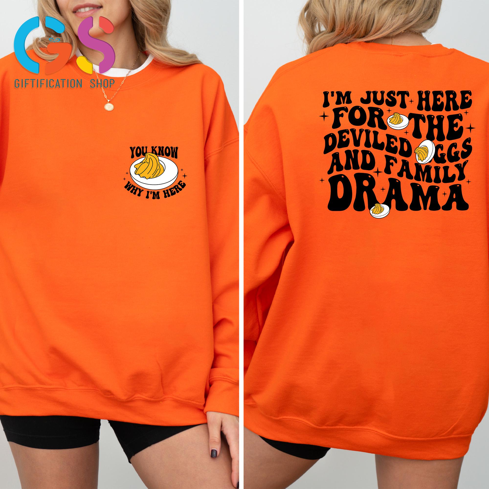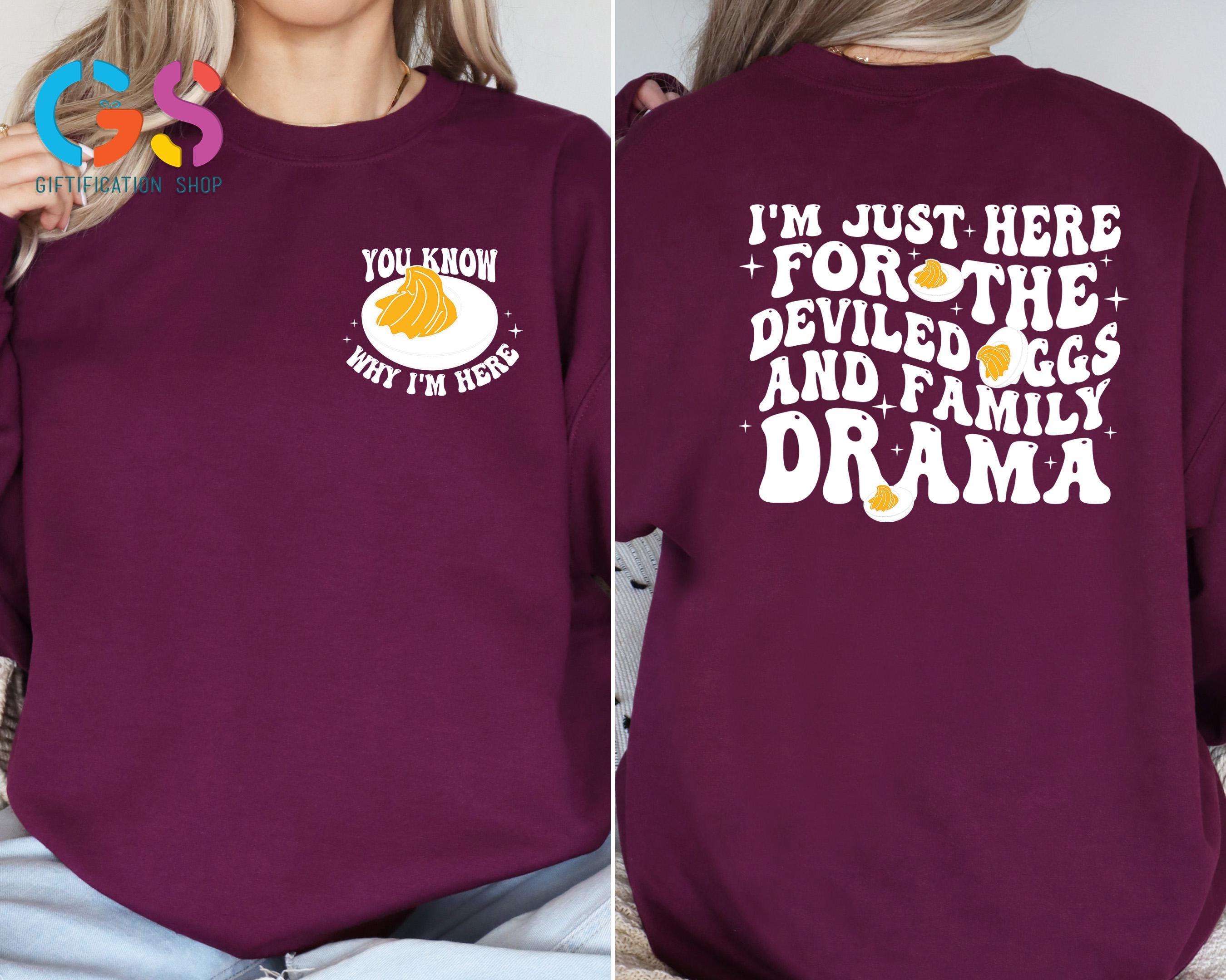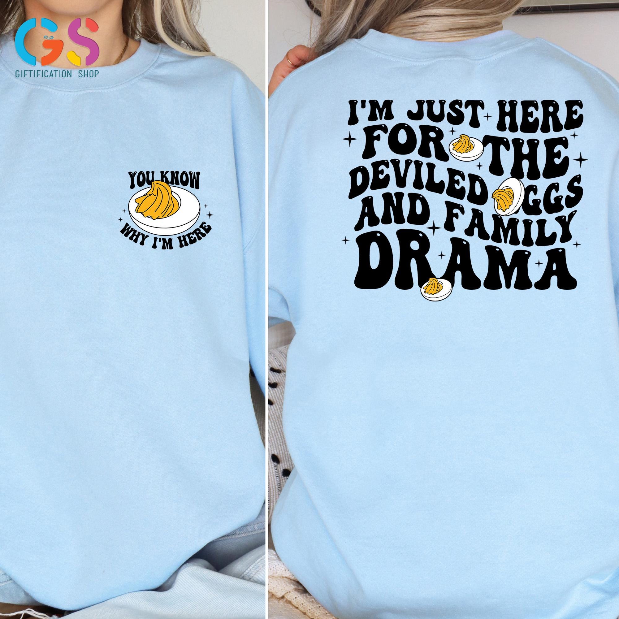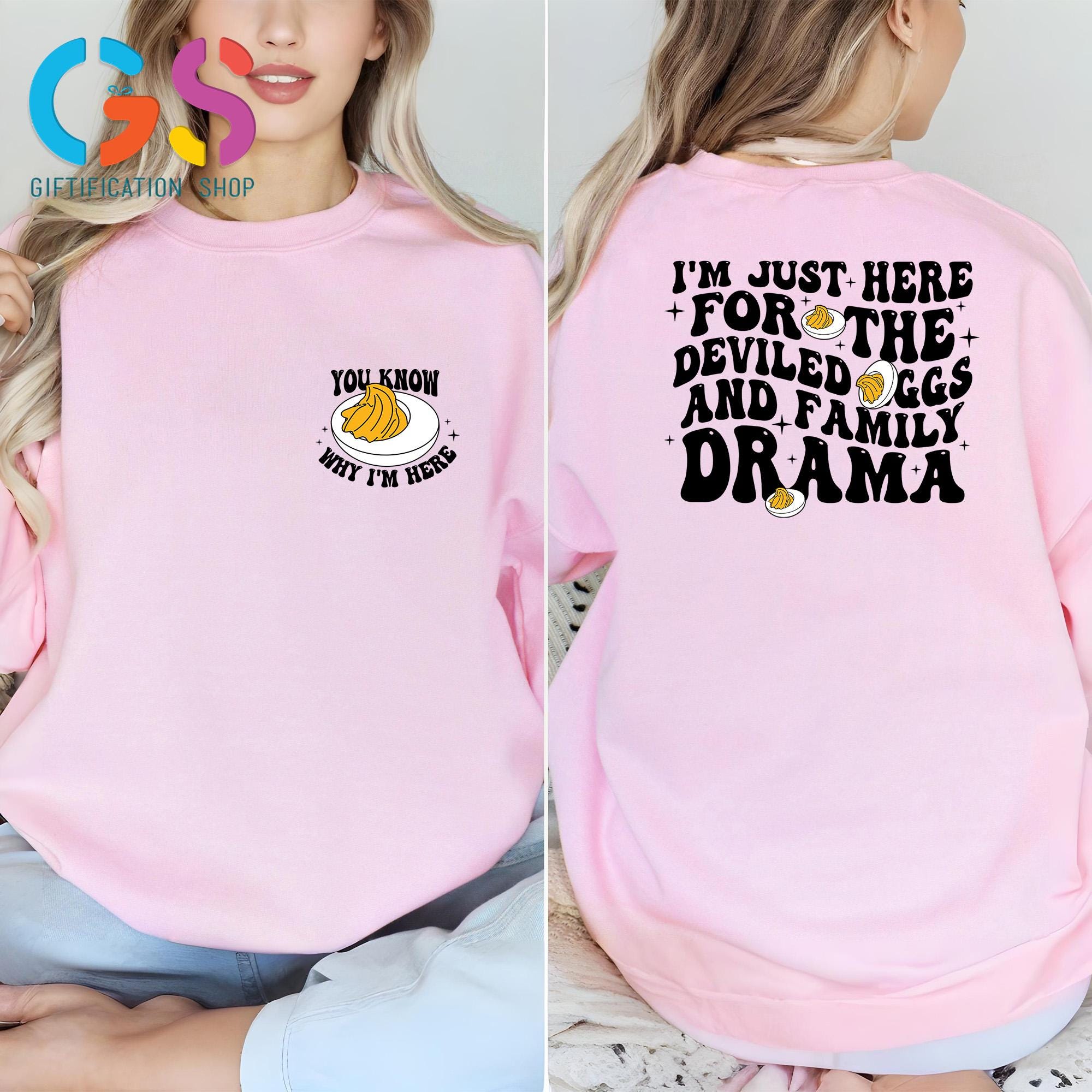 Funny Thanksgiving Sweatshirt, I'm Just Here For The Deviled Eggs & Family Drama, Thanksgiving Dinner Sweater, Holiday Gift