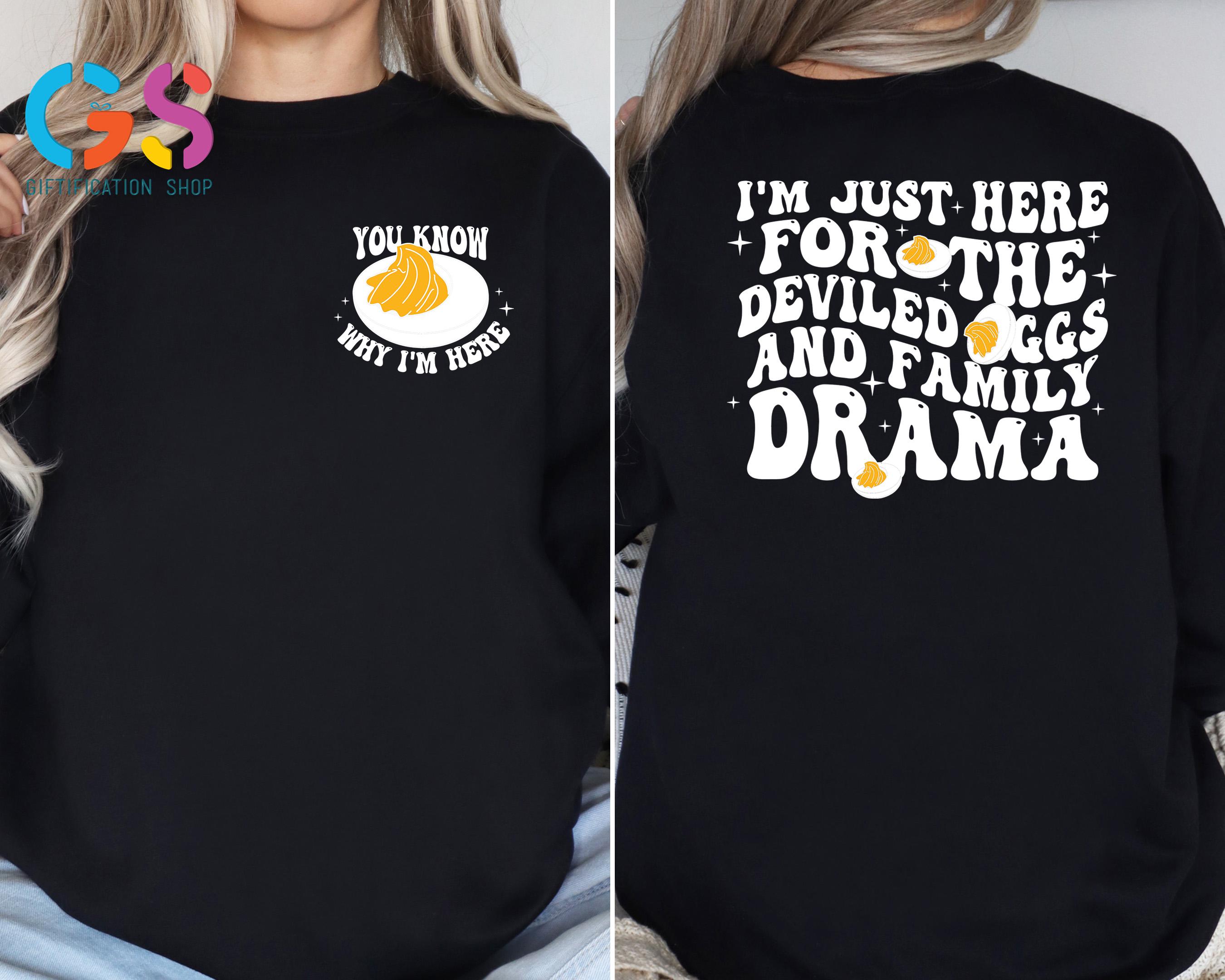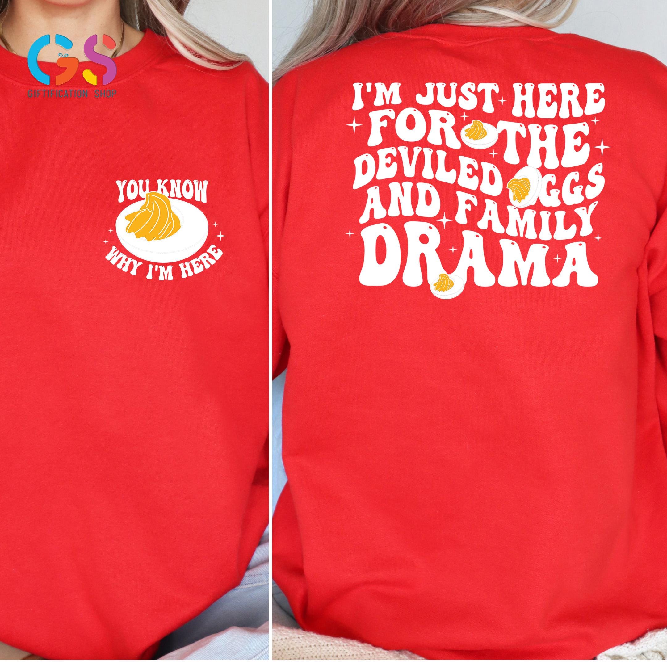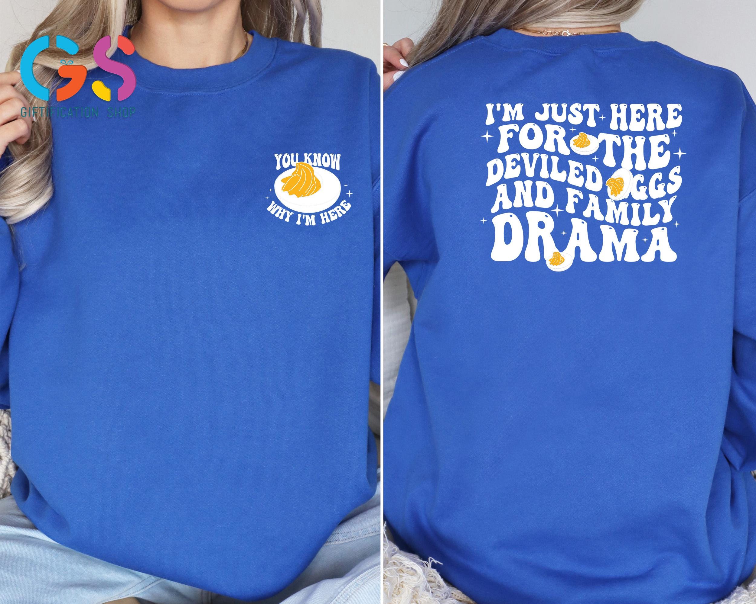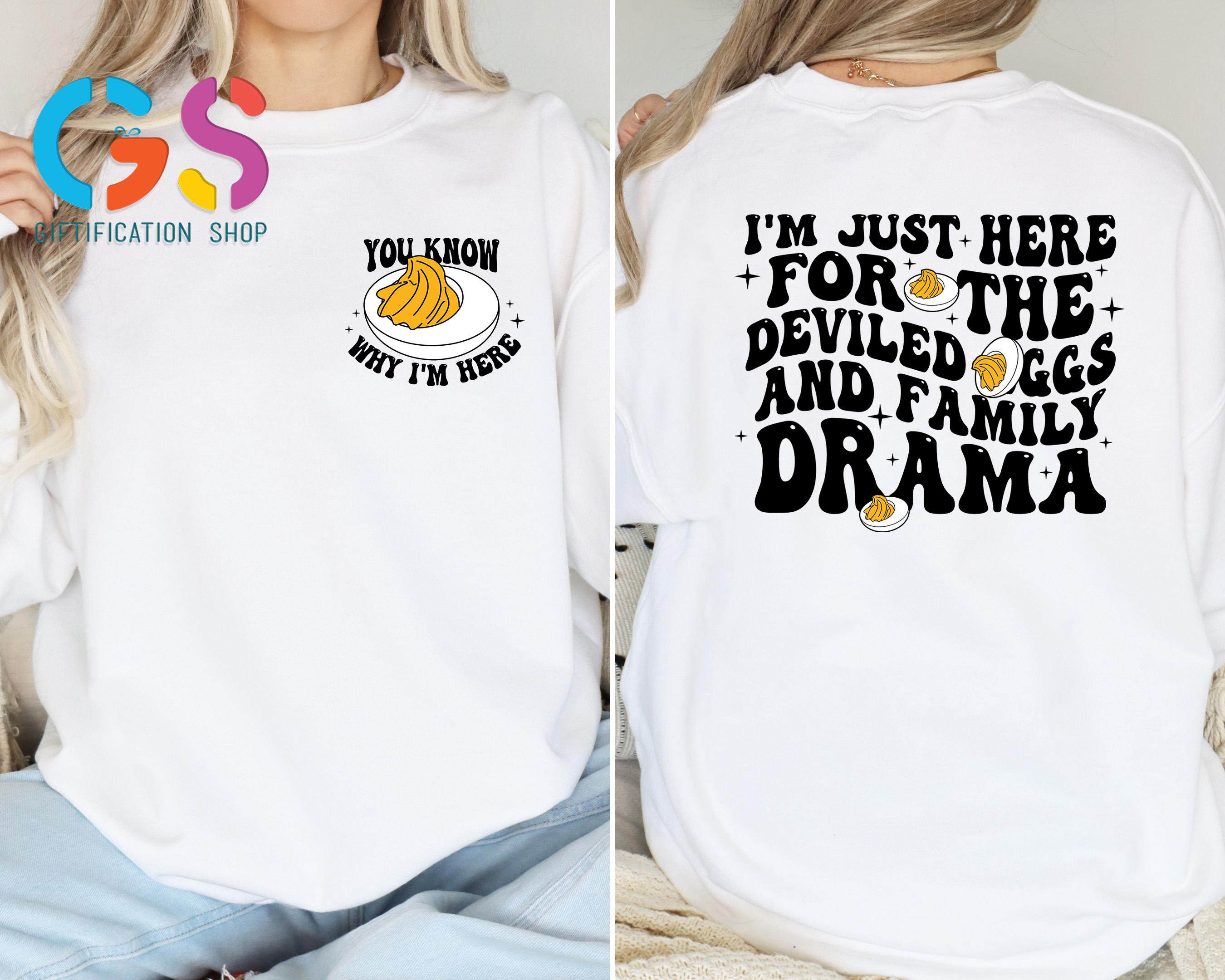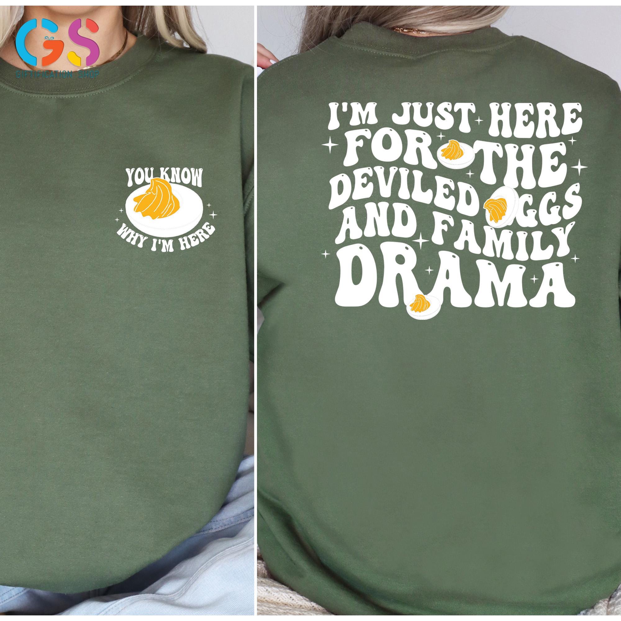 Funny Thanksgiving Sweatshirt, I'm Just Here For The Deviled Eggs & Family Drama, Thanksgiving Dinner Sweater, Holiday Gift