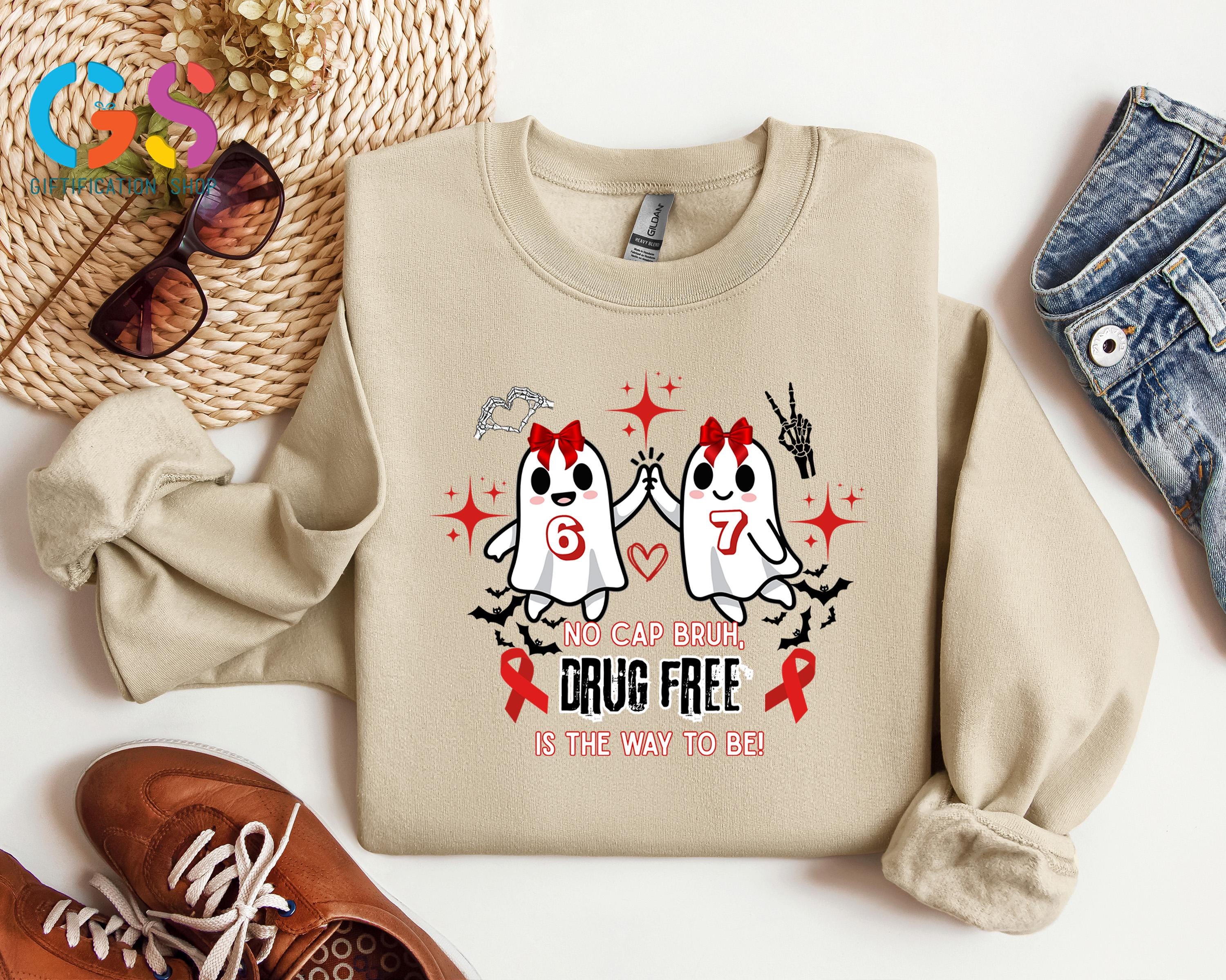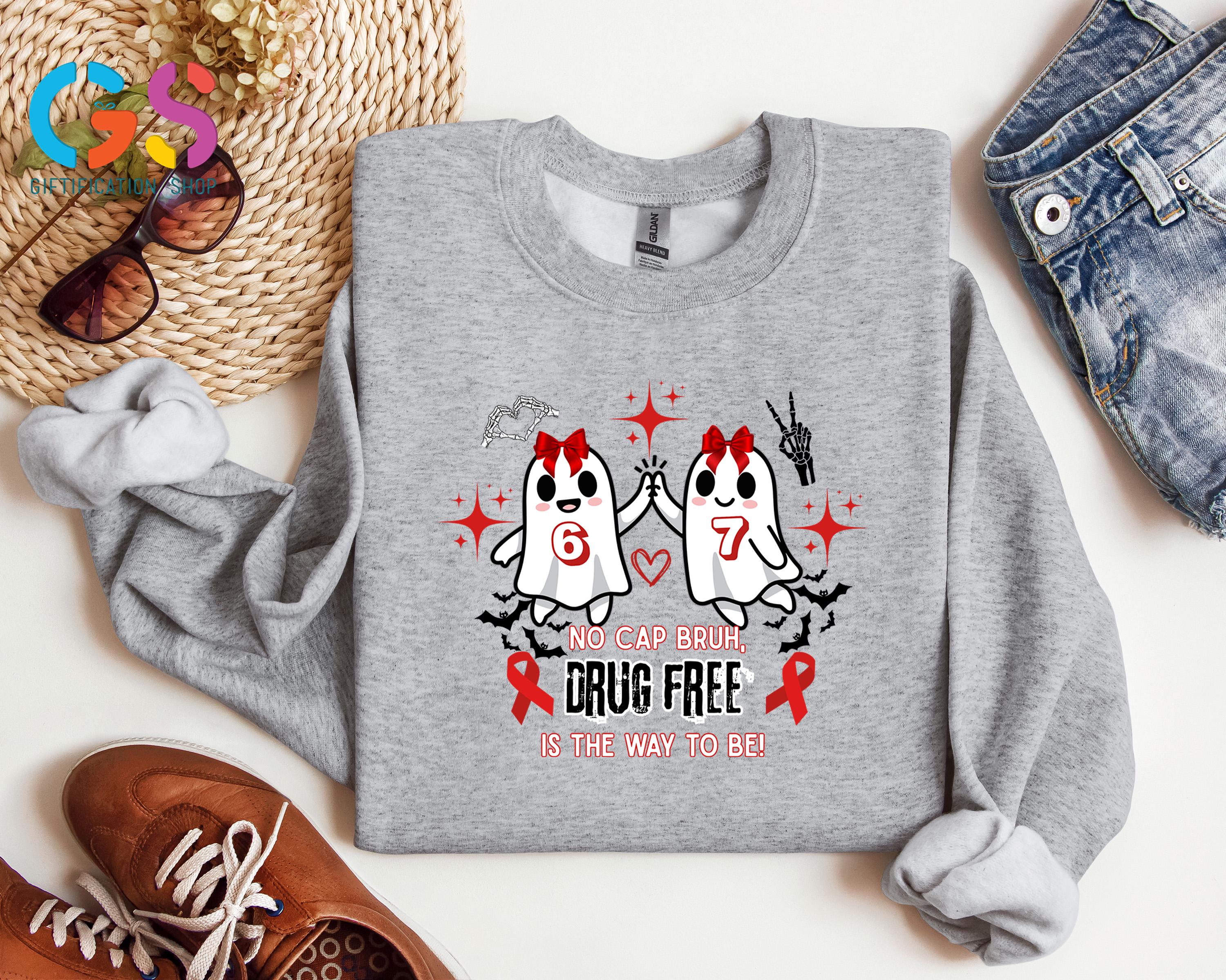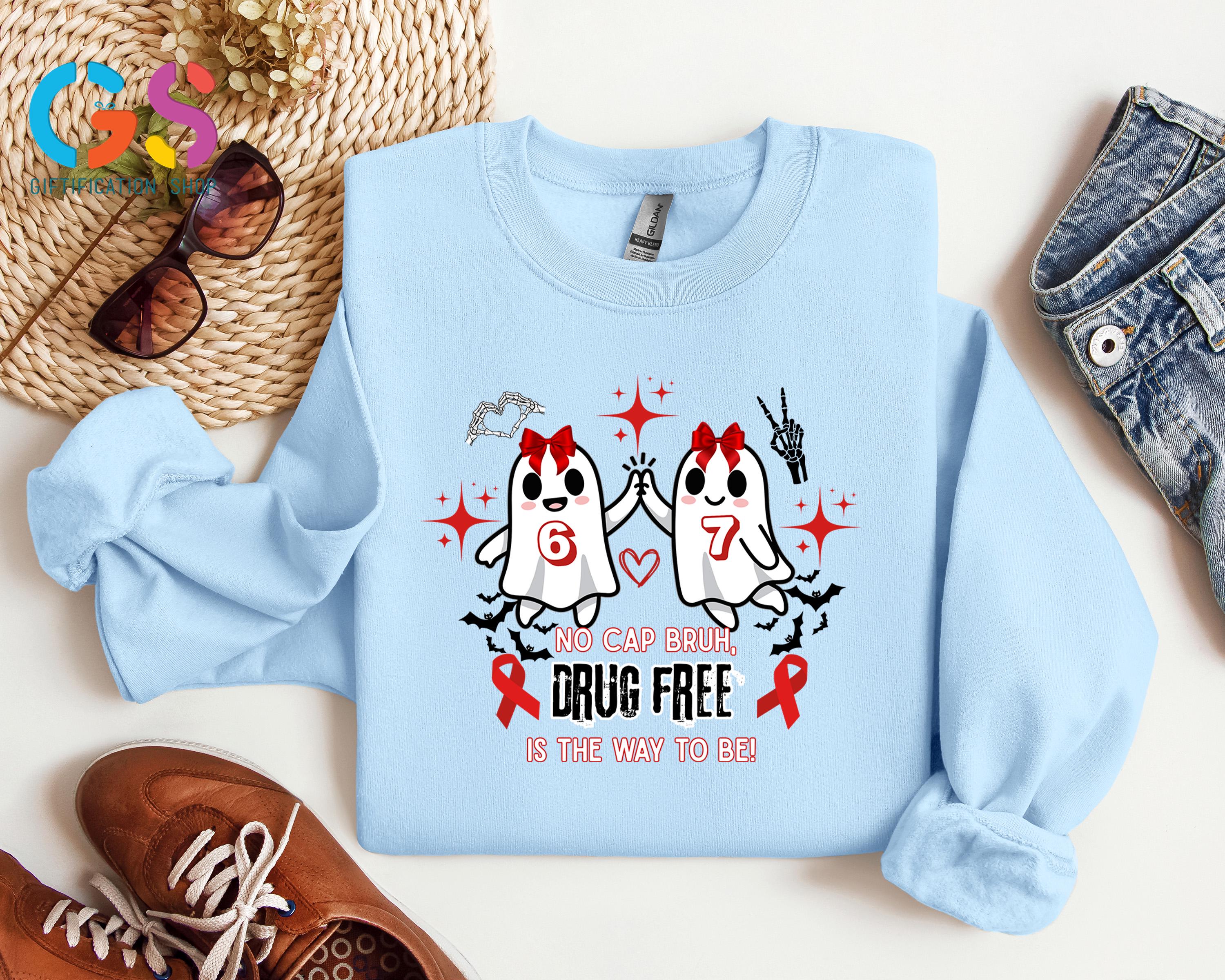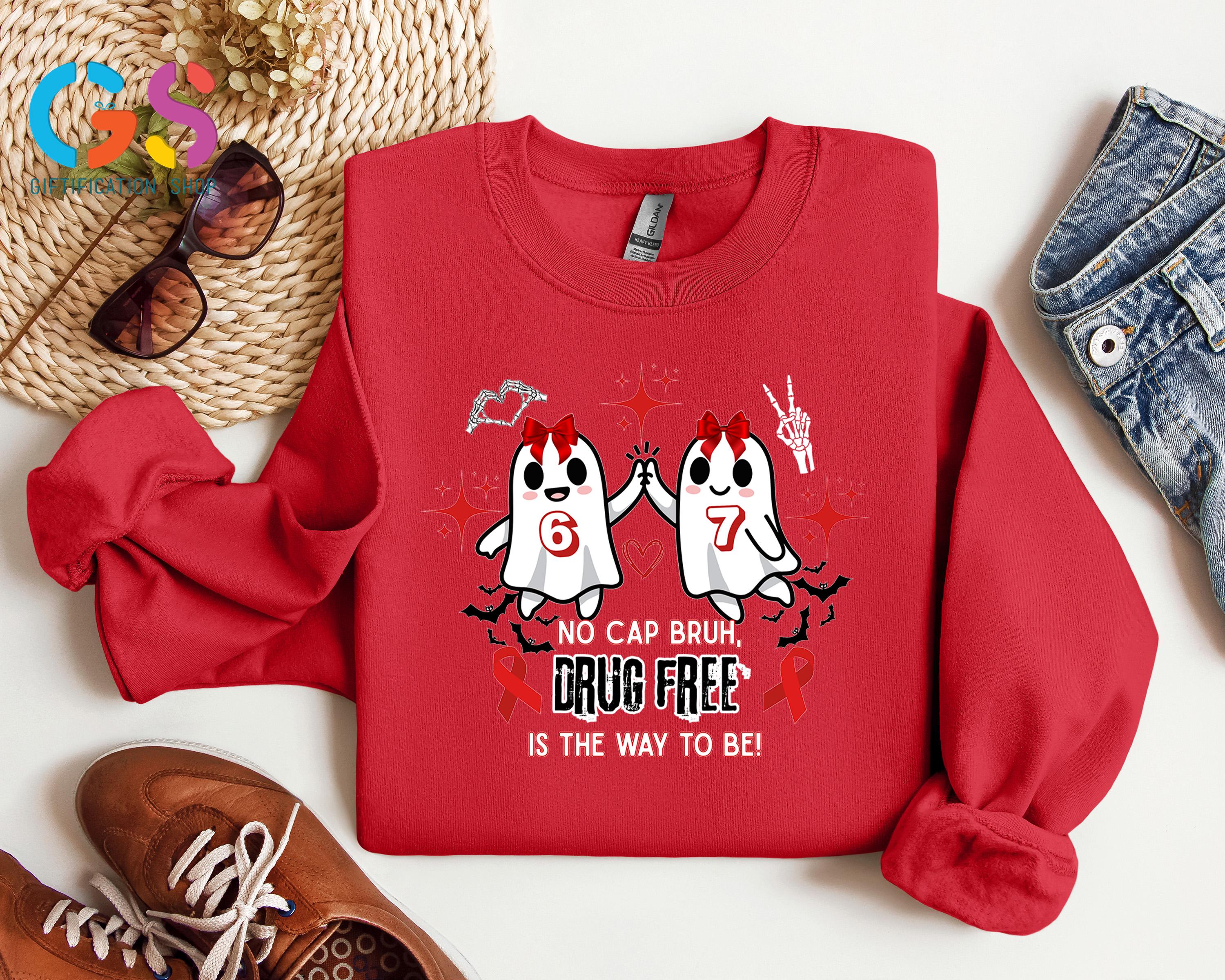Cute Ghost Red Ribbon Week Sweatshirt, Halloween 6 7 Sweater, No Cap Drug Free Sweatshirt, Ghost Anti-Drug Awareness Sweatshirt