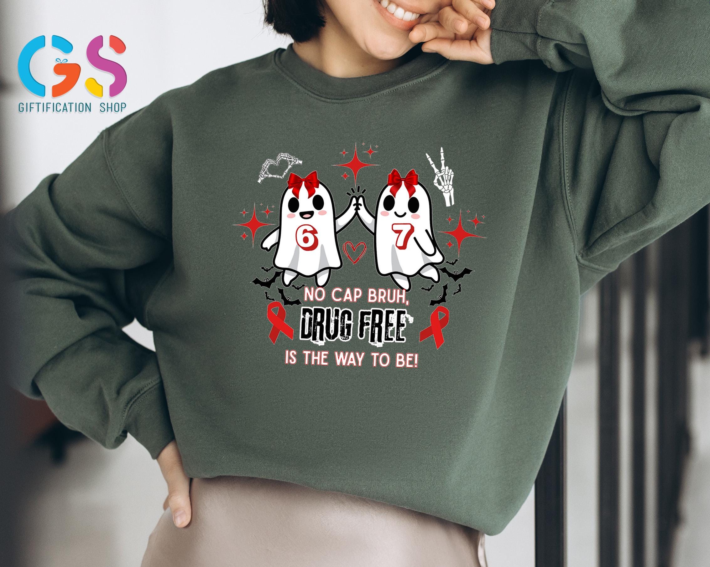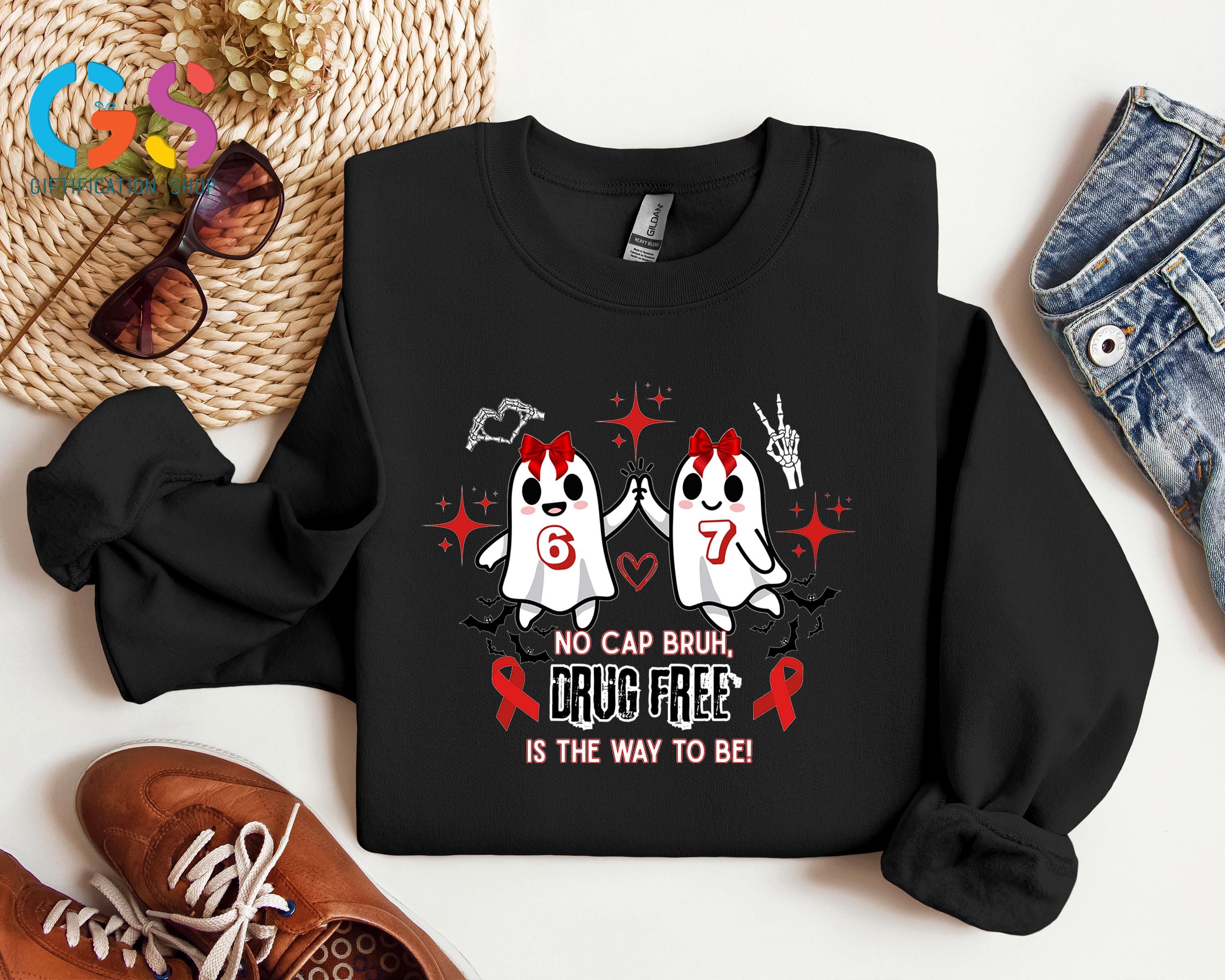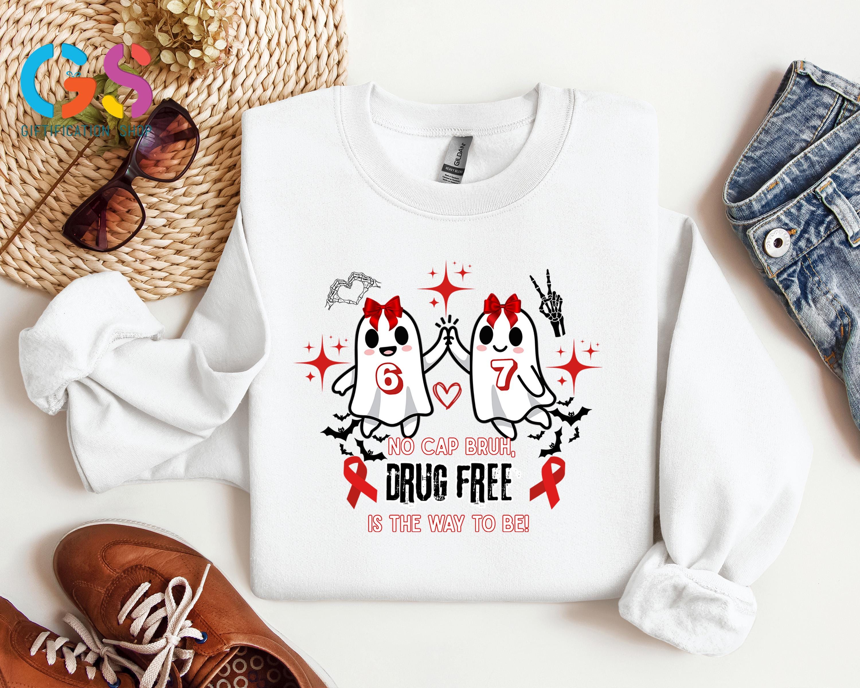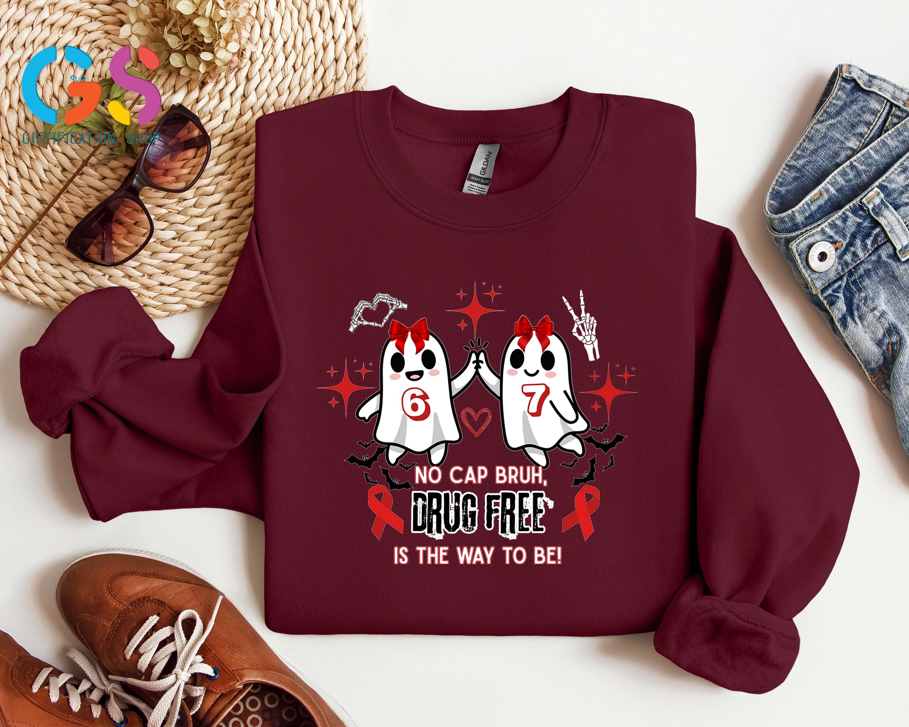 Cute Ghost Red Ribbon Week Sweatshirt, Halloween 6 7 Sweater, No Cap Drug Free Sweatshirt, Ghost Anti-Drug Awareness Sweatshirt