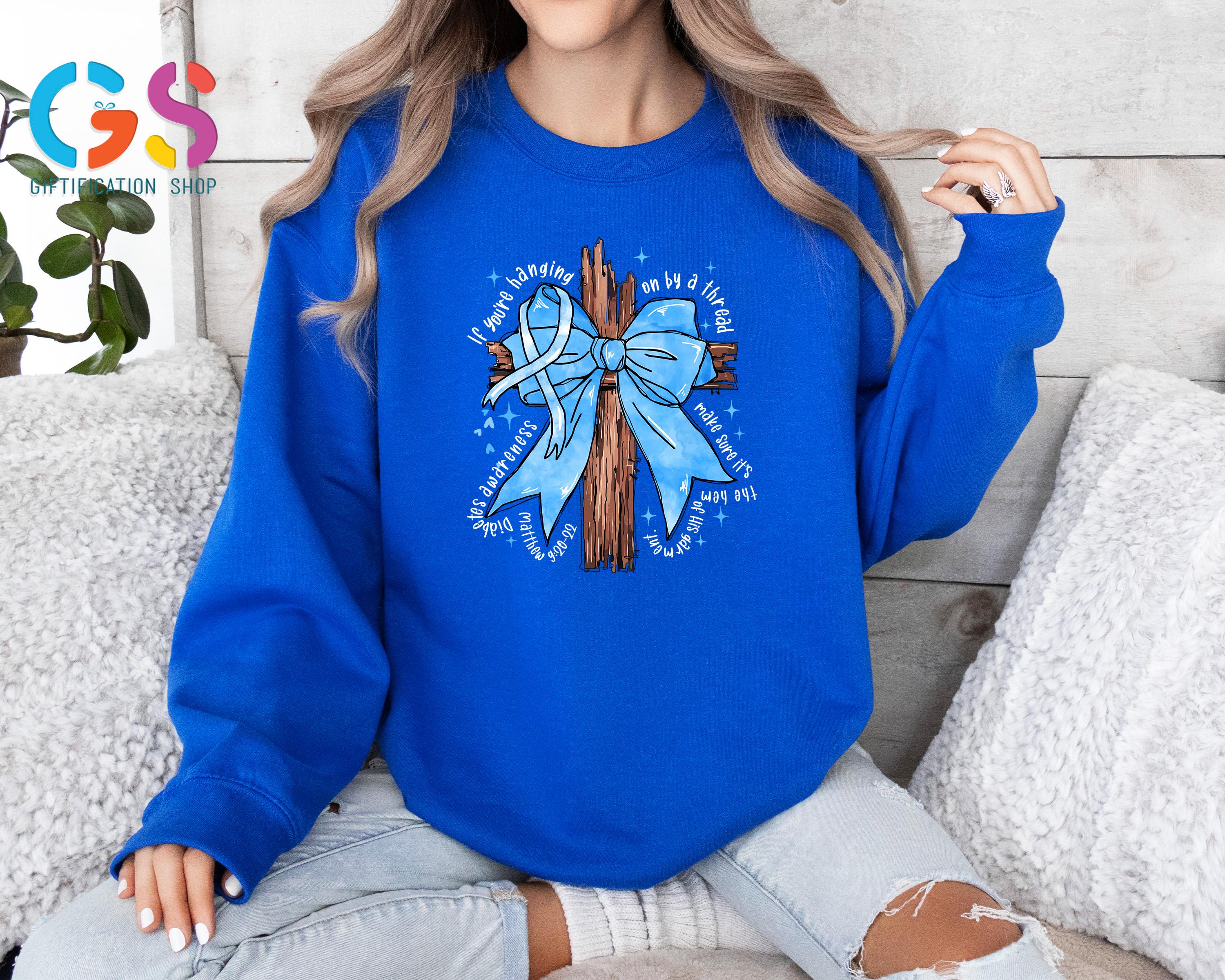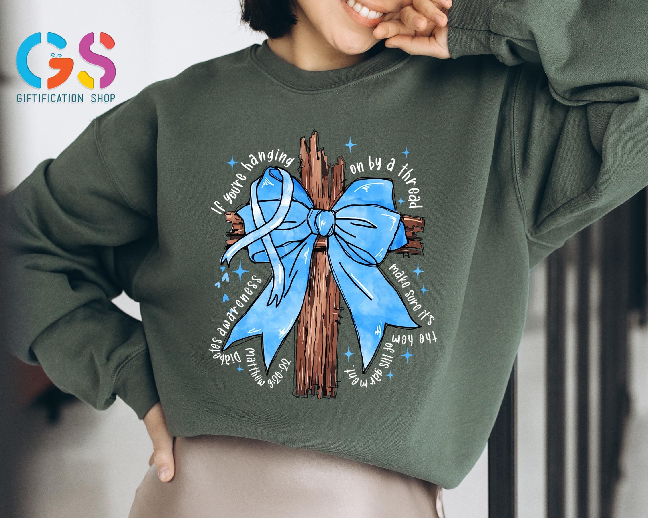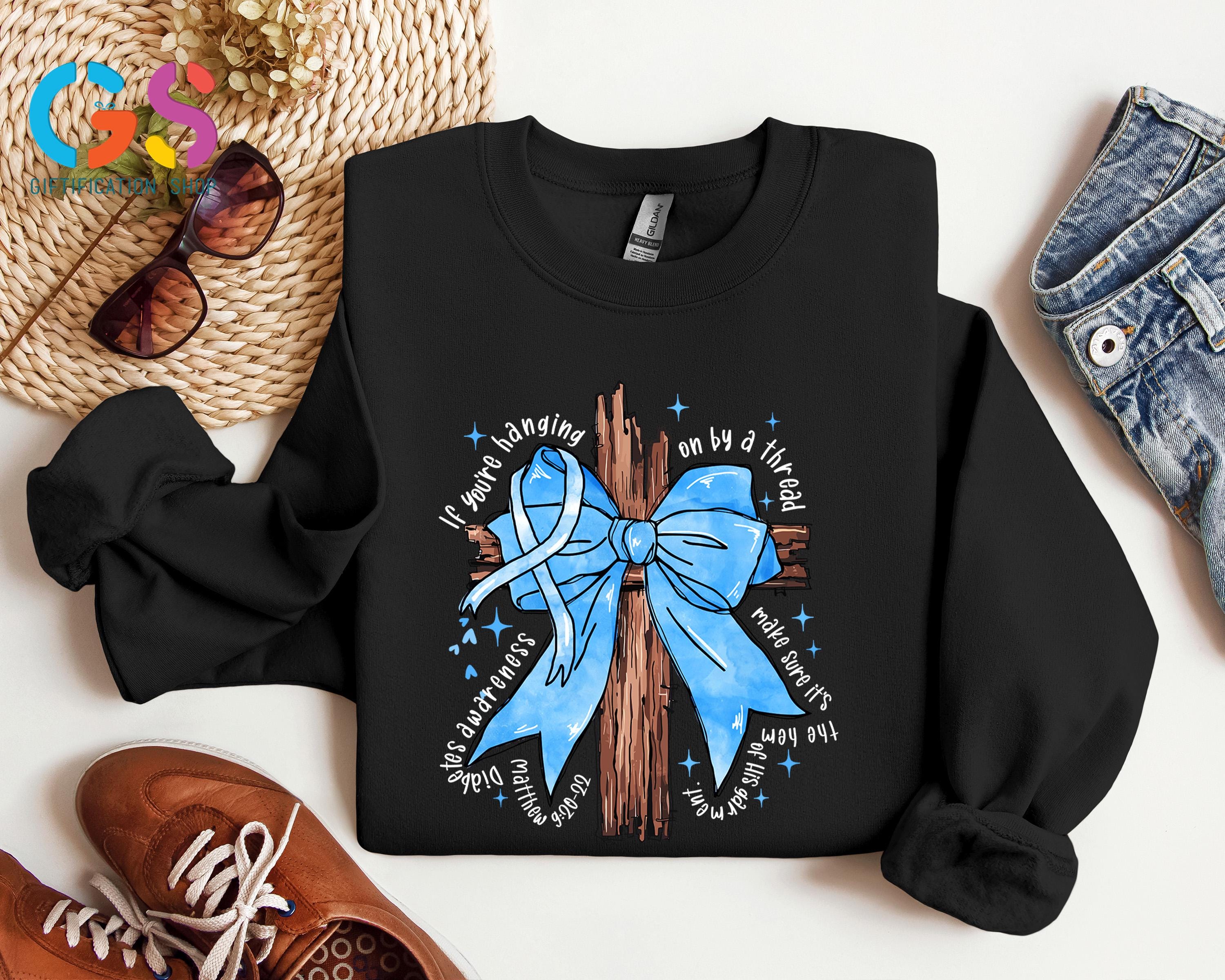 Diabetes Awareness Sweatshirt with Cross, Blue Riboon Sweater, Diabetes Awareness Gift, Fight Diabetes Gift, Christian Diabetes Hoodie
