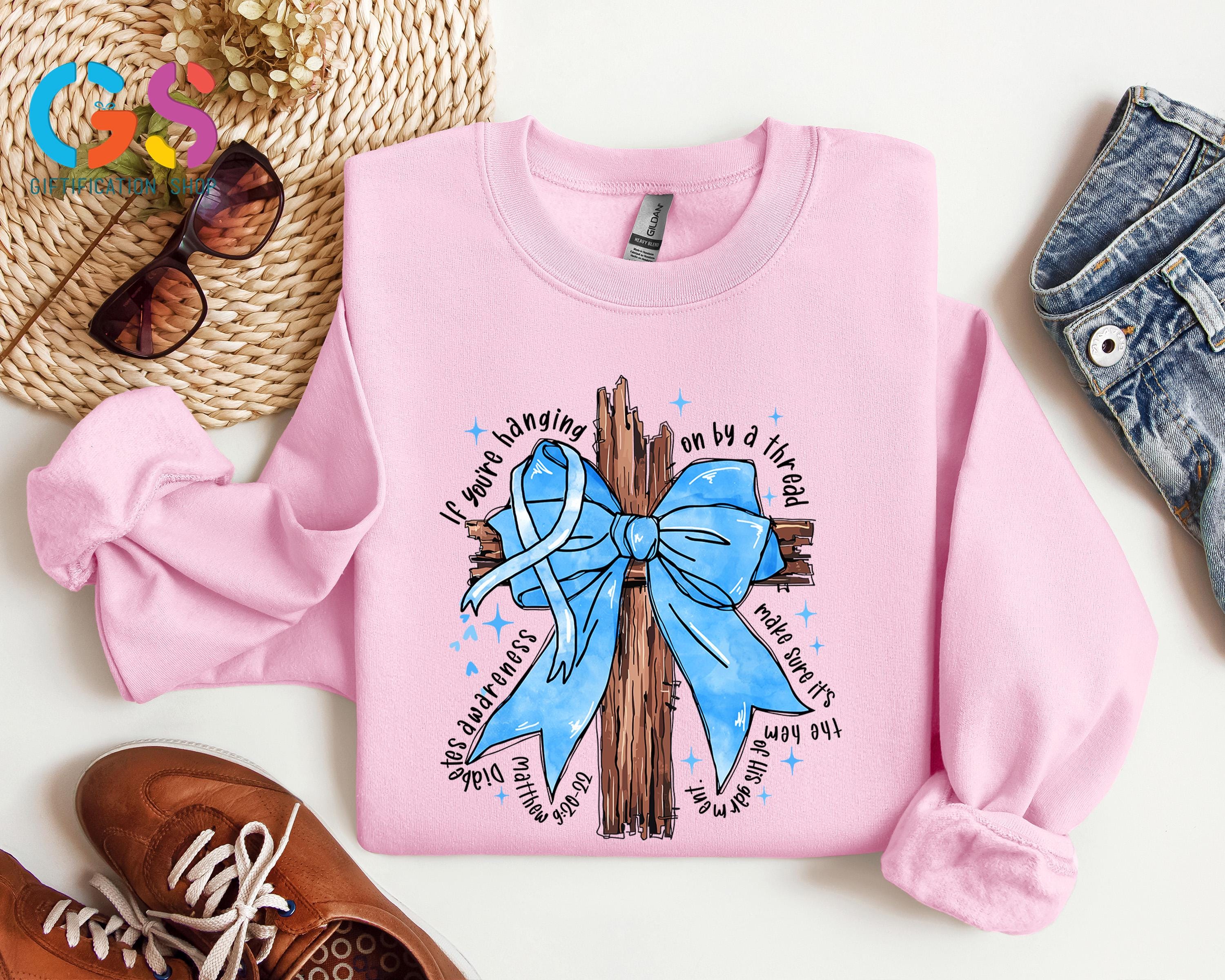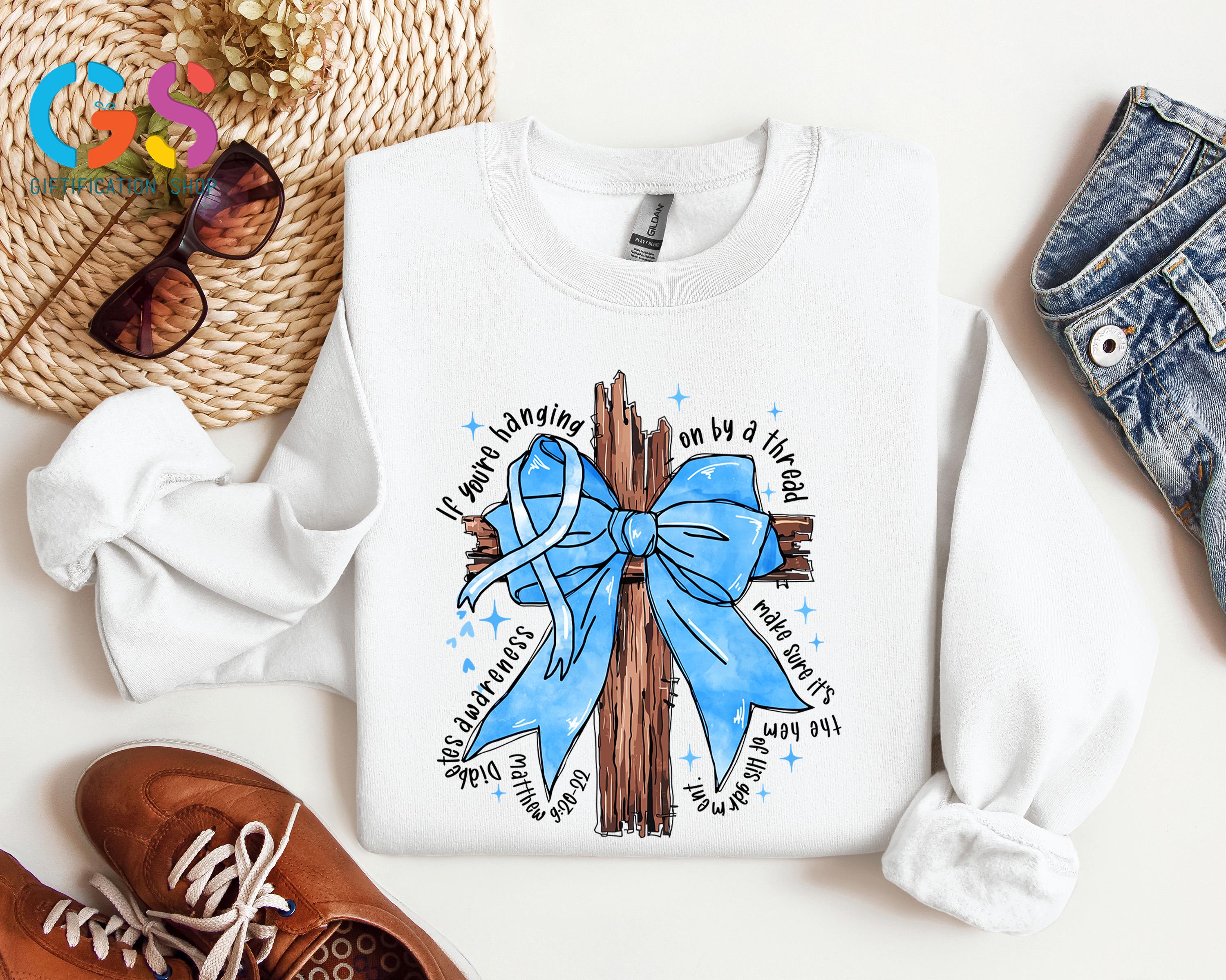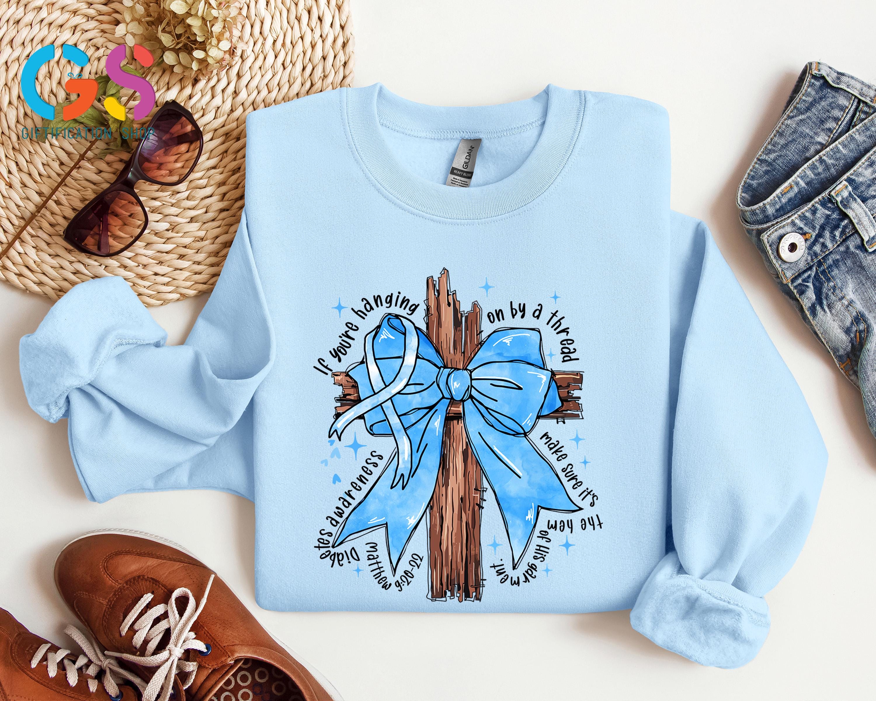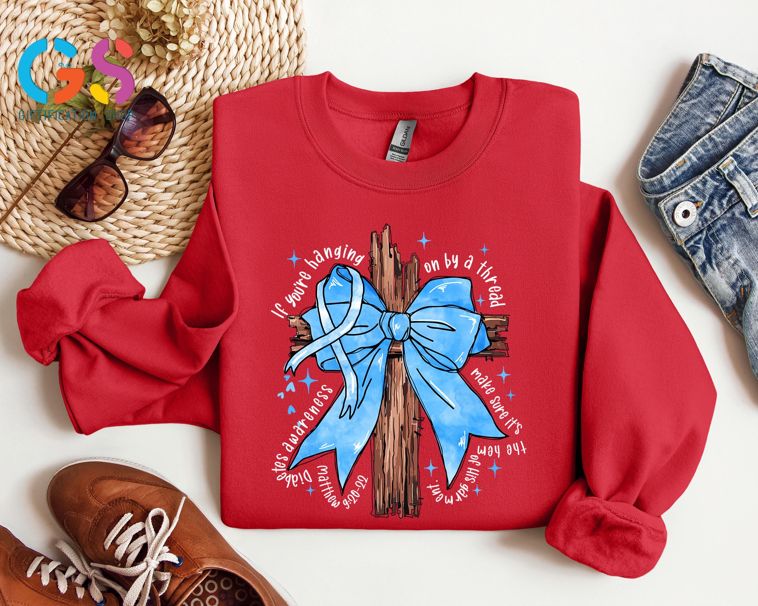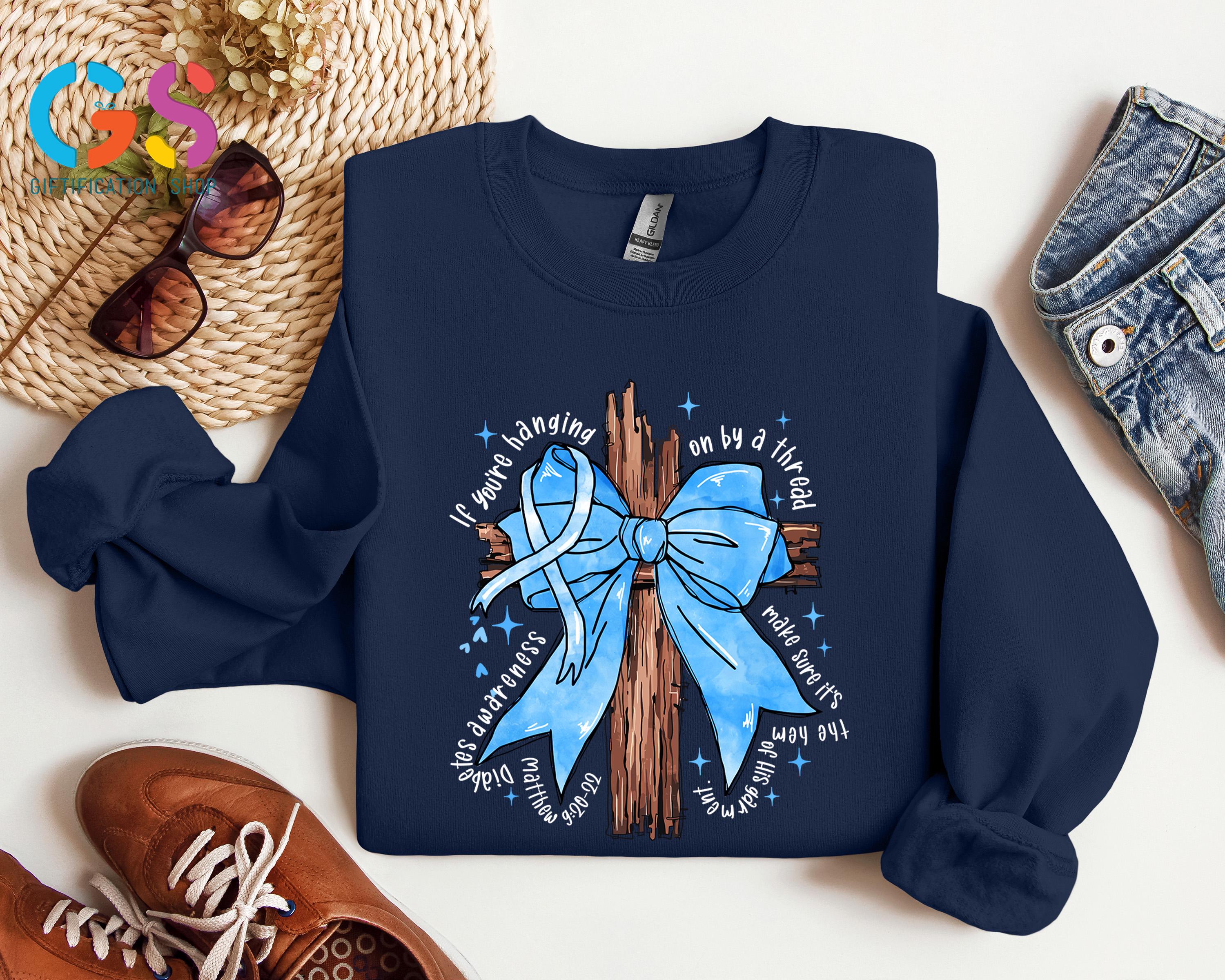 Show your support and spread awareness with this meaningful Diabetes Awareness sweatshirt featuring a cross and blue ribbon design. Perfect for those living with diabetes, their loved ones, or anyone supporting the cause, this sweatshirt blends faith, hope, and strength in a powerful way.