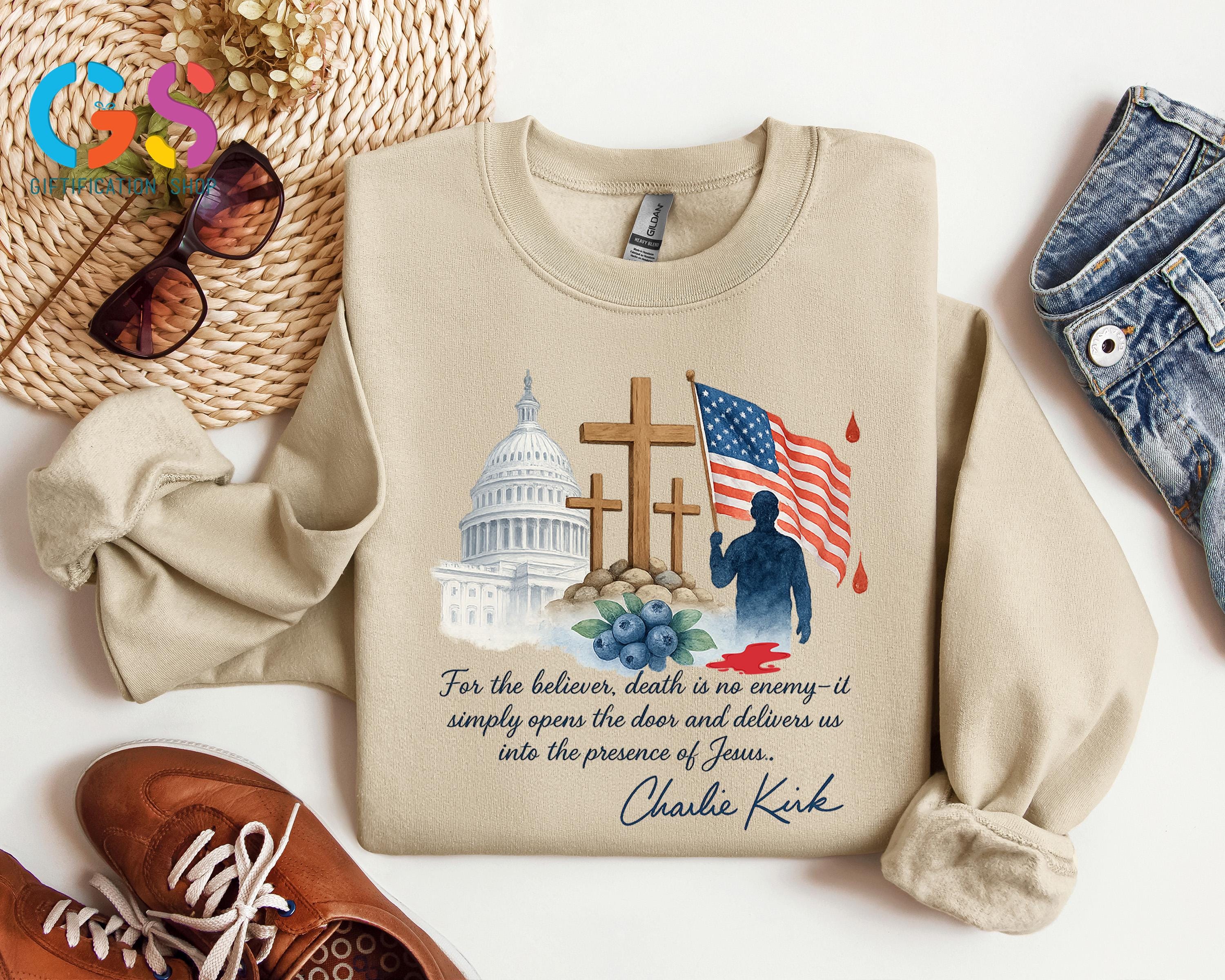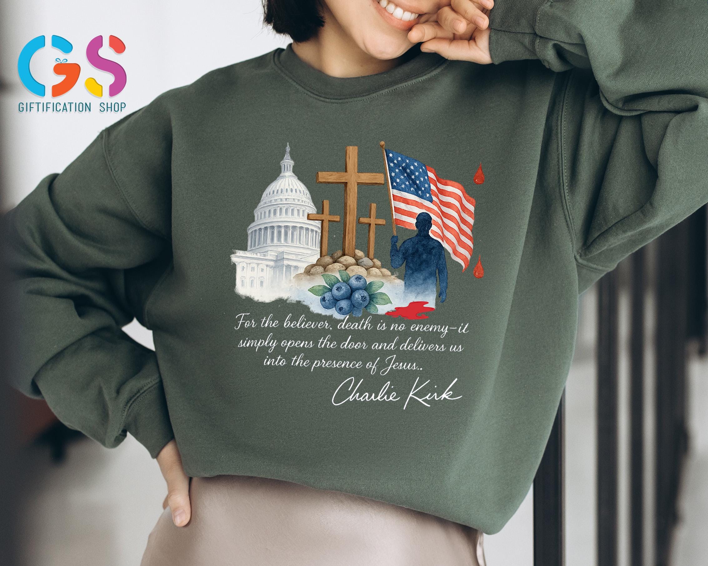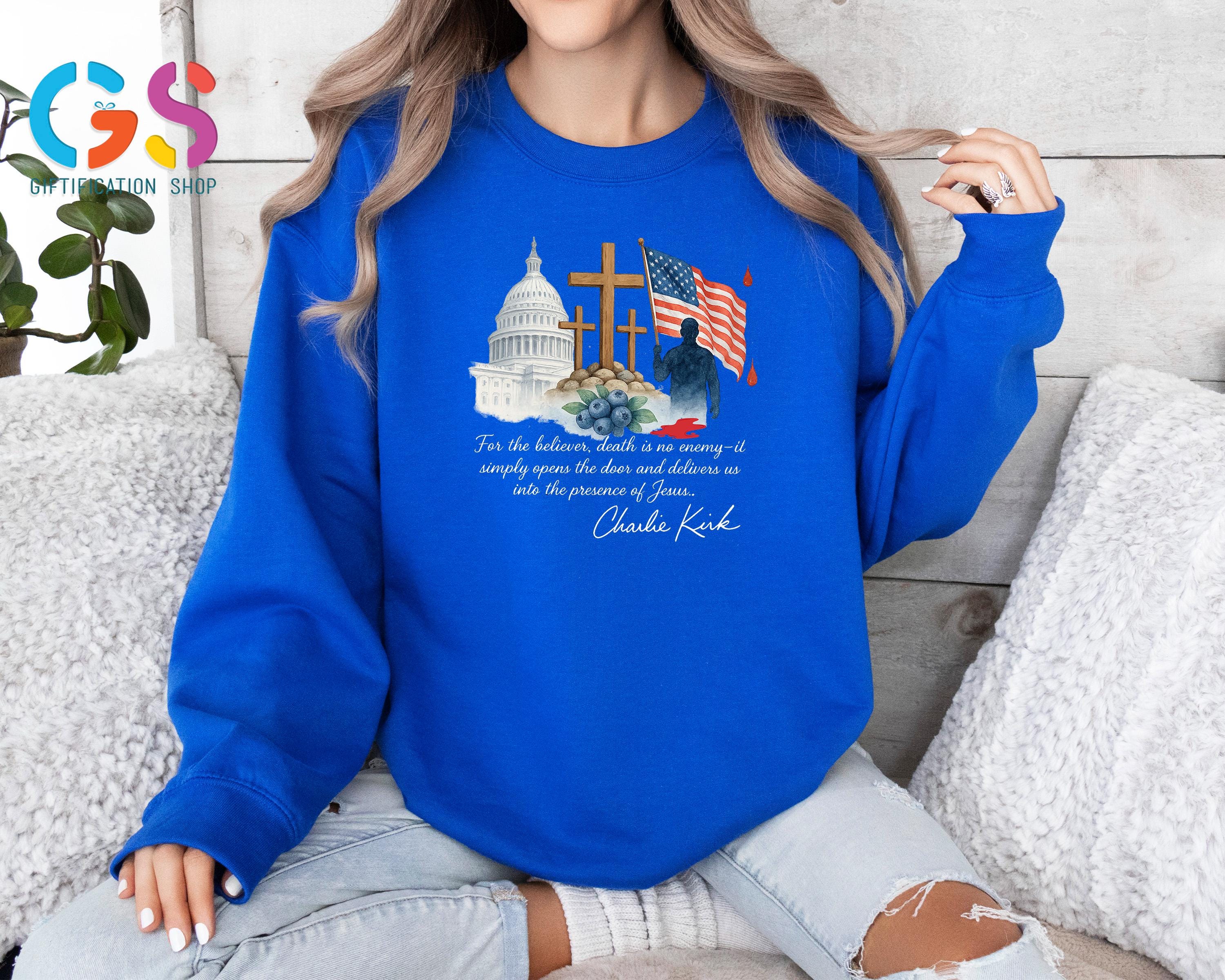 Charlie Kirk Freedom Sweatshirt, Christian Activist Sweater, Faith-Based Patriotic Sweatshirt, Religious Hoodie, USA Flag with Cross