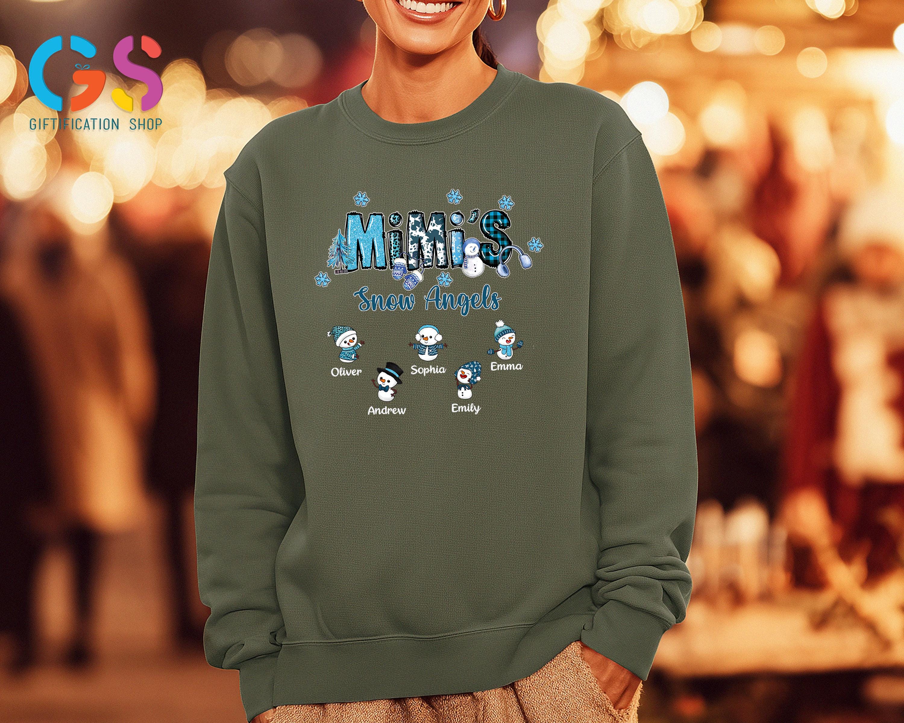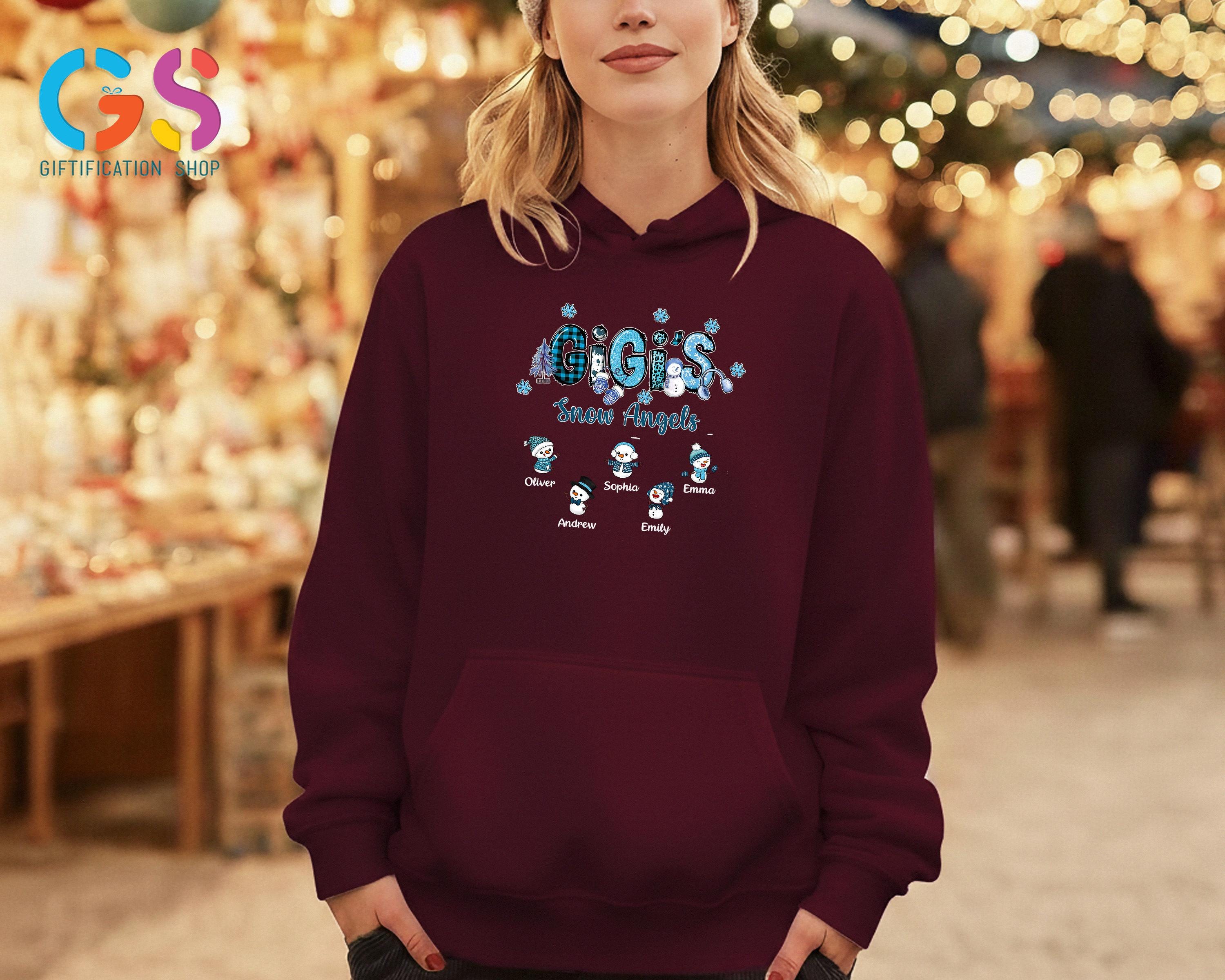 Personalized Winter Grandma Sweatshirt with Kids Names, Custom Frozen Letters Nana Sweater, Grandma Snow Angels Sweatshirt, Snowflake Hoodie