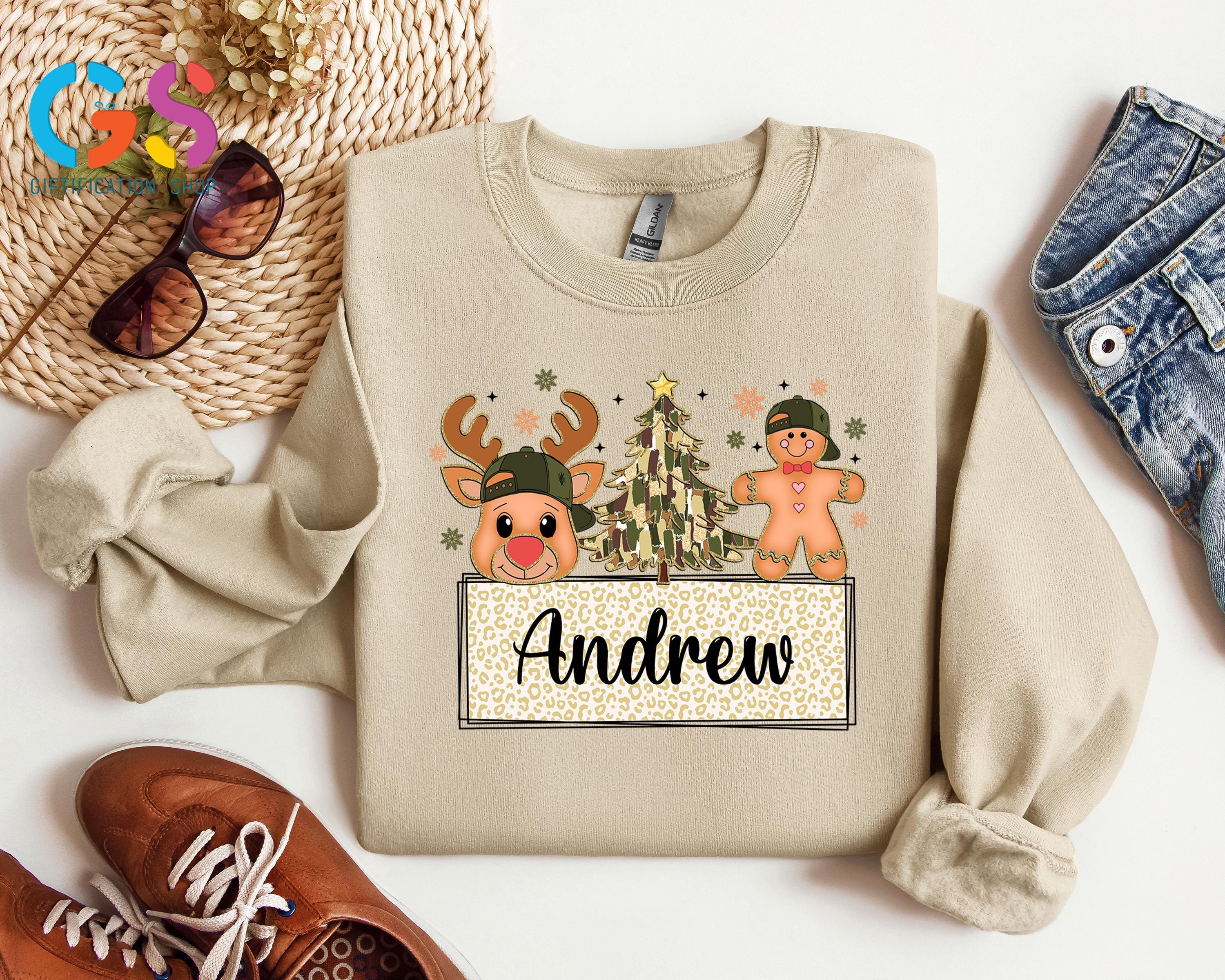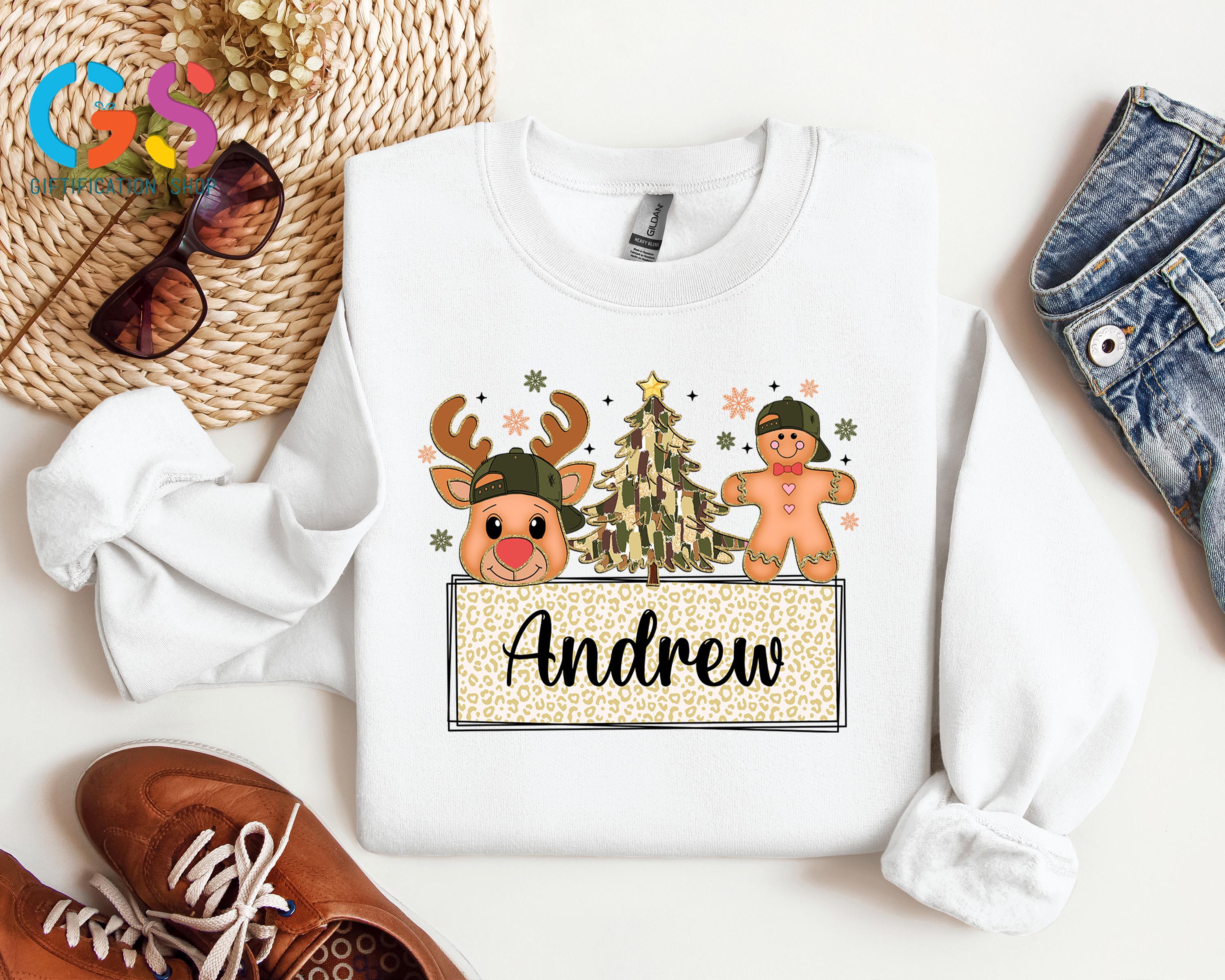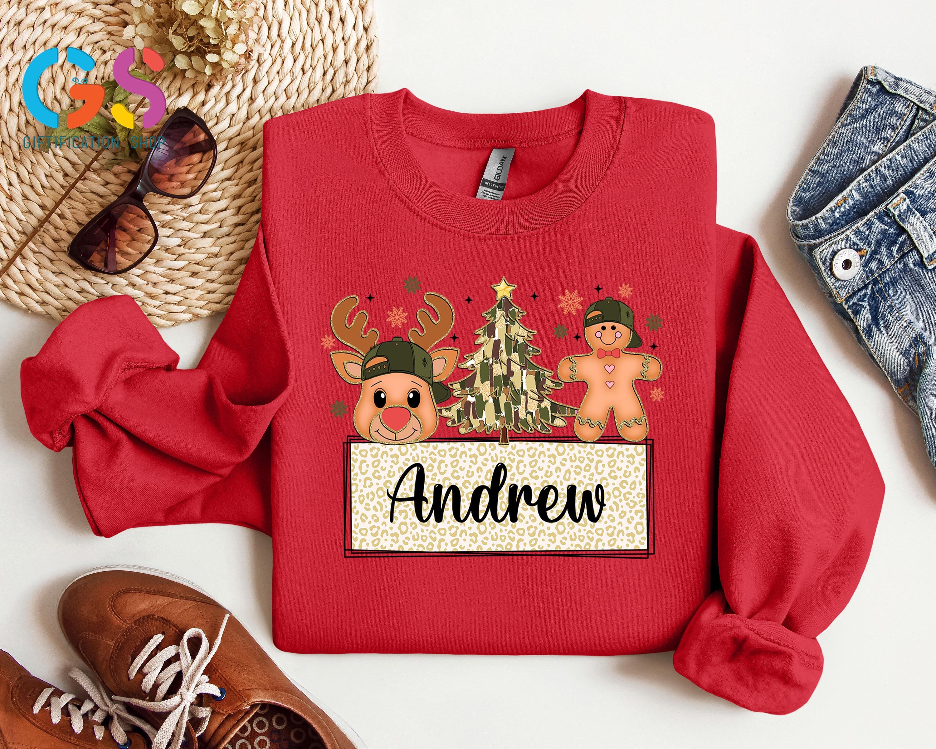 Make your little ones’ holiday season extra special with this adorable personalized Christmas sweatshirt! Featuring festive reindeer and a cute Xmas tree cake design, this cozy sweatshirt can be customized with your child’s name, creating a unique and memorable holiday keepsake.