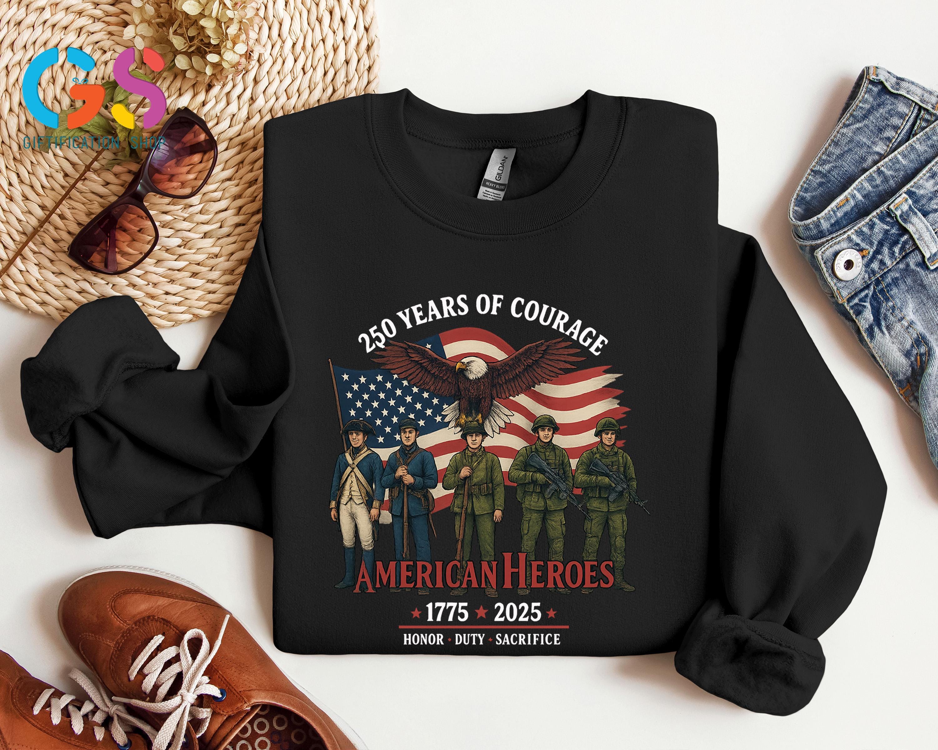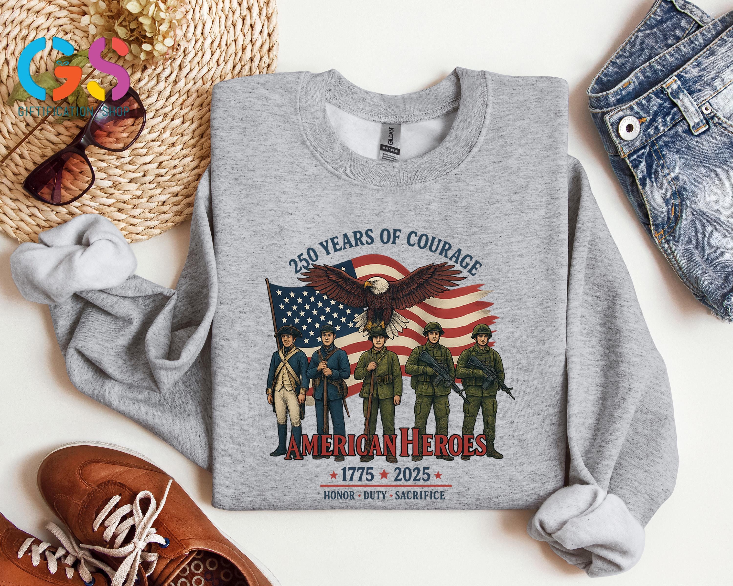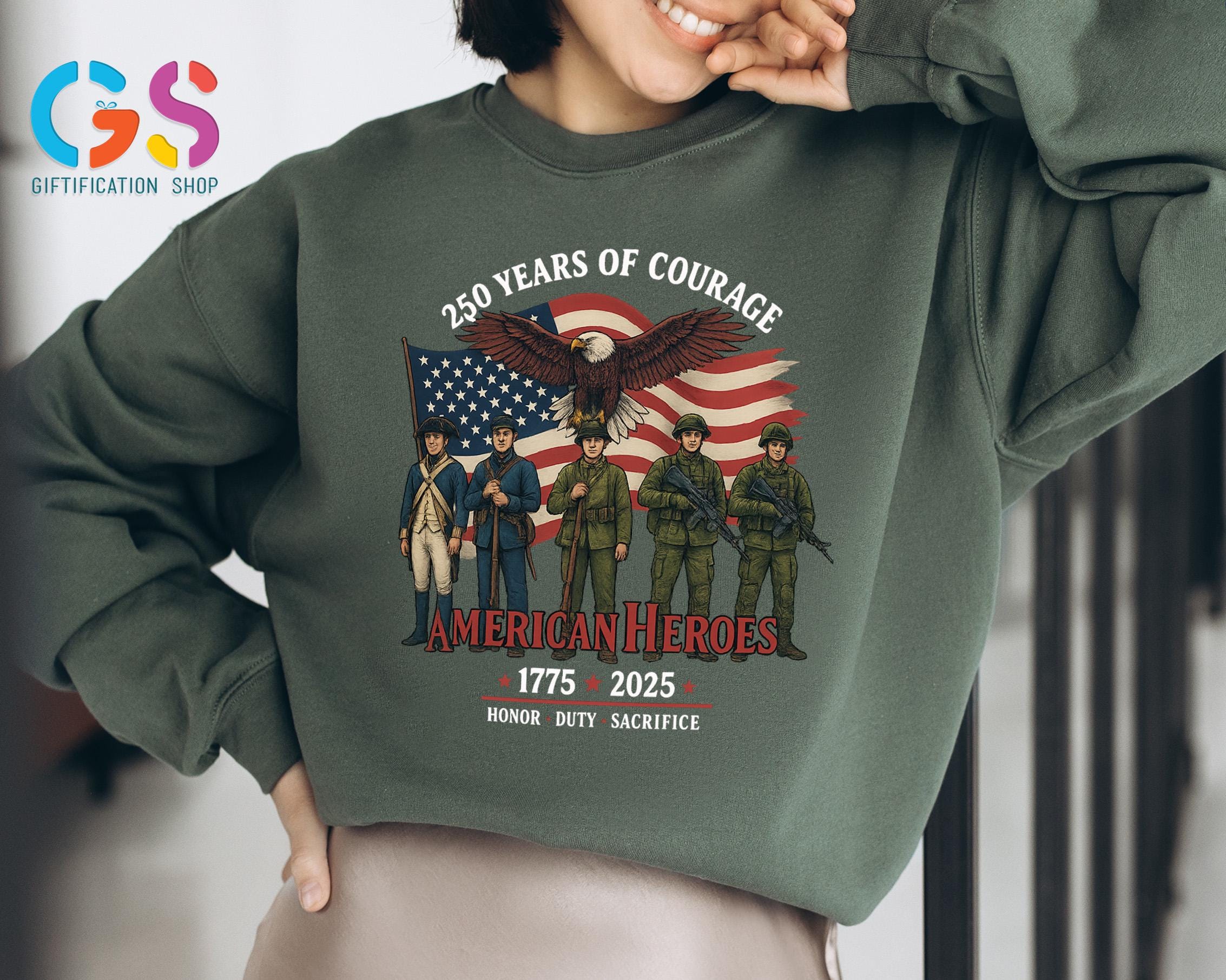 Celebrate 250 years of courage, honor, and freedom with our 250 Years of Defending Liberty Sweatshirt. Designed to commemorate America’s proud legacy from 1775 to 2025, this patriotic hoodie pays tribute to generations who have stood strong in defense of liberty. Perfect for Memorial Day, Independence Day, Veterans Day, or everyday wear, it’s a meaningful way to show your American pride. Crafted for comfort and durability, this sweatshirt makes a thoughtful gift for veterans, service members, and patriots who carry the spirit of freedom in their hearts.