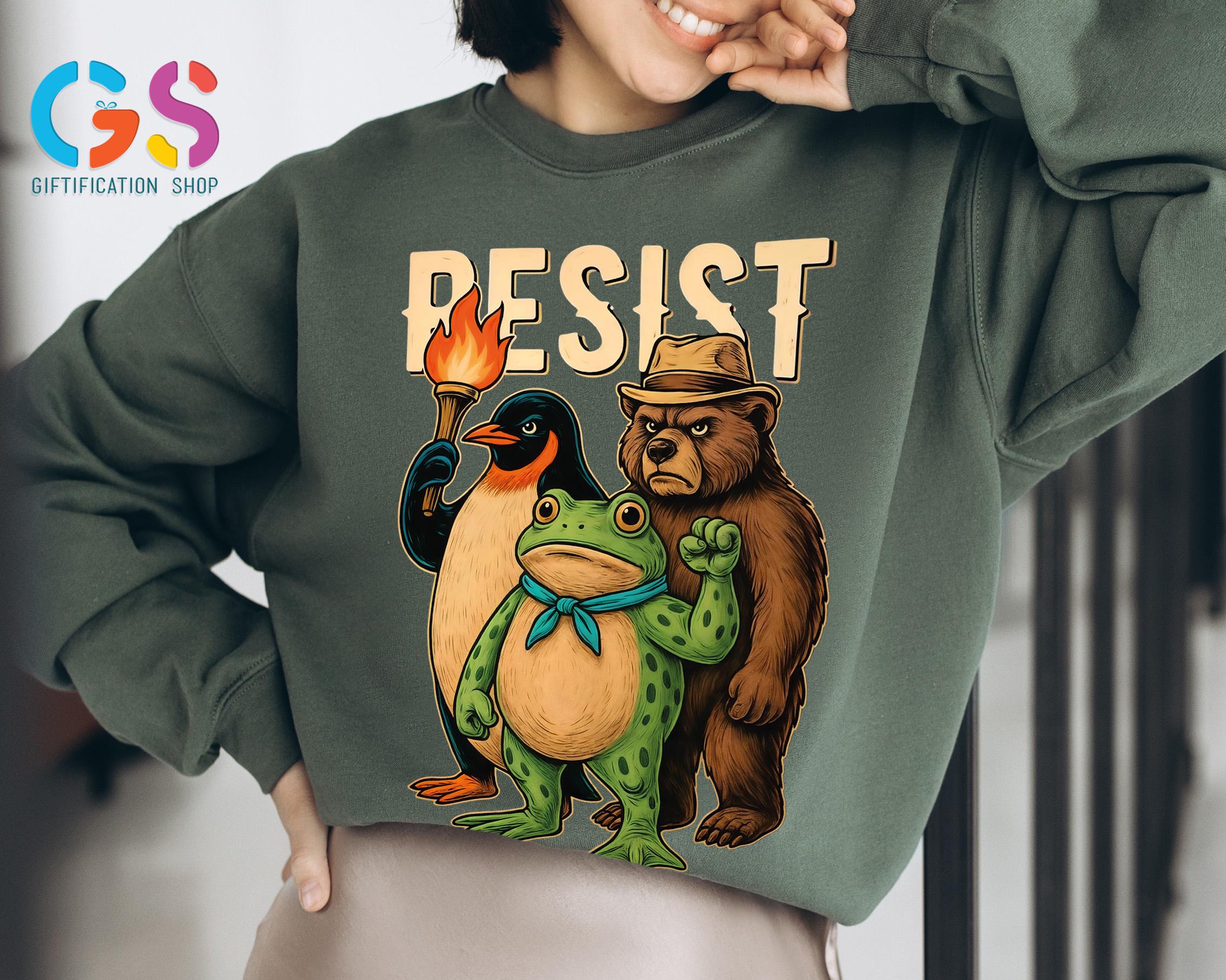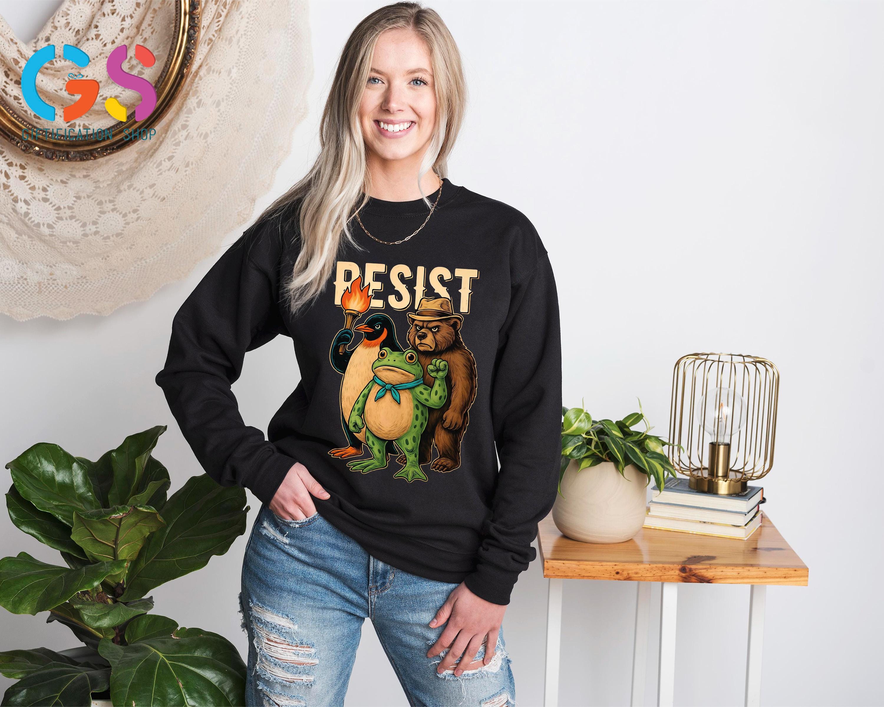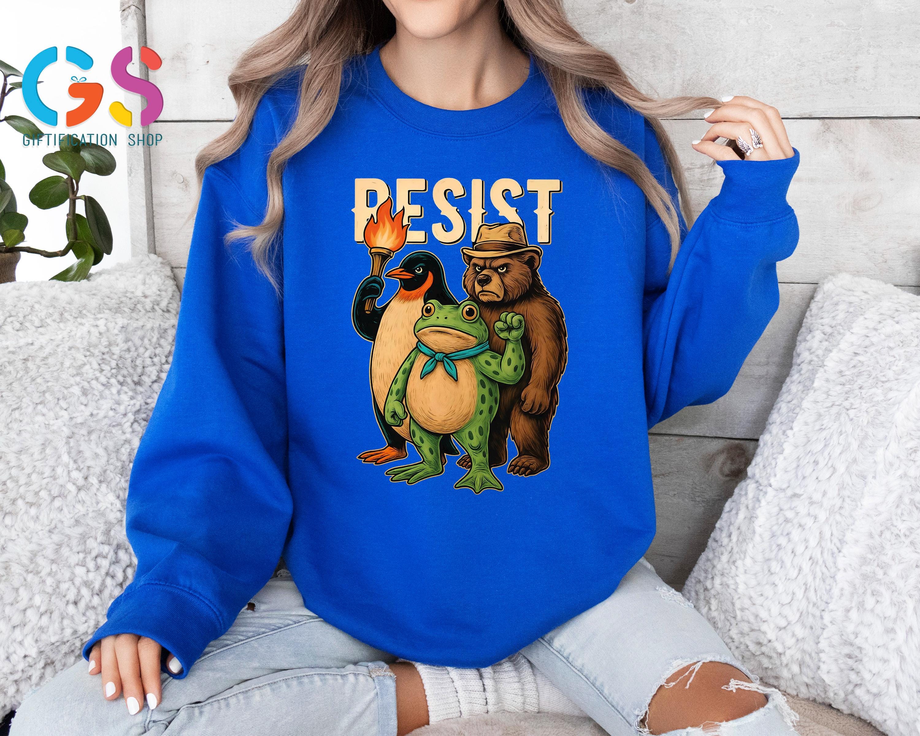 Resist Frog Bear Penguin Sweatshirt, Portland Protest Hoodie, Trump Political Sweater, Anti-Fascism Feminist Clothing