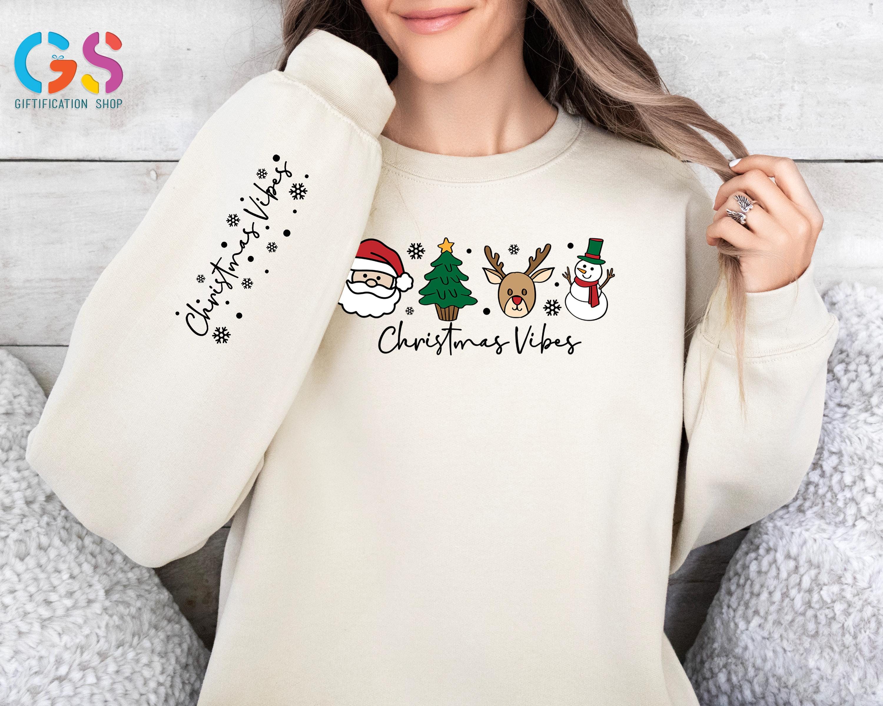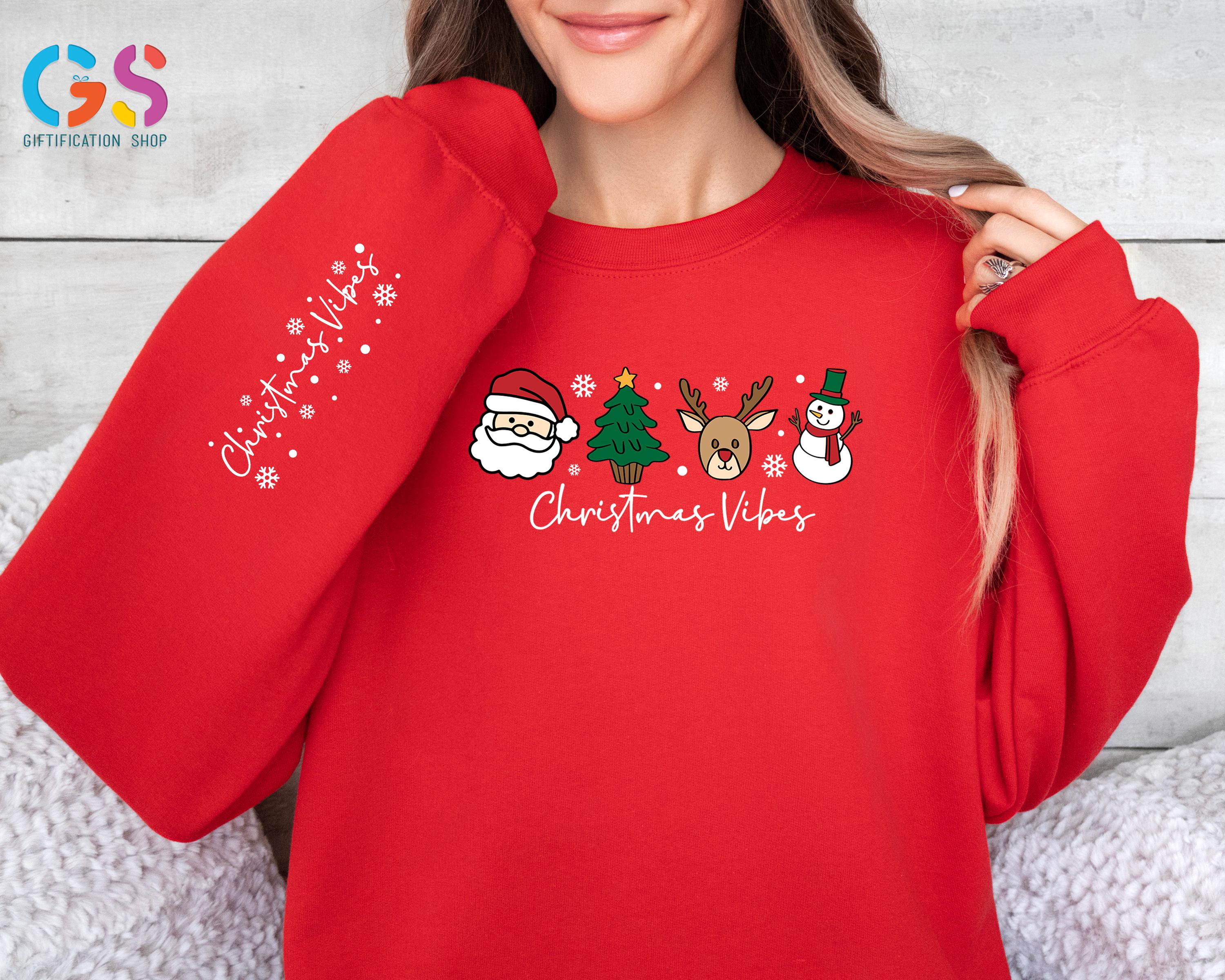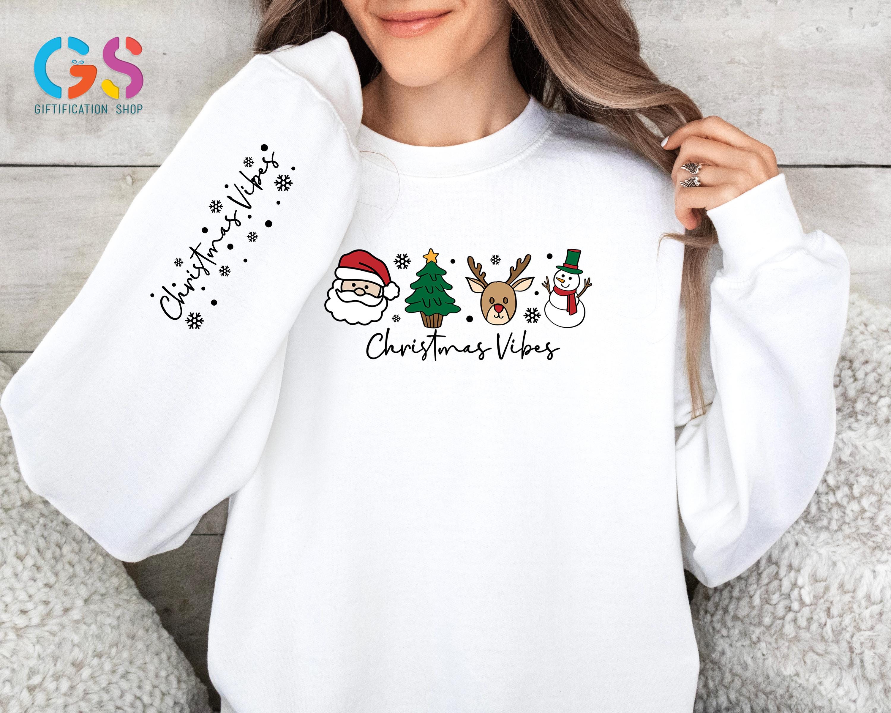 Christmas Vibes Sweatshirt, Santa Claus Christmas Tree Reindeer Snowman Sweater, Merry Christmas Holiday Gift