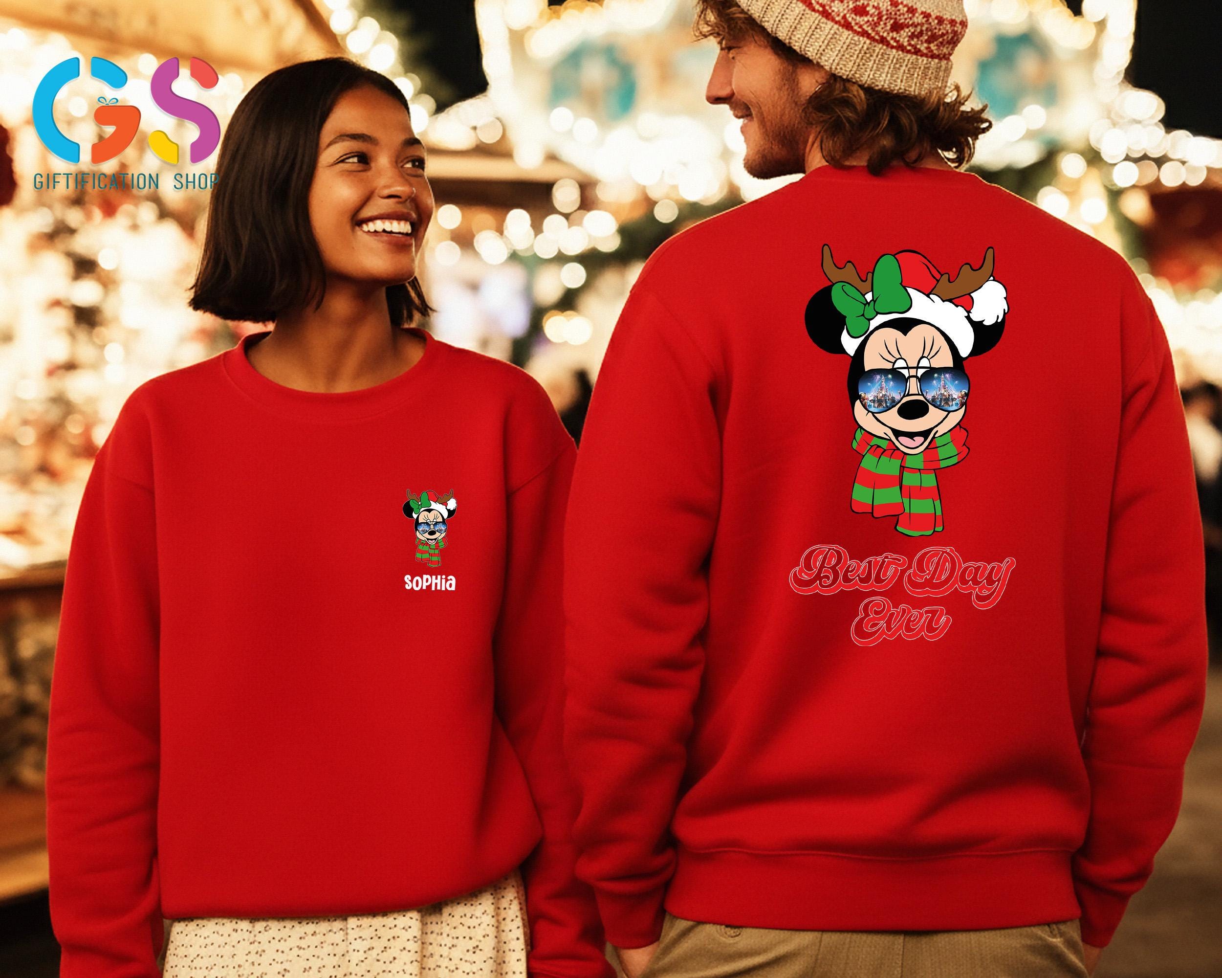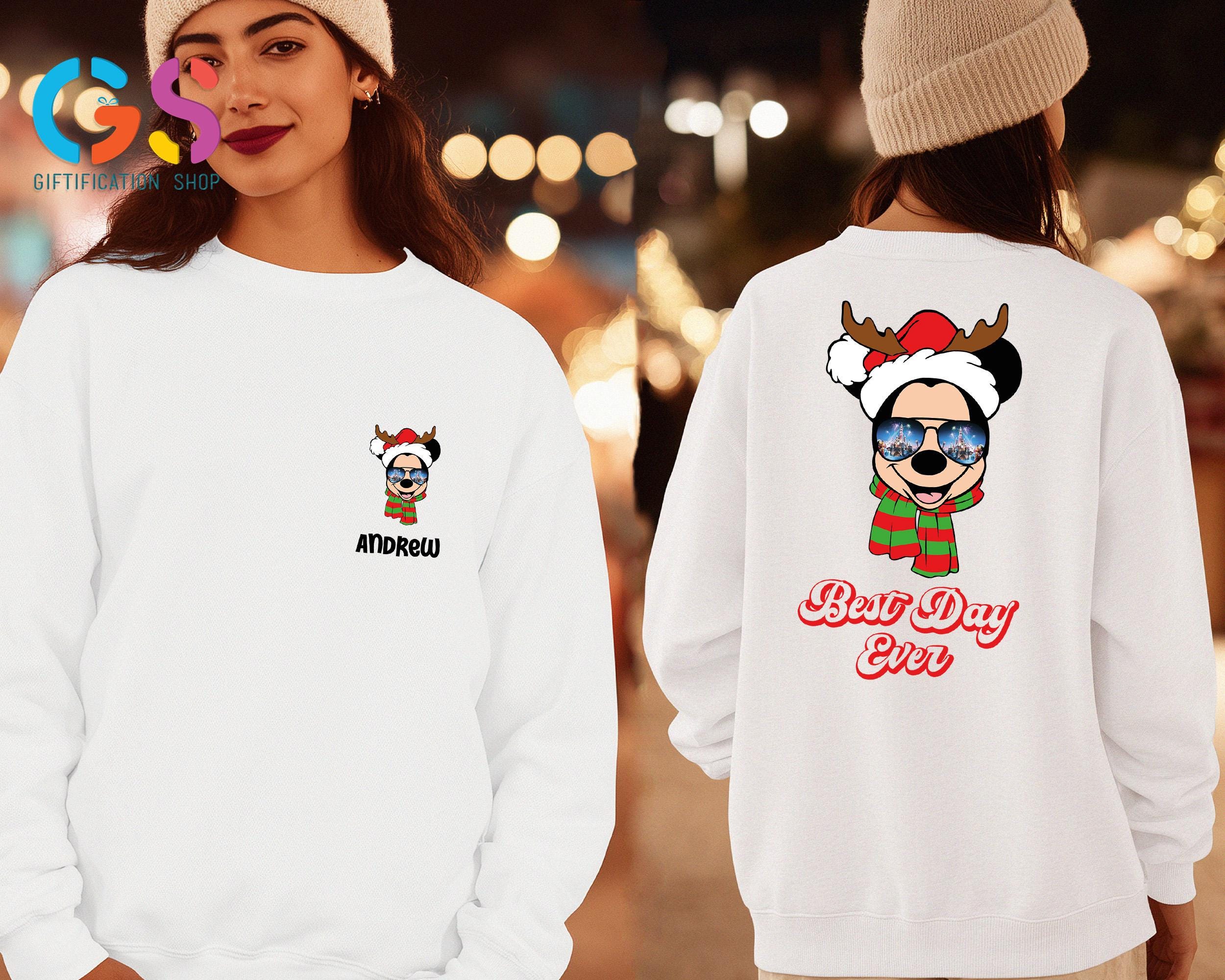 Custom Name Best Day Ever Christmas Sweatshirt, Mickey&Friends Sweater, Family Matching Disney Chracters Gift