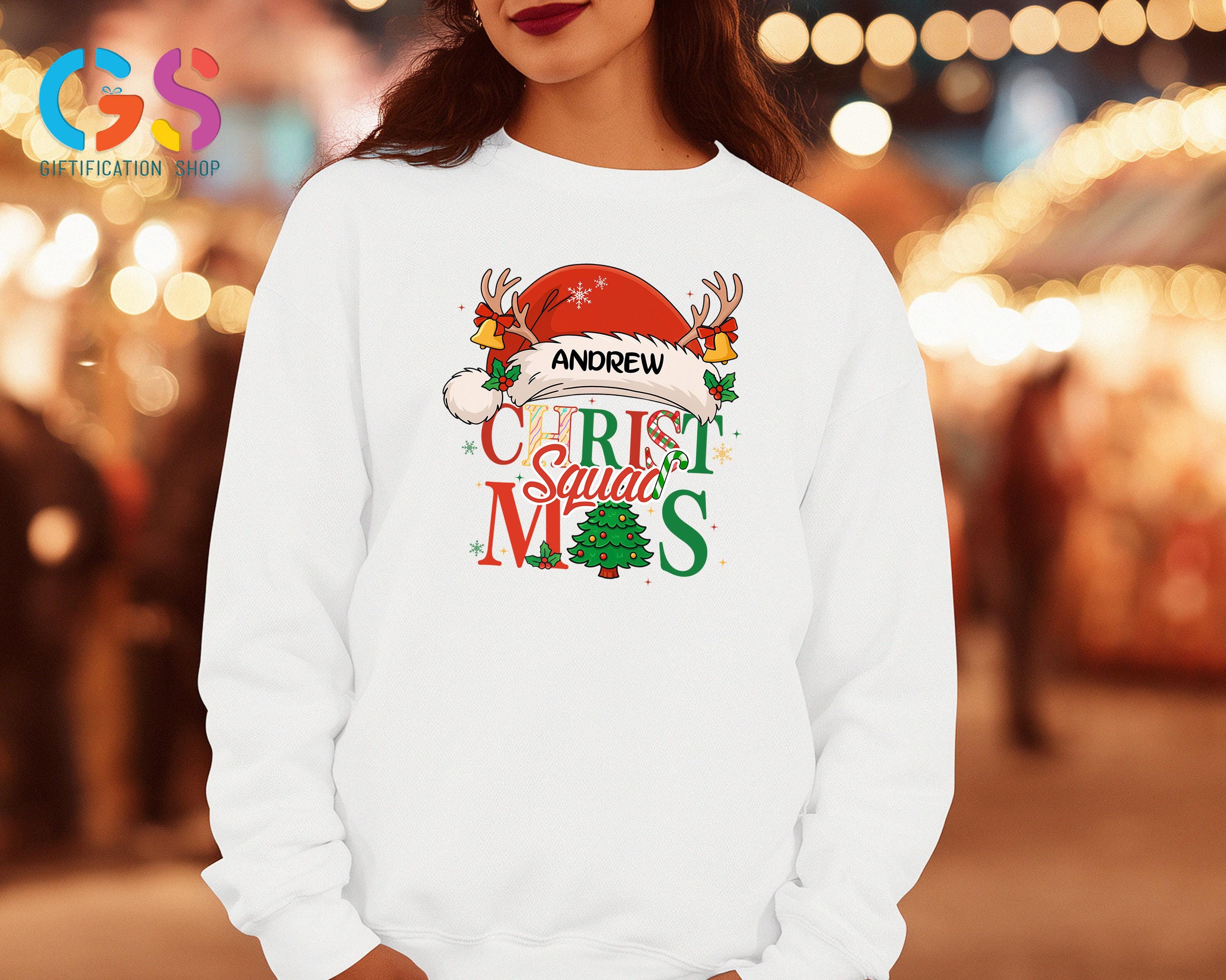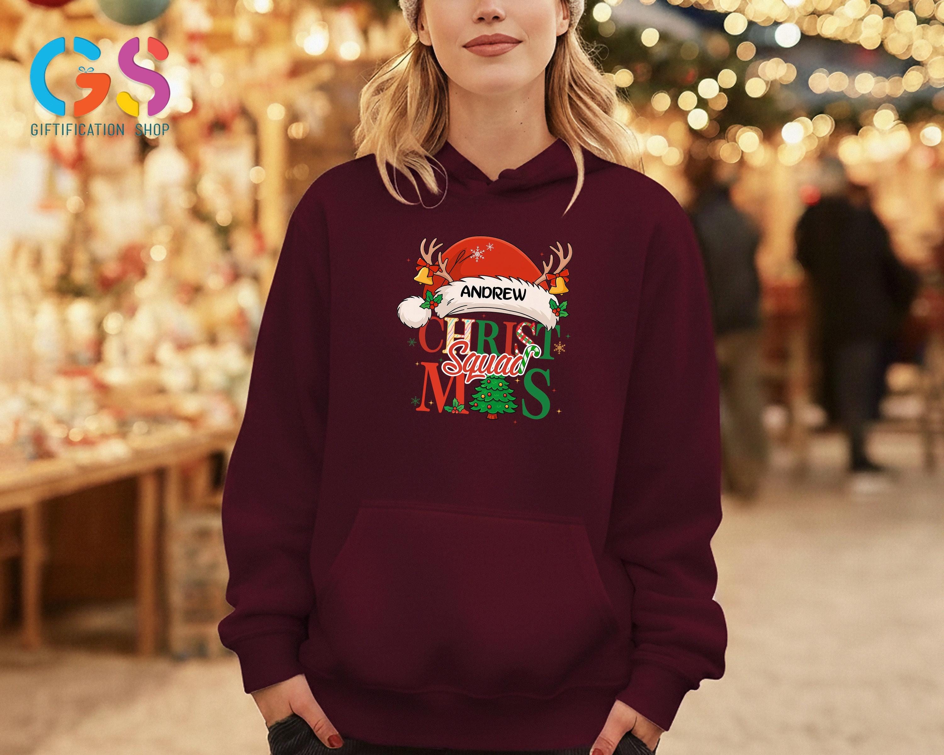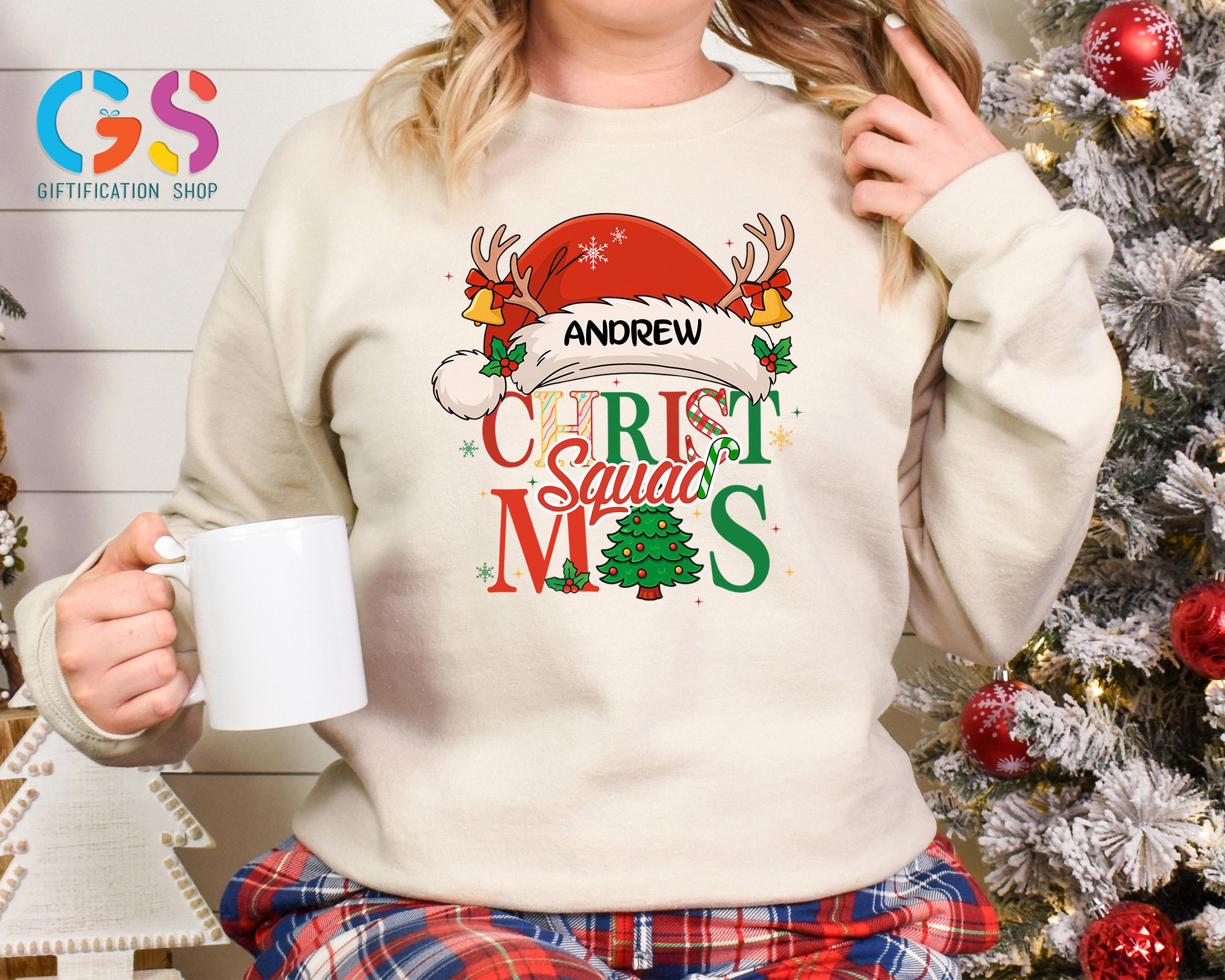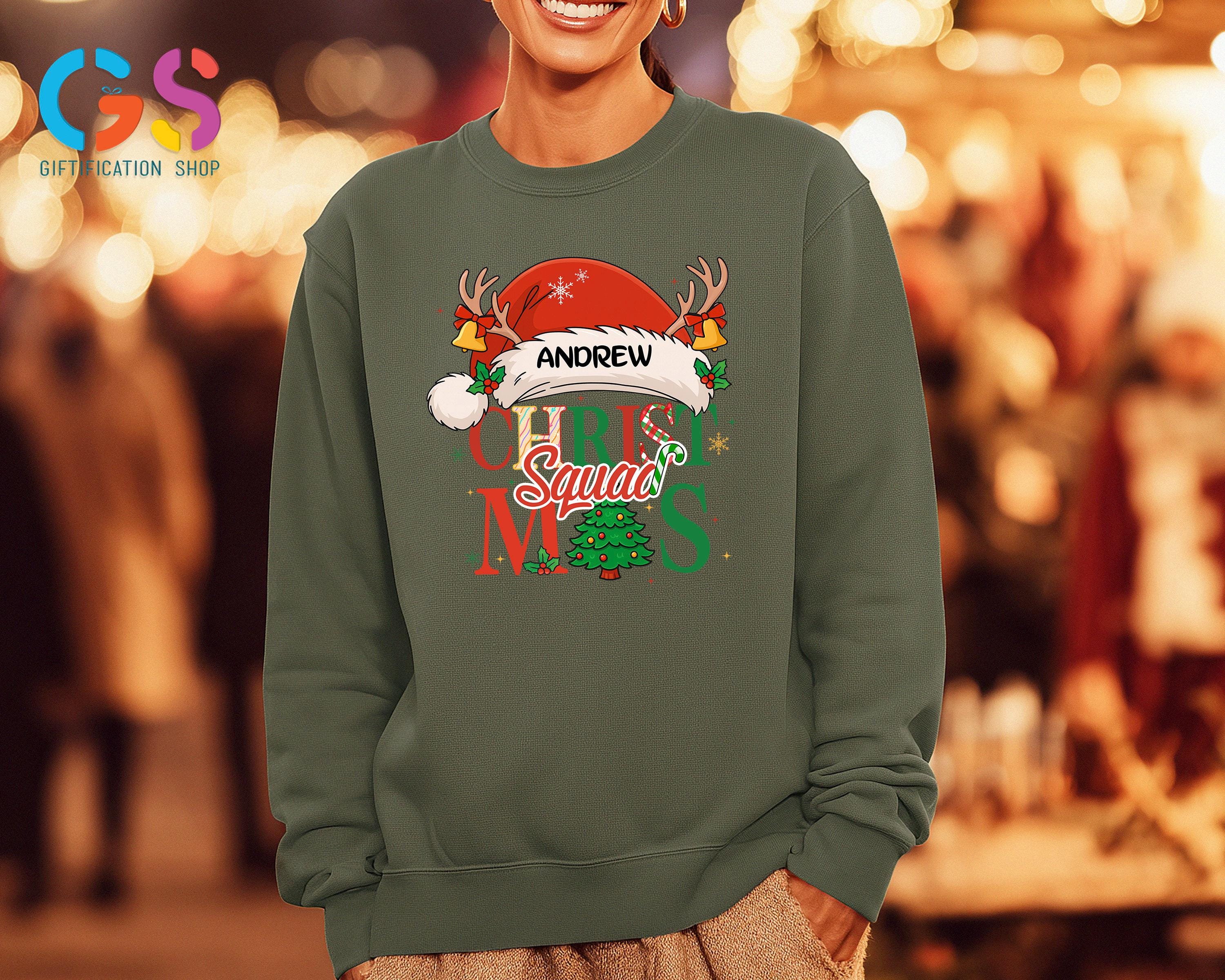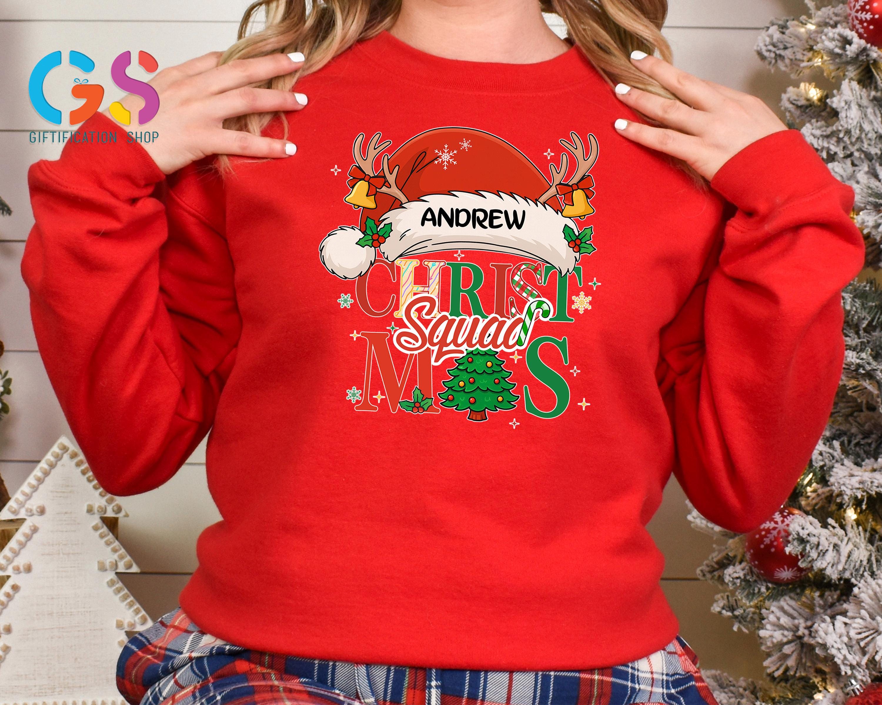 Custom Name Christmas Squad Sweatshirt, Personalized Family Gift, Christmas Crew Hoodie, Holiday Xmas Clothing