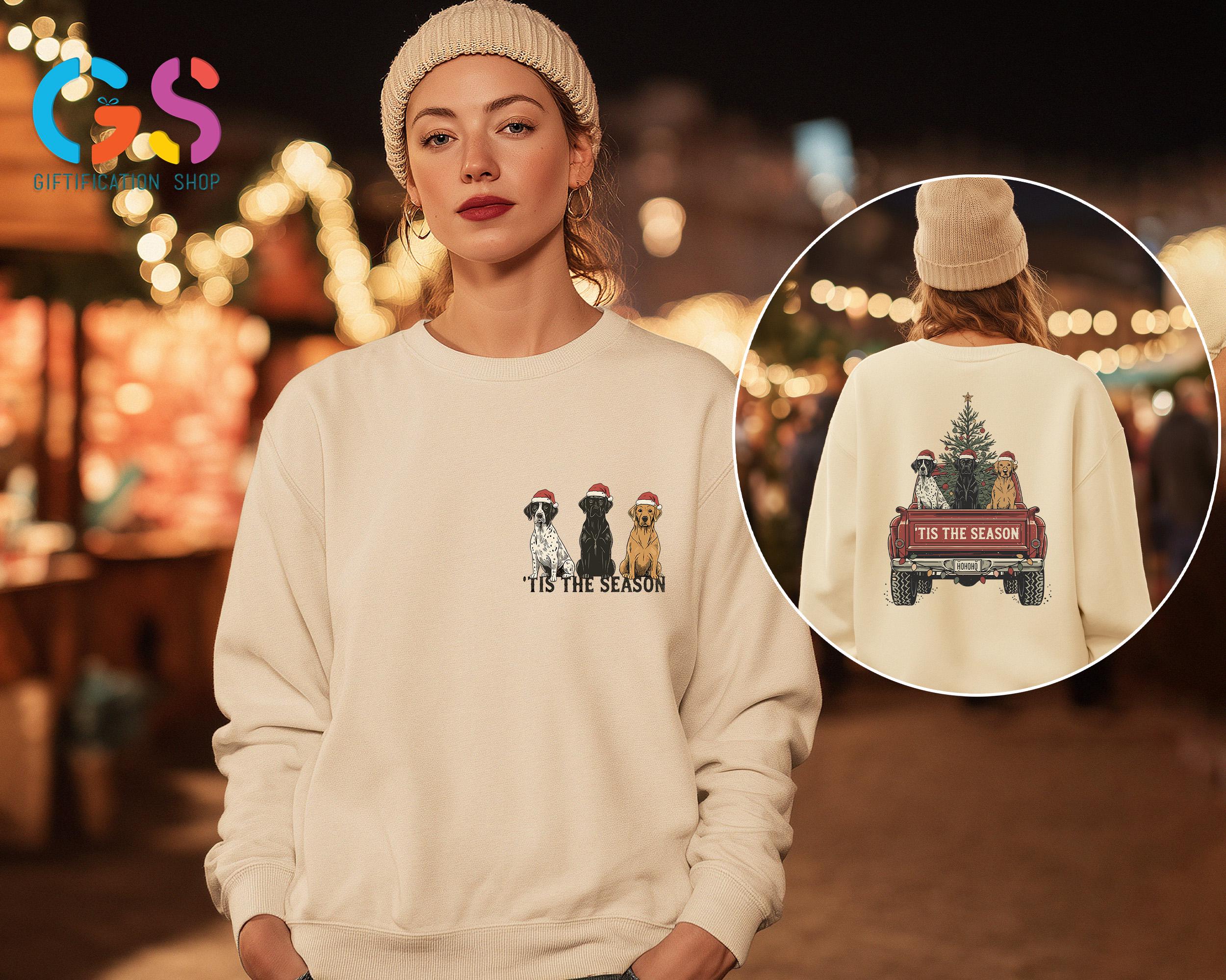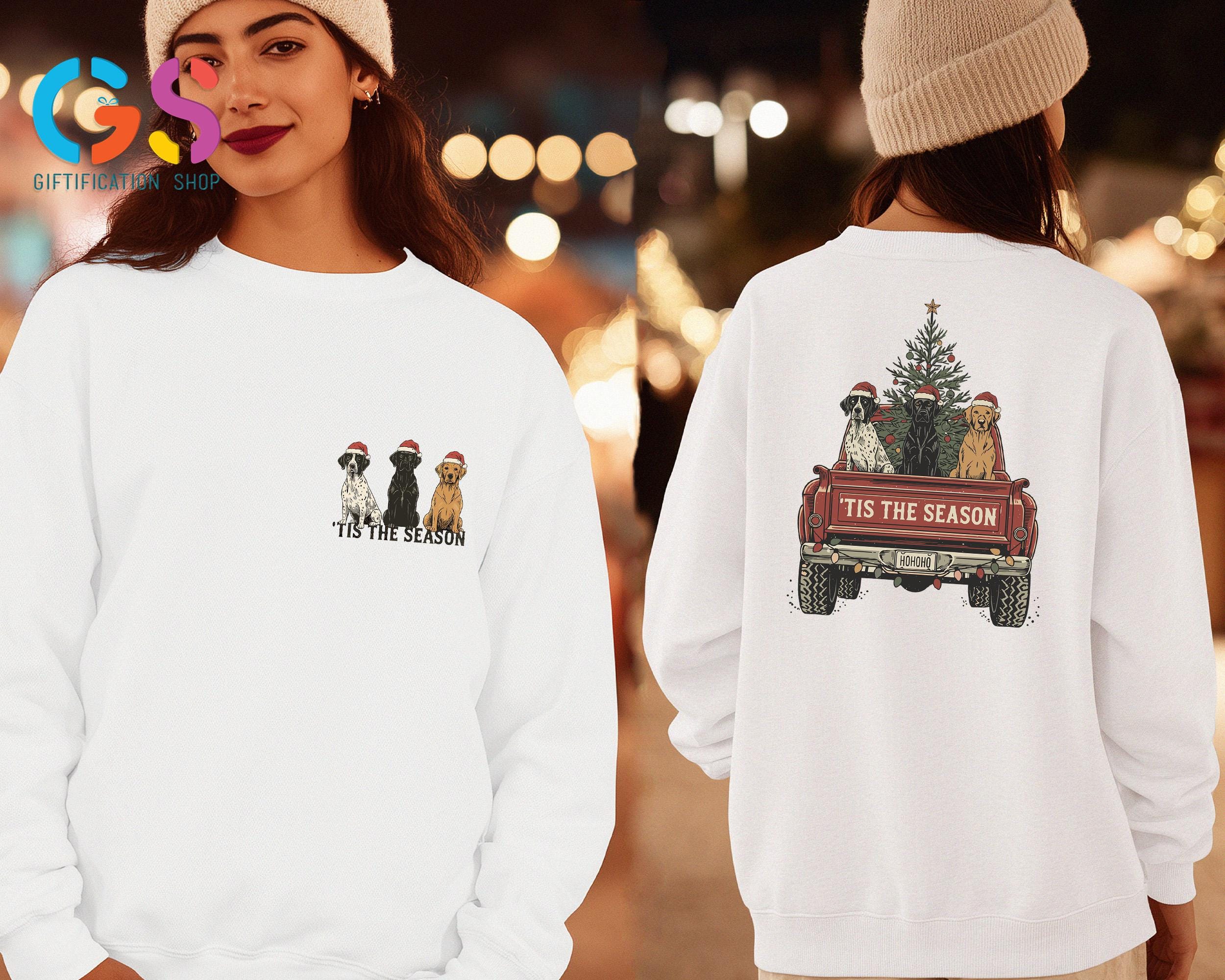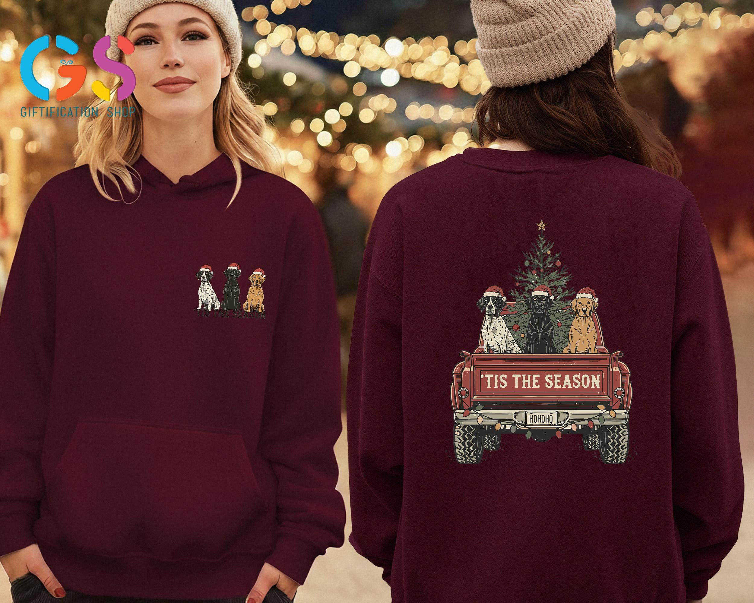 Christmas Dog Truck Sweatshirt, Hunting Season Christmas Tree Farm Hoodie, Tis the Season Gift, Merry Xmas Sweater