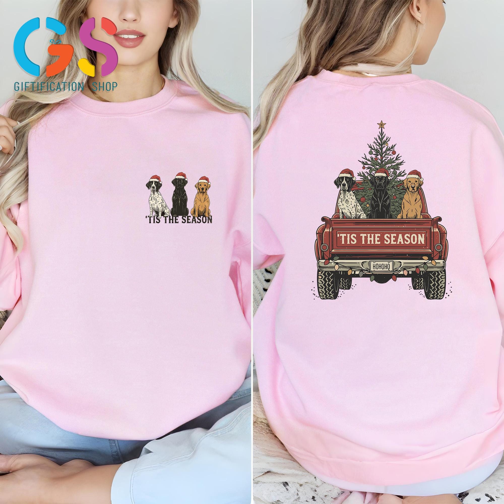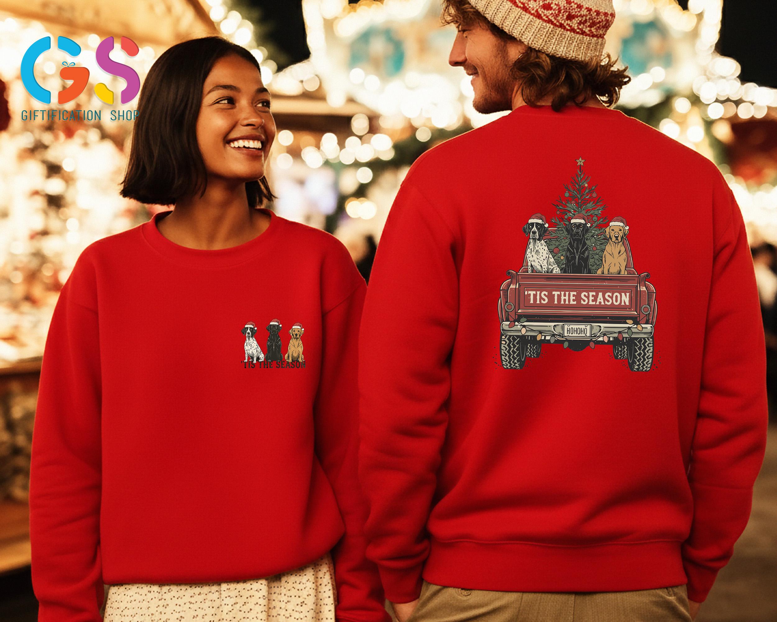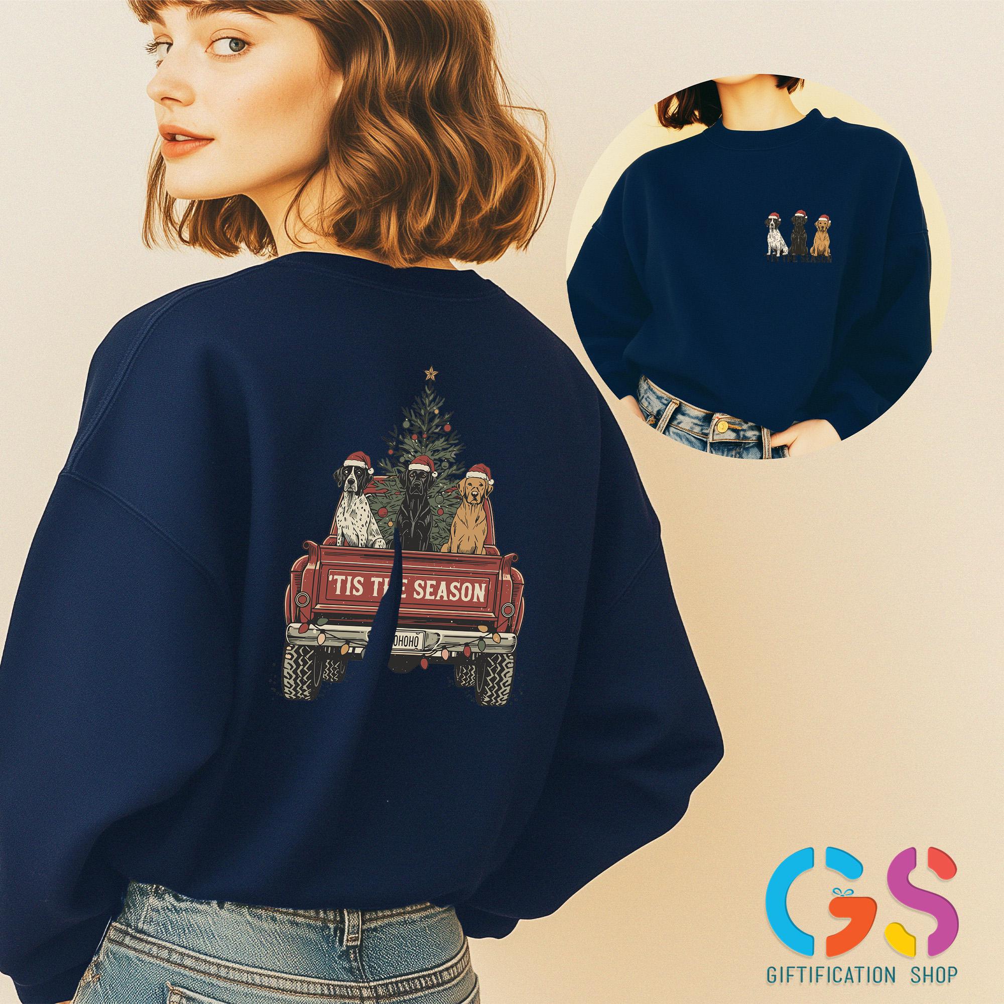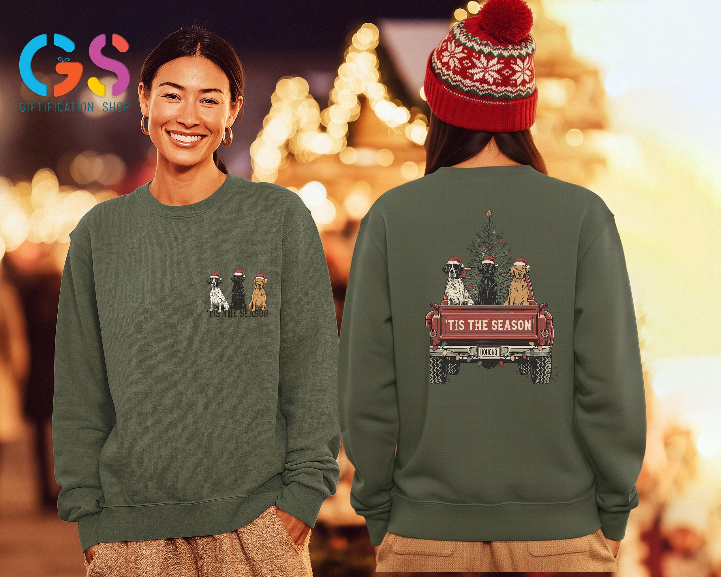 Christmas Dog Truck Sweatshirt, Hunting Season Christmas Tree Farm Hoodie, Tis the Season Gift, Merry Xmas Sweater