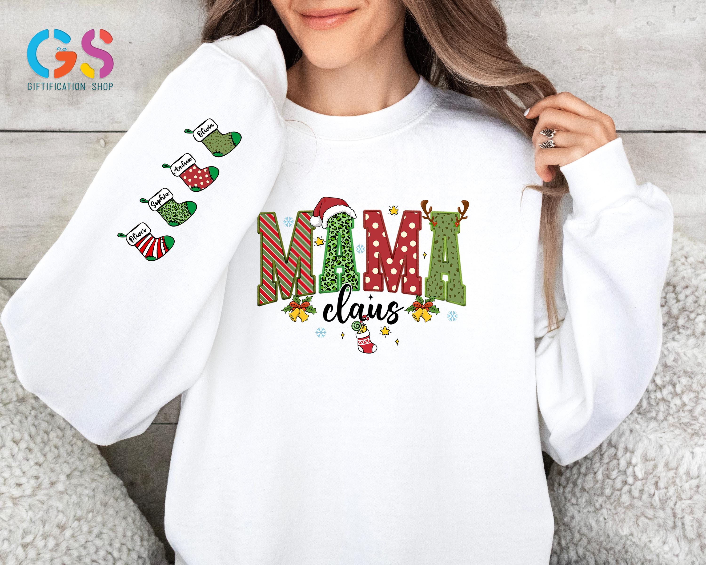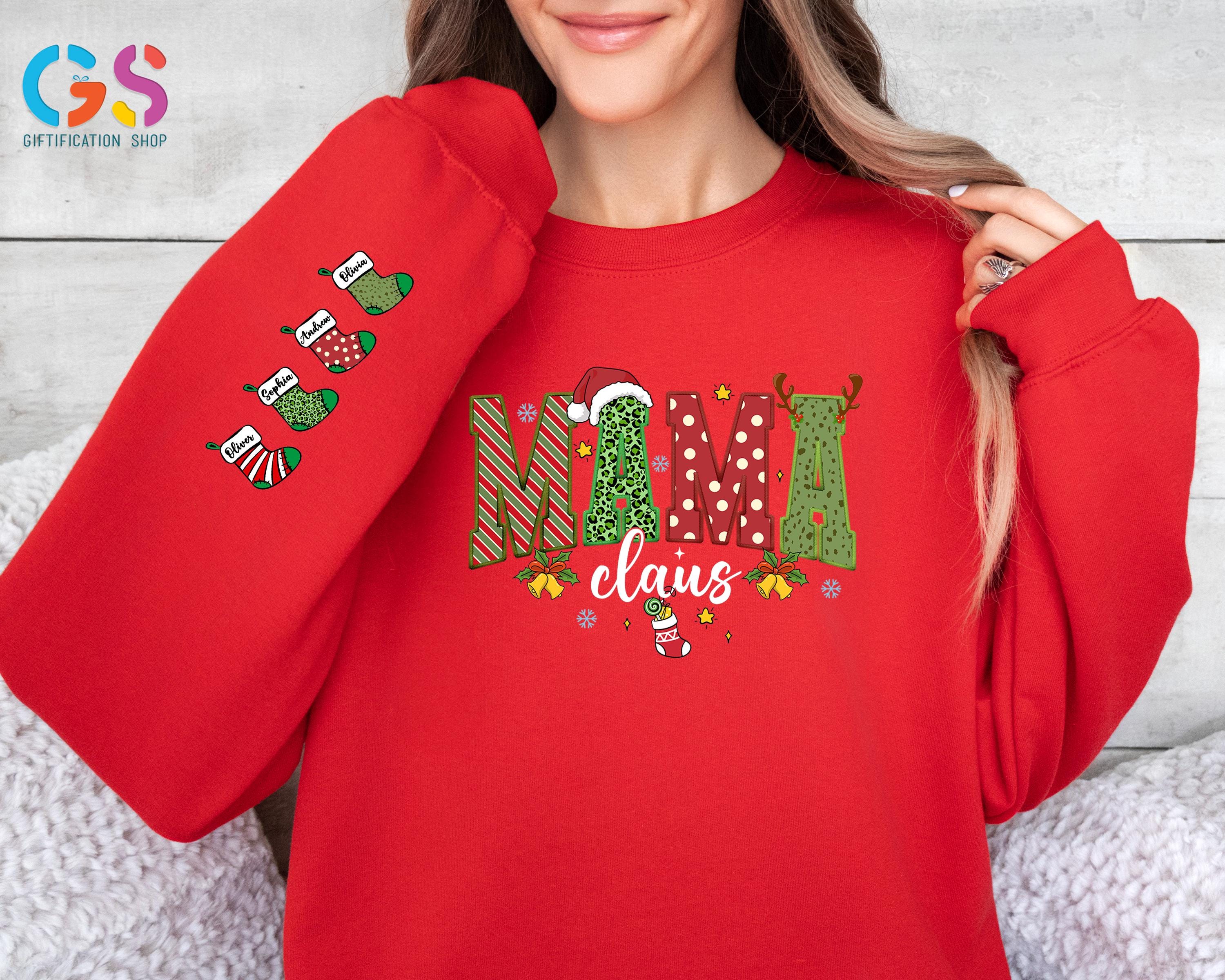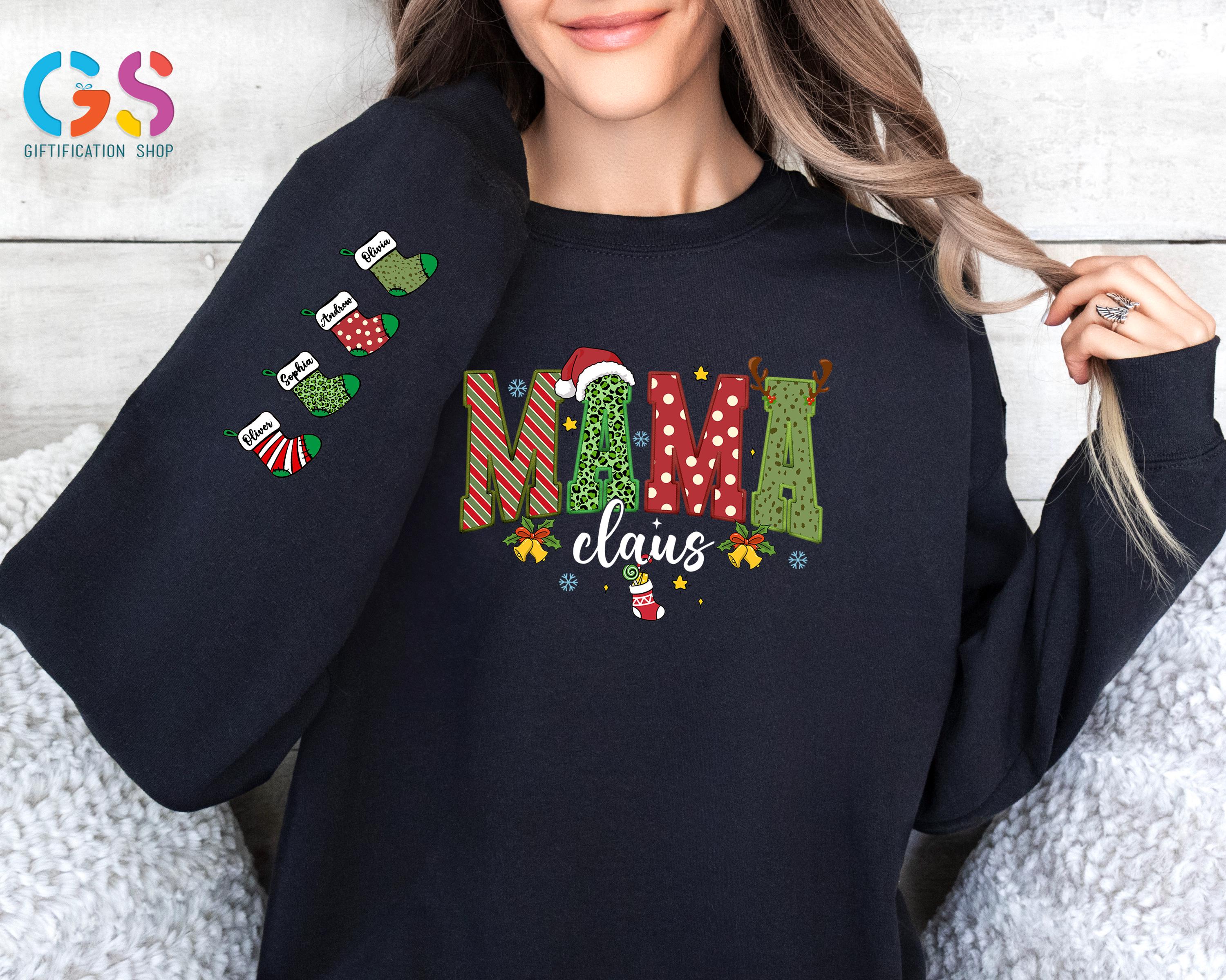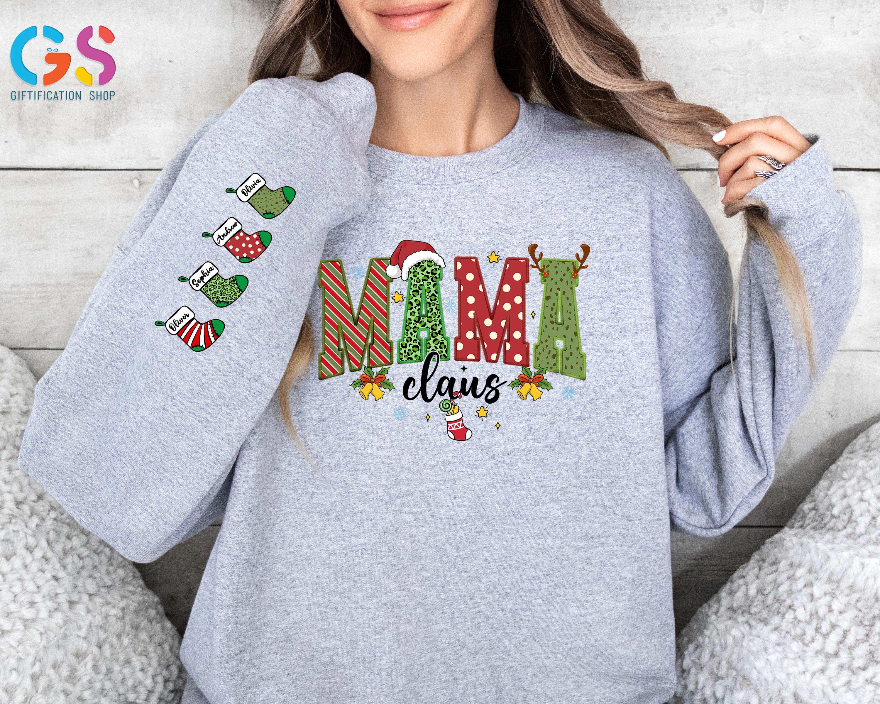 Custom Nane Mama Claus Sweatshirt, Christmas Hoodie, Gift For Mom Grandma, Holiday Sweater With Children Name