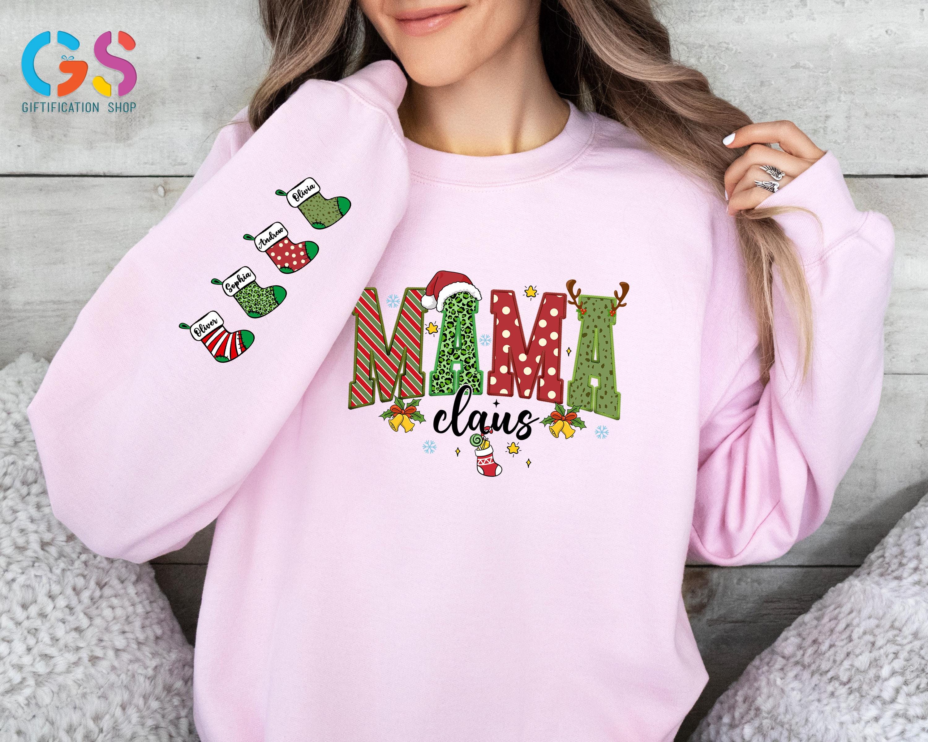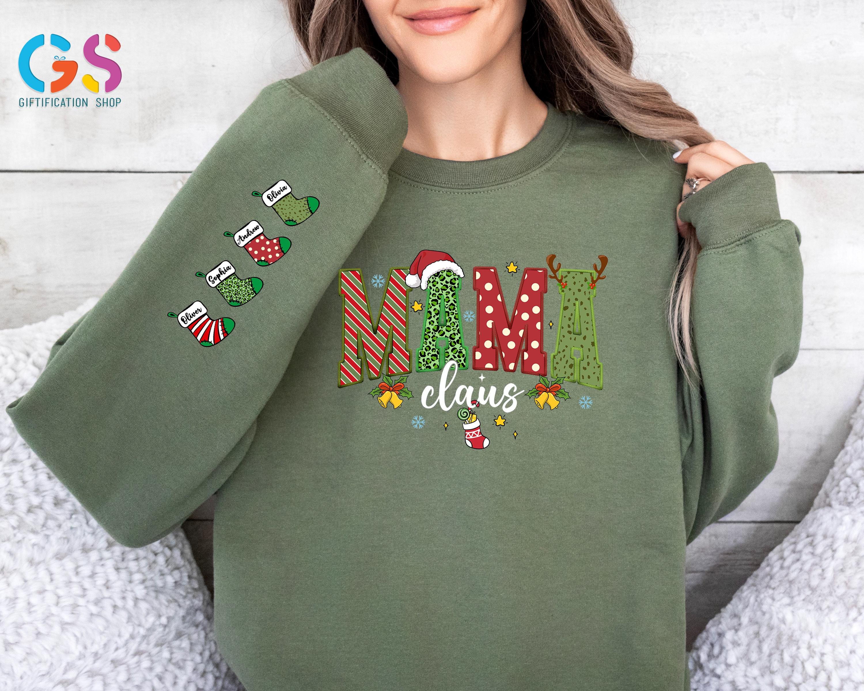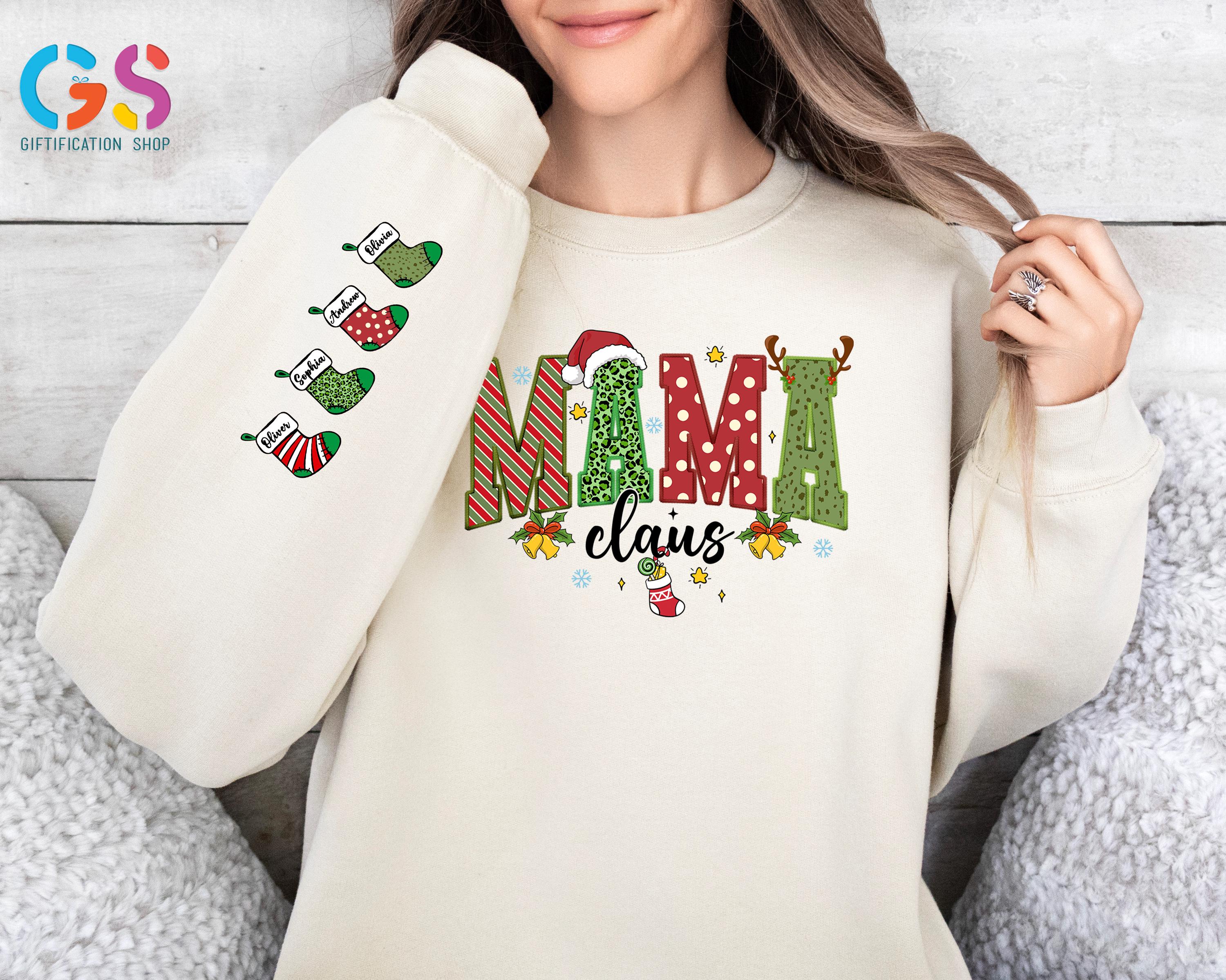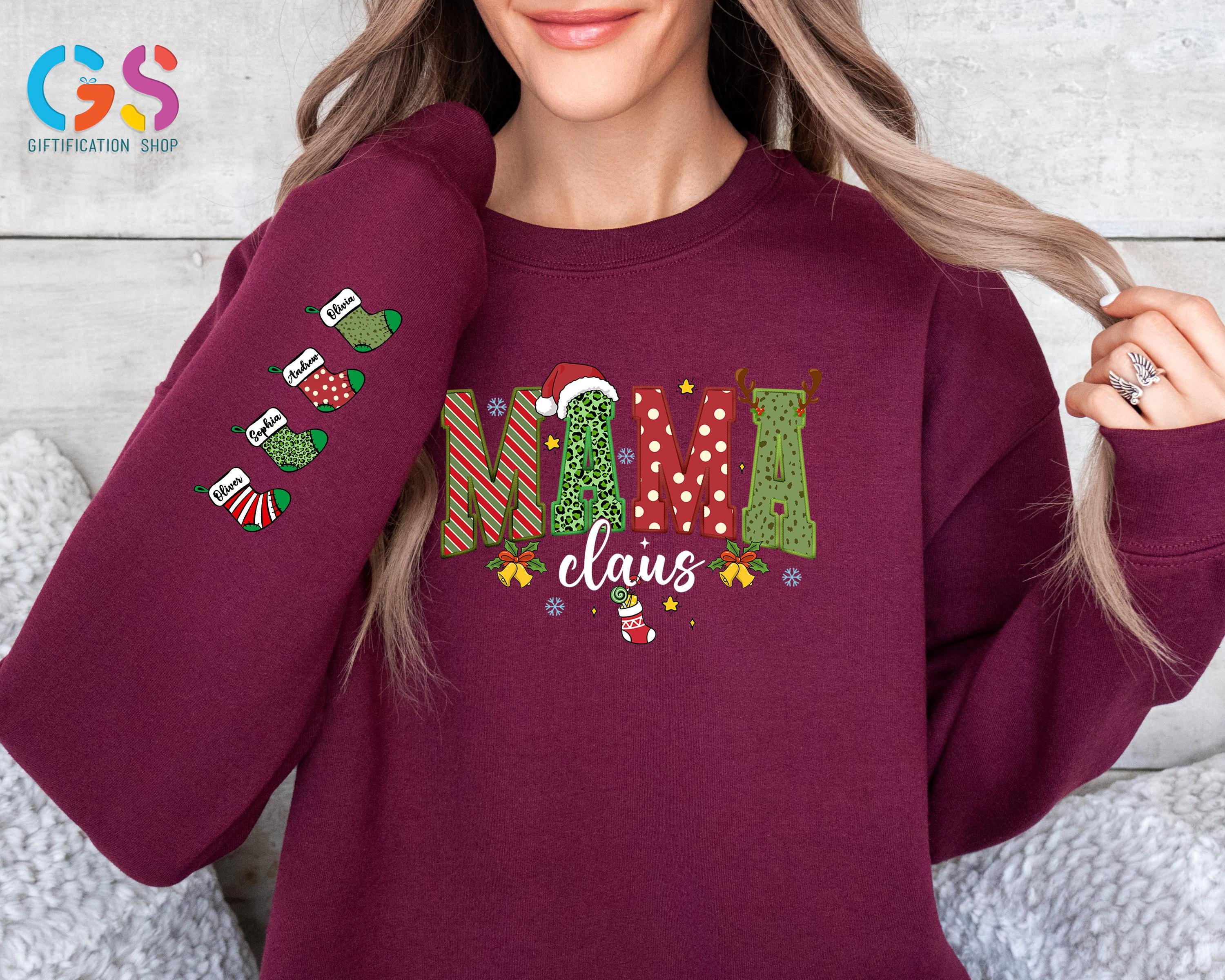 Custom Nane Mama Claus Sweatshirt, Christmas Hoodie, Gift For Mom Grandma, Holiday Sweater With Children Name