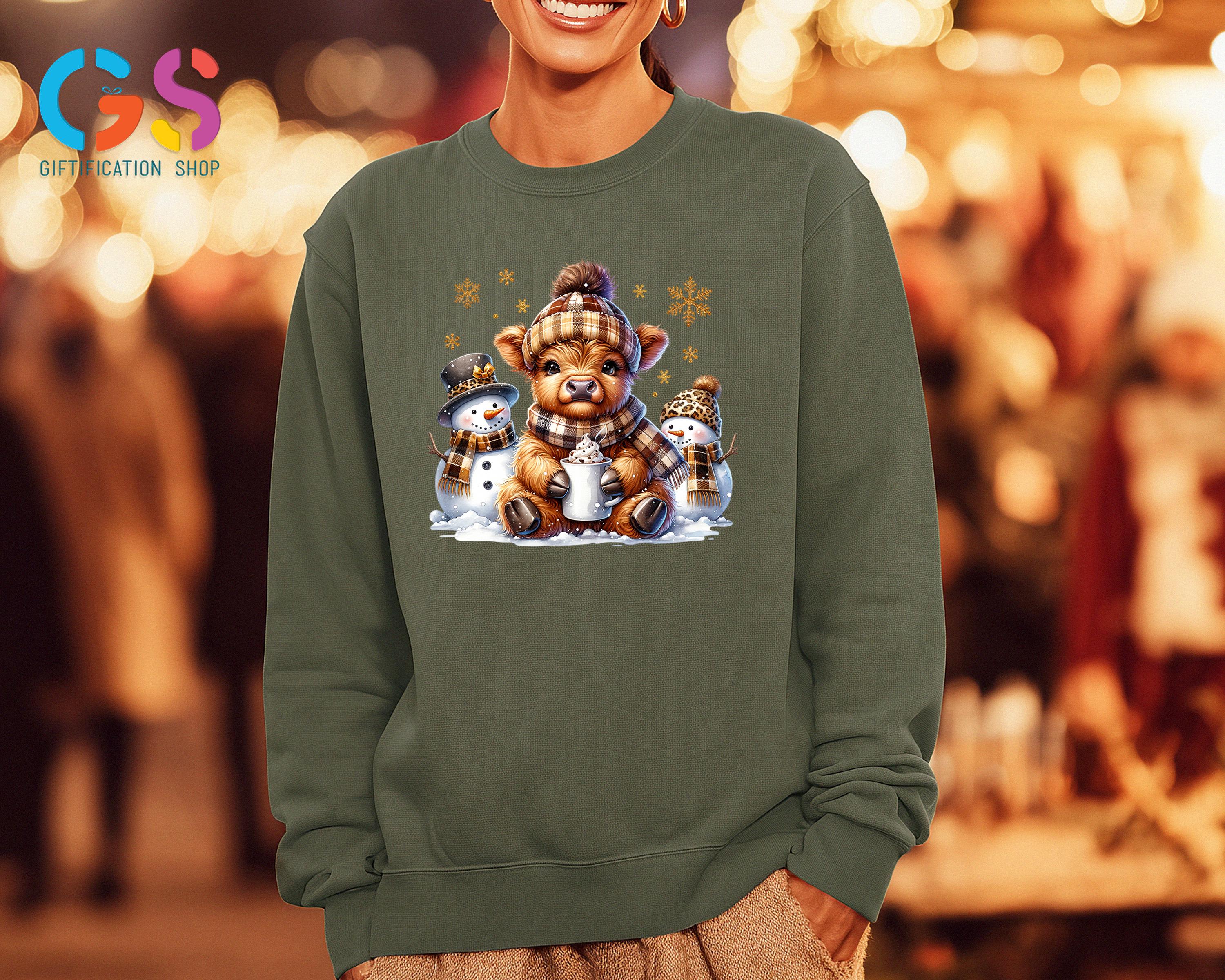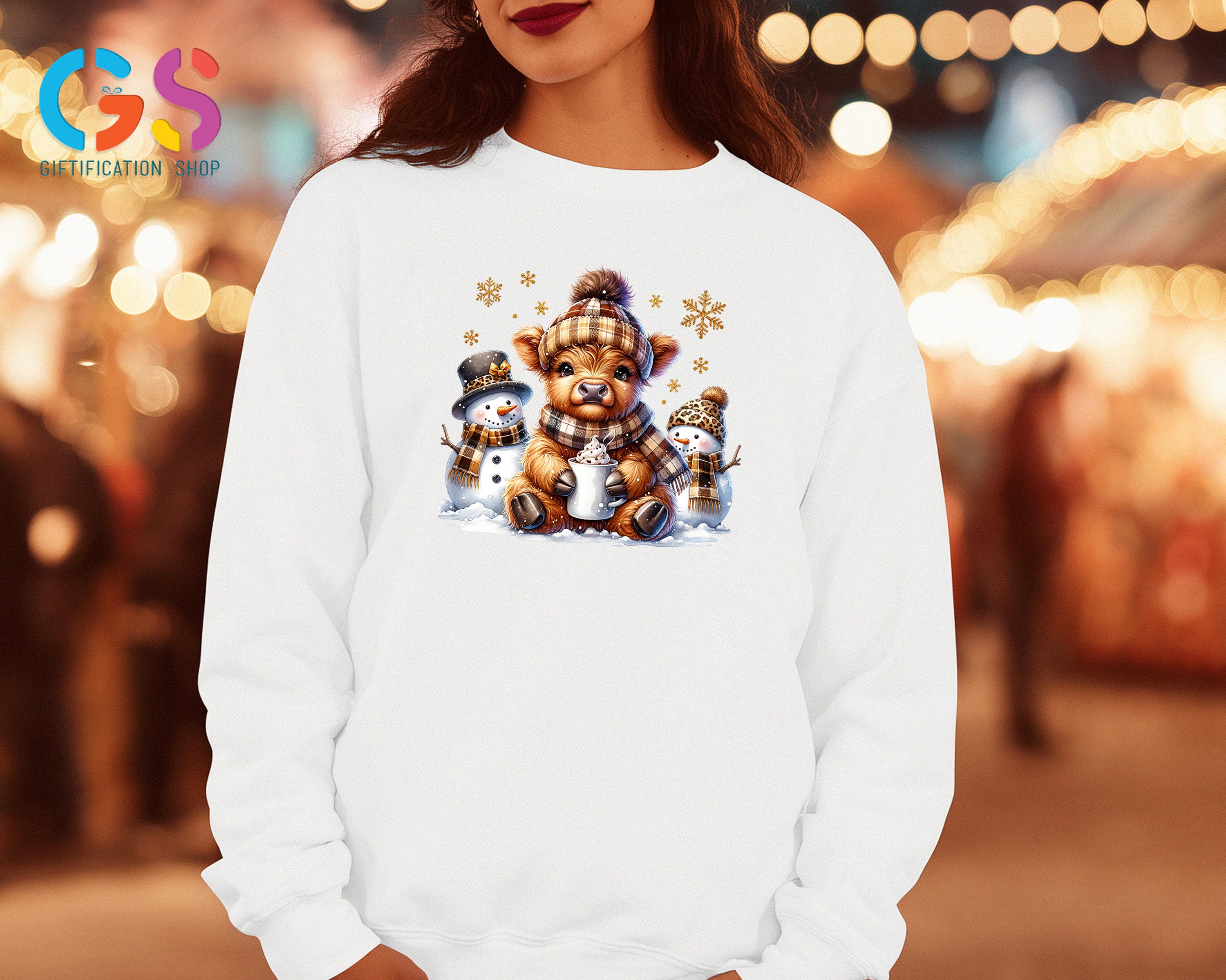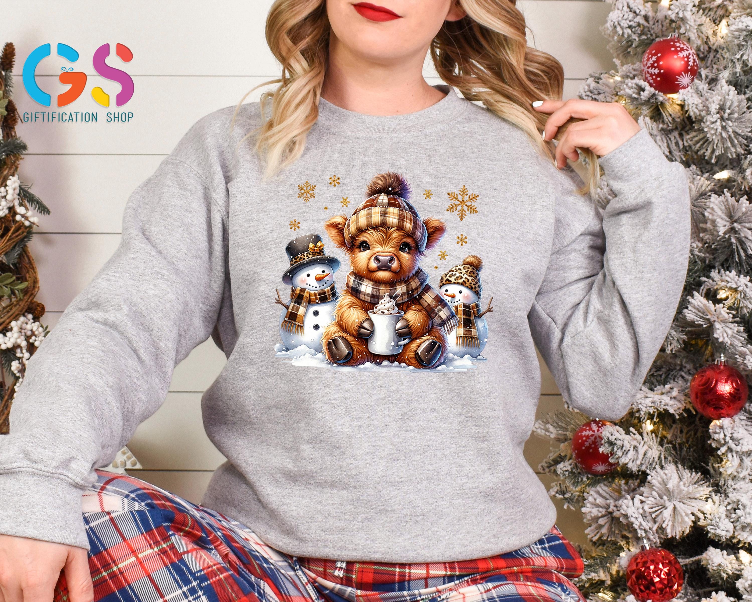 Celebrate the season in cozy style with this Highland Cow Snowman Graphic Christmas Sweatshirt, the perfect holiday hoodie for winter lovers. Featuring an adorable highland cow and snowman design, this women sweatshirt adds a touch of charm and warmth to your holiday apparel. Ideal for festive gatherings, lounging at home, or spreading merry and bright vibes all season long, it’s a must-have for the cozy season. This soft and stylish snowflake sweatshirt also makes a thoughtful Christmas gift or holiday gift for moms, friends, and family. Stay comfy, festive, and ready to wish everyone a Merry Christmas and Happy Holidays in this cheerful xmas shirt.