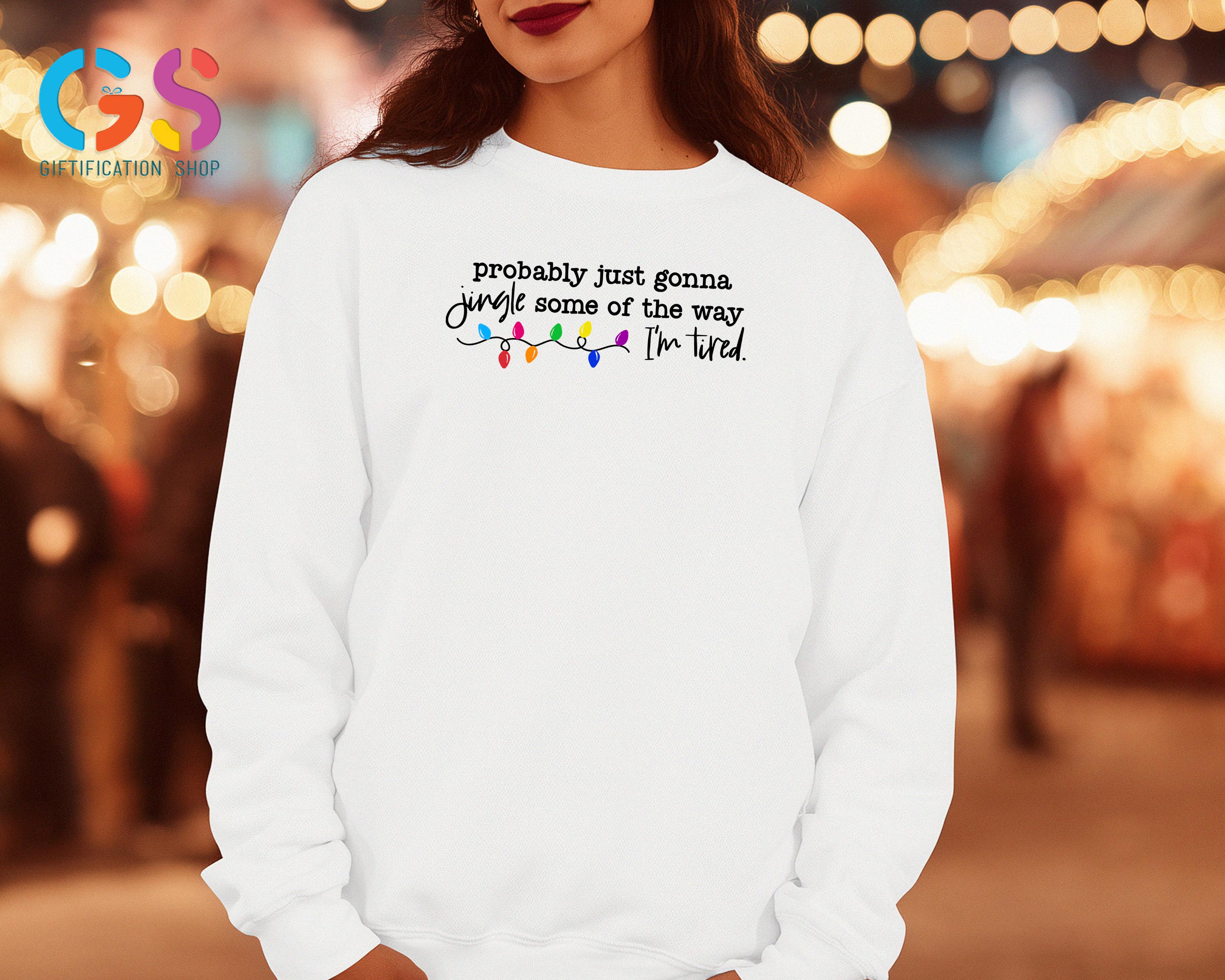 Celebrate the season in style with our Christmas Jingle New Year Sweatshirt, perfect for spreading holiday cheer and showing off your festive spirit. Whether you're rocking a Merry Christmas message or enjoying a cozy jingle sweatshirt, this piece is designed for those who love the magic of the holidays. With fun phrases like "Just Gonna Jingle Some Of The Way I'm Tired Hoodie", it's a playful take on the season’s festivities. Ideal for a Christmas shirt or holiday sweatshirt, this Xmas shirt makes a great gift for anyone who loves to embrace the joy of tis the season. Featuring the catchy "Jingle All The Way" slogan, it's a must-have for those looking to add a little extra sparkle to their holiday wardrobe. Perfect for ringing in the Happy New Year, this winter sweatshirt is a fun and comfy way to stay merry and bright all season long.