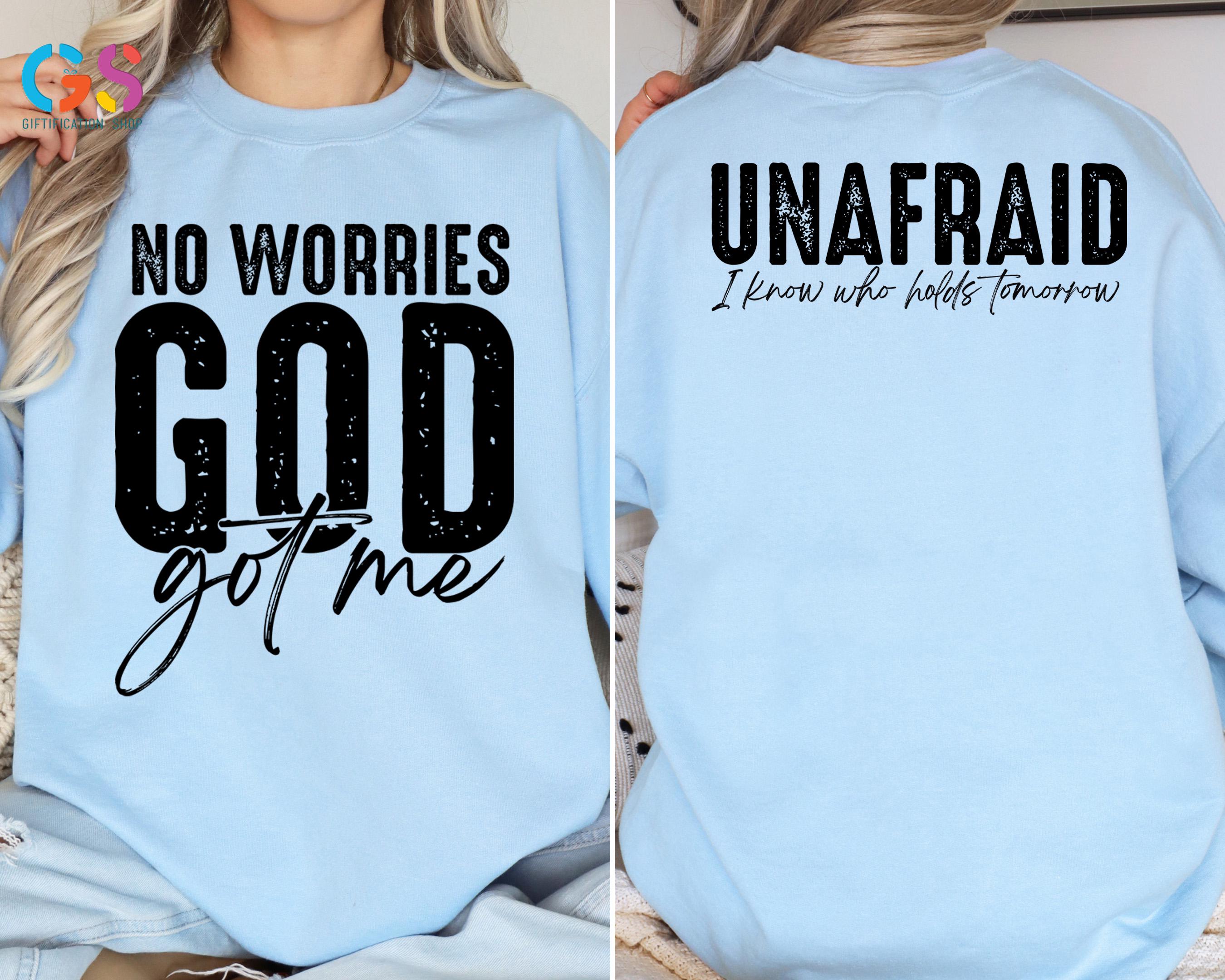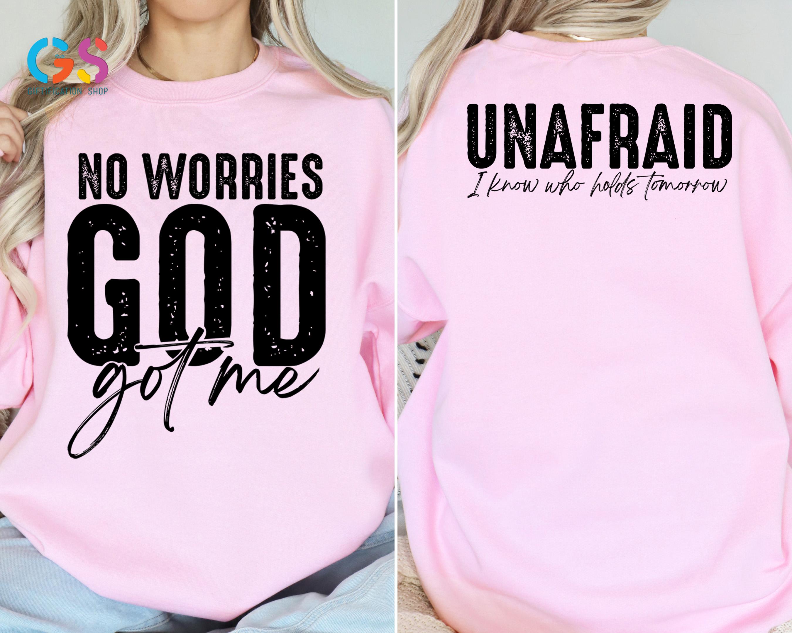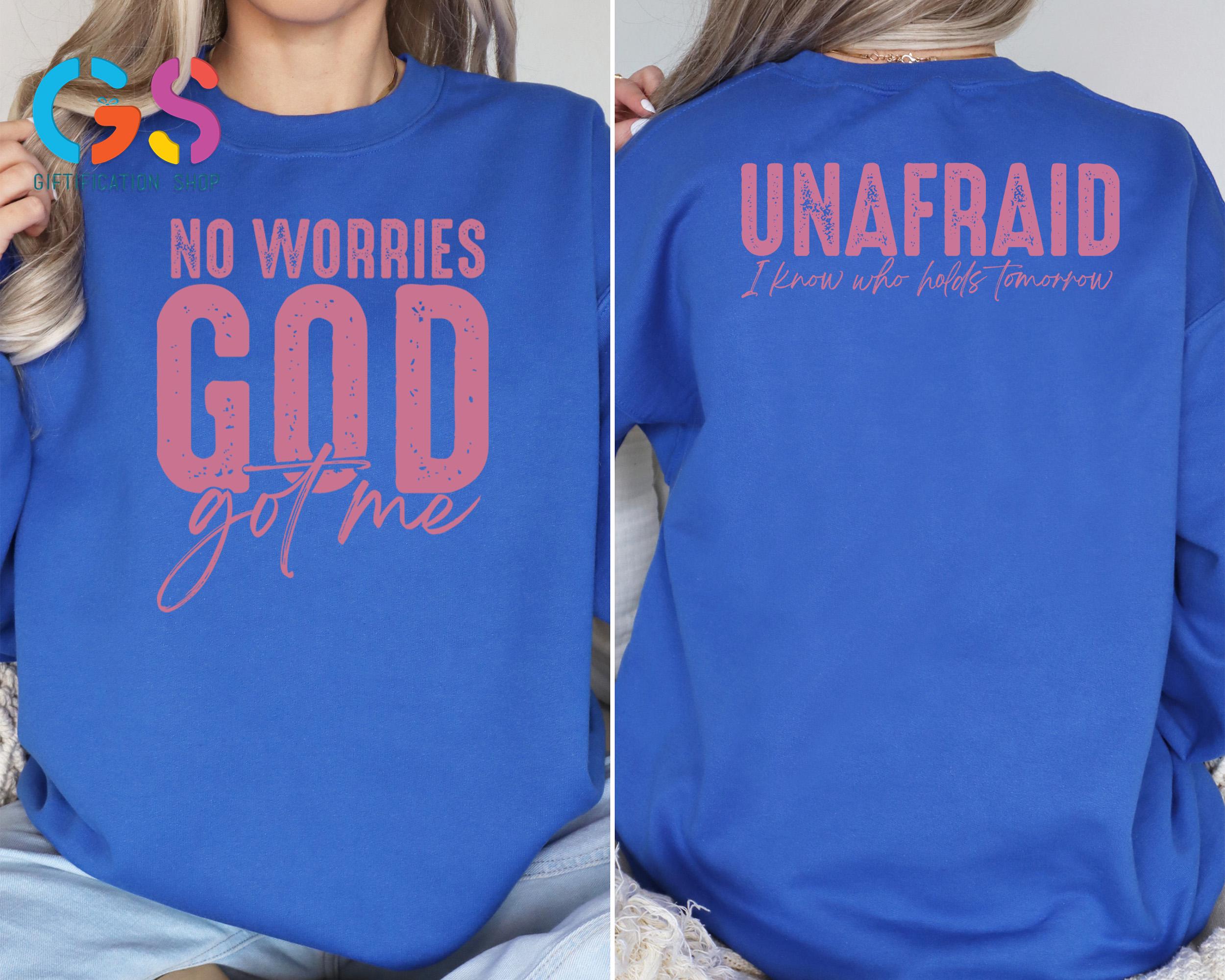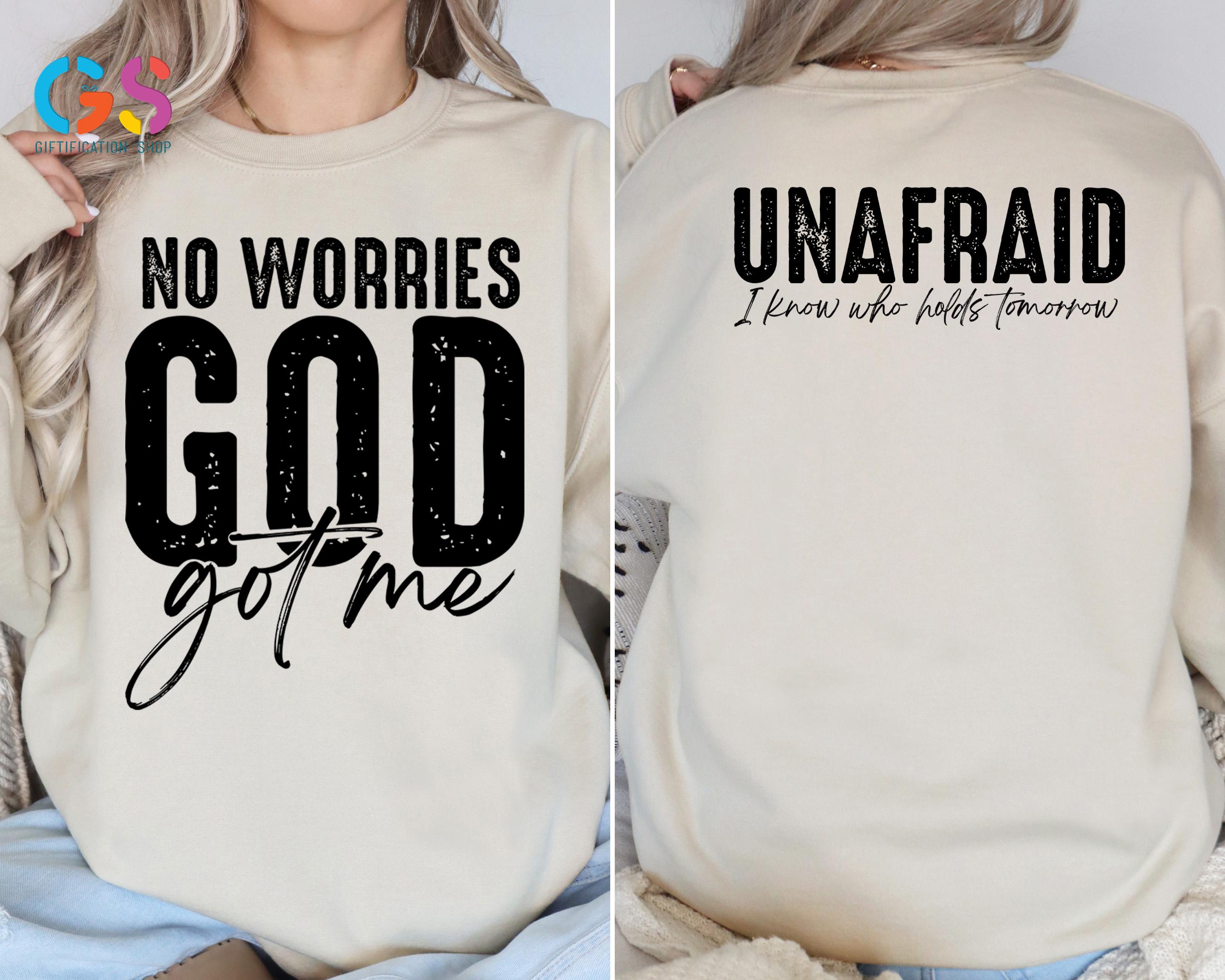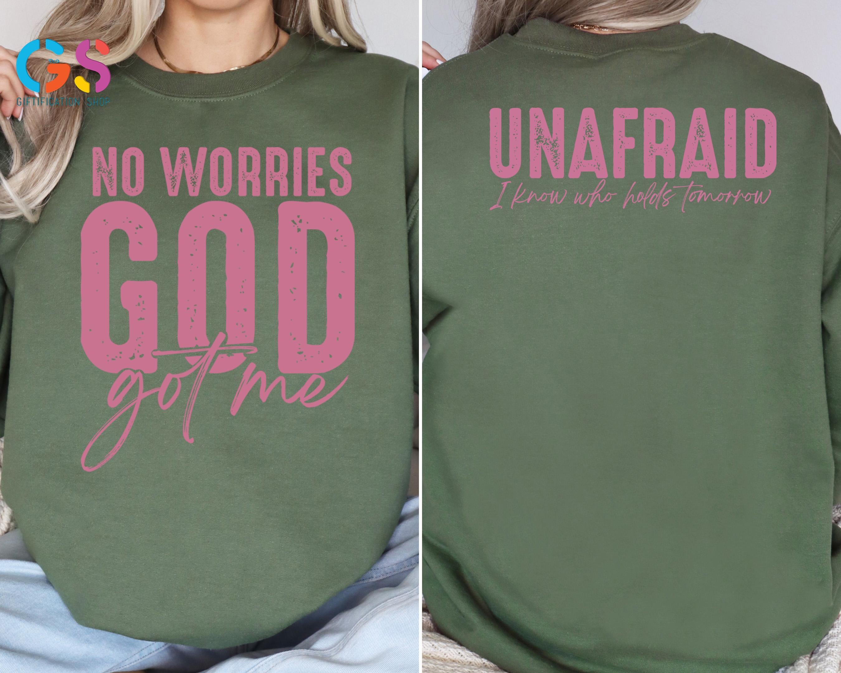 Stay grounded in faith and strength with our God Got Me Sweatshirt, a powerful reminder of His love and support. This religious sweatshirt is perfect for anyone who believes in the power of prayer and faith. Featuring the inspiring message "God Got Me", it’s ideal for a Christian hoodie or scripture sweatshirt that uplifts your spirit. Whether you’re showing off your faith with a Jesus sweatshirt or wearing it as a faith-based shirt, this piece is a perfect blend of comfort and empowerment. A wonderful Christian gift for her, it’s a reminder that you are never alone—God’s got you. Whether you're wearing it to church, out and about, or simply lounging at home, this unafraid shirt speaks to your strength and unwavering belief. A beautiful women empowerment hoodie, this Jesus tee is a stylish way to share your faith wherever you go.