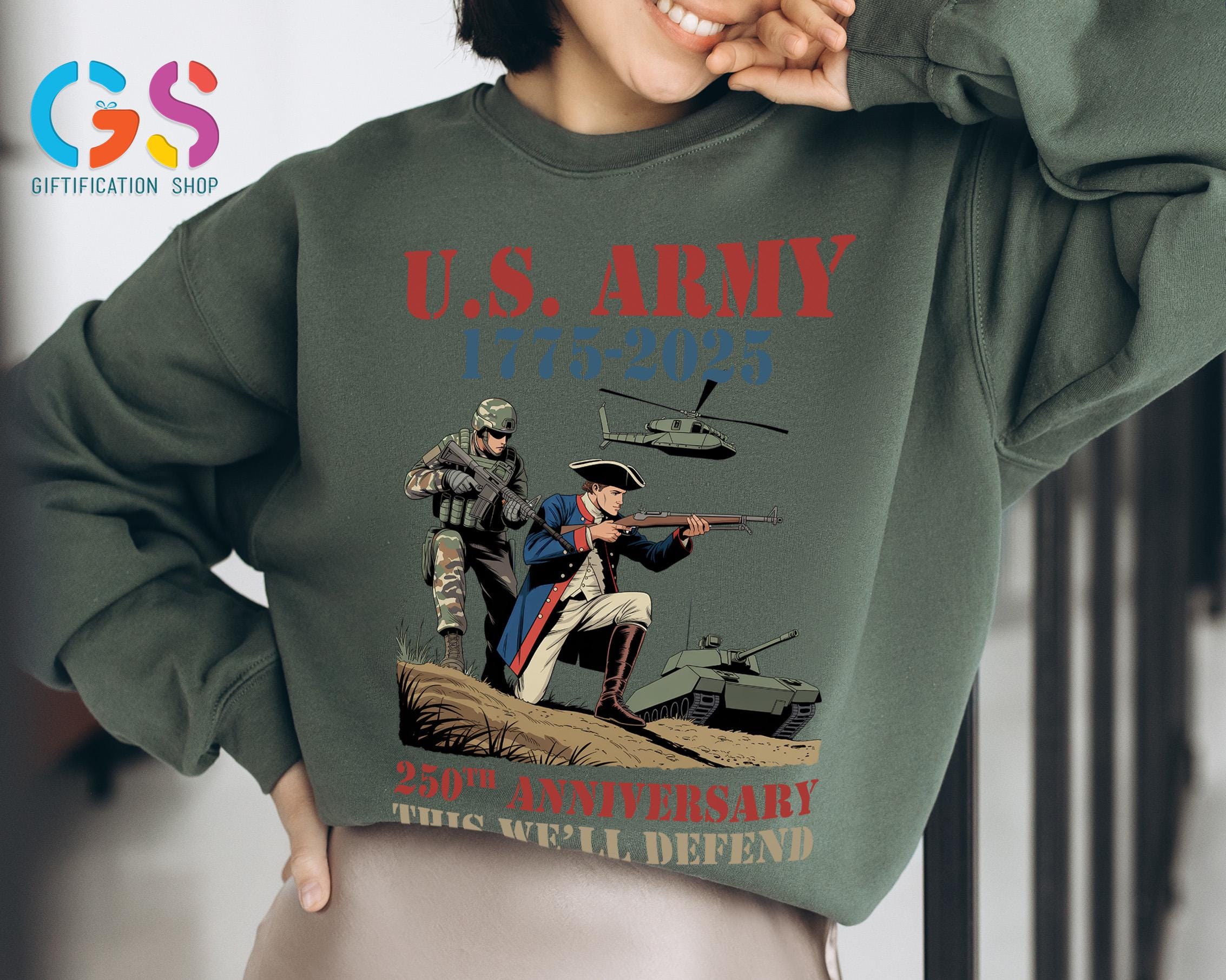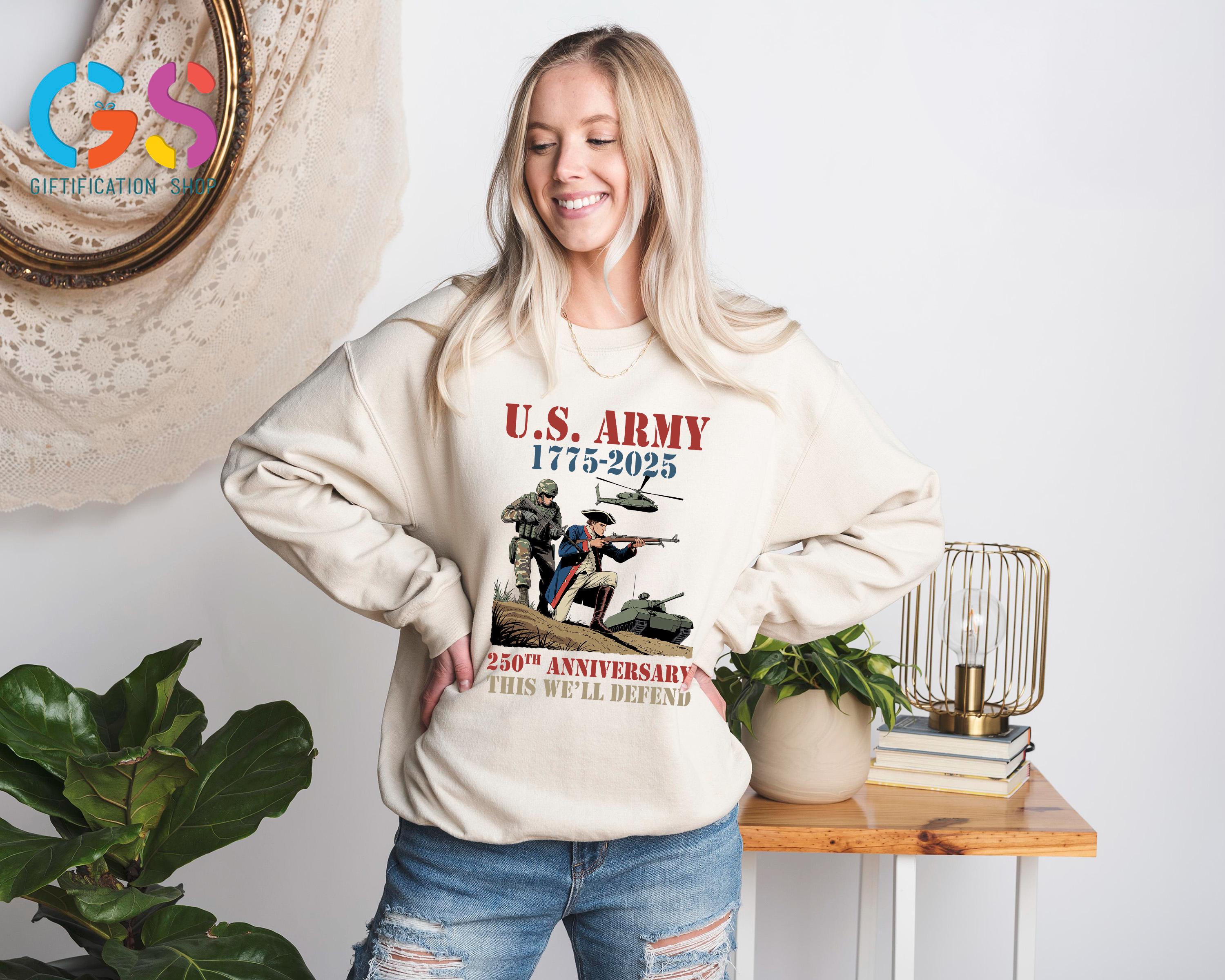 United States Army 250 Years Sweatshirt, 1776-2025 We'll Defend, Patriotic Anniversary Gift, Freedom Memorial Day Top
