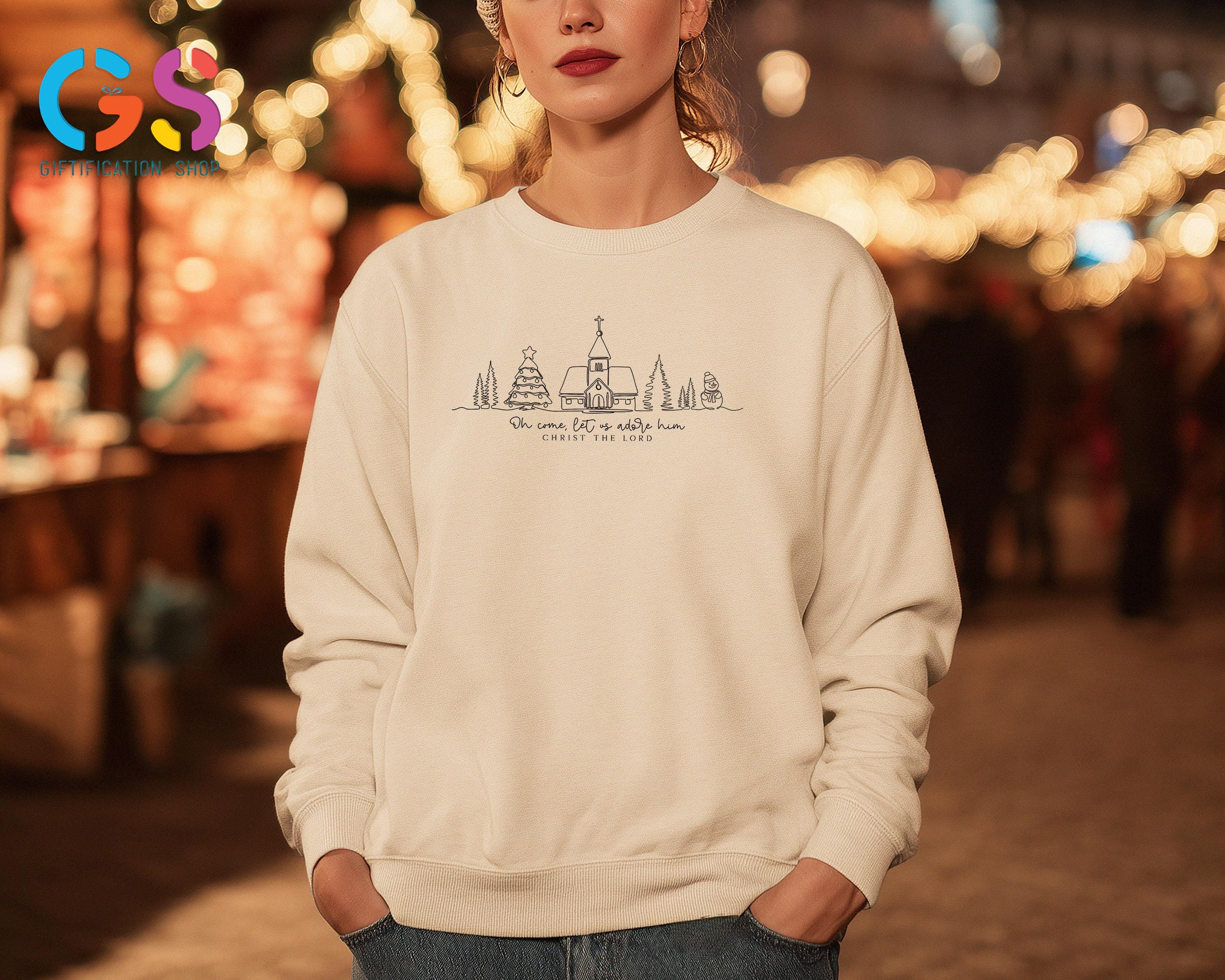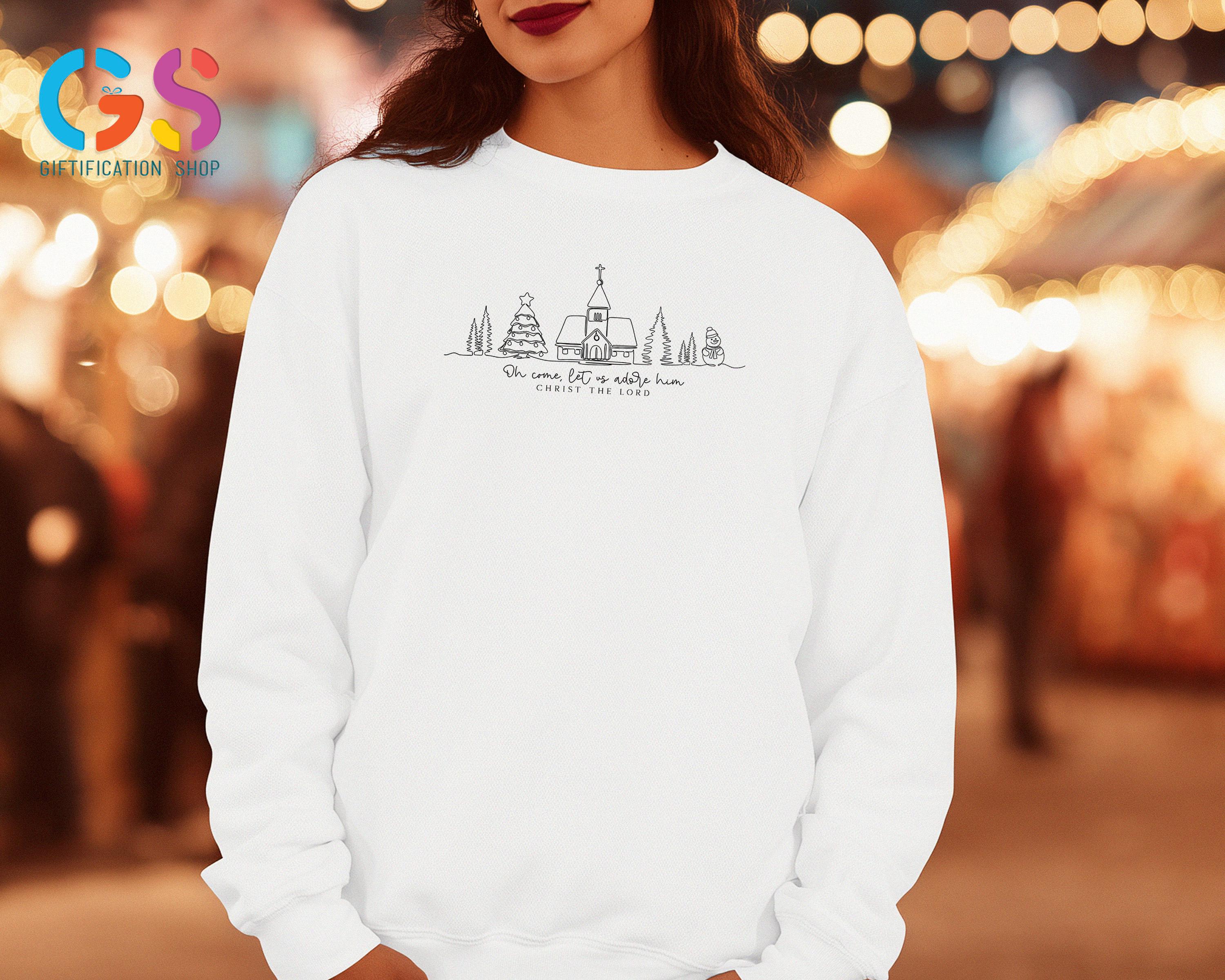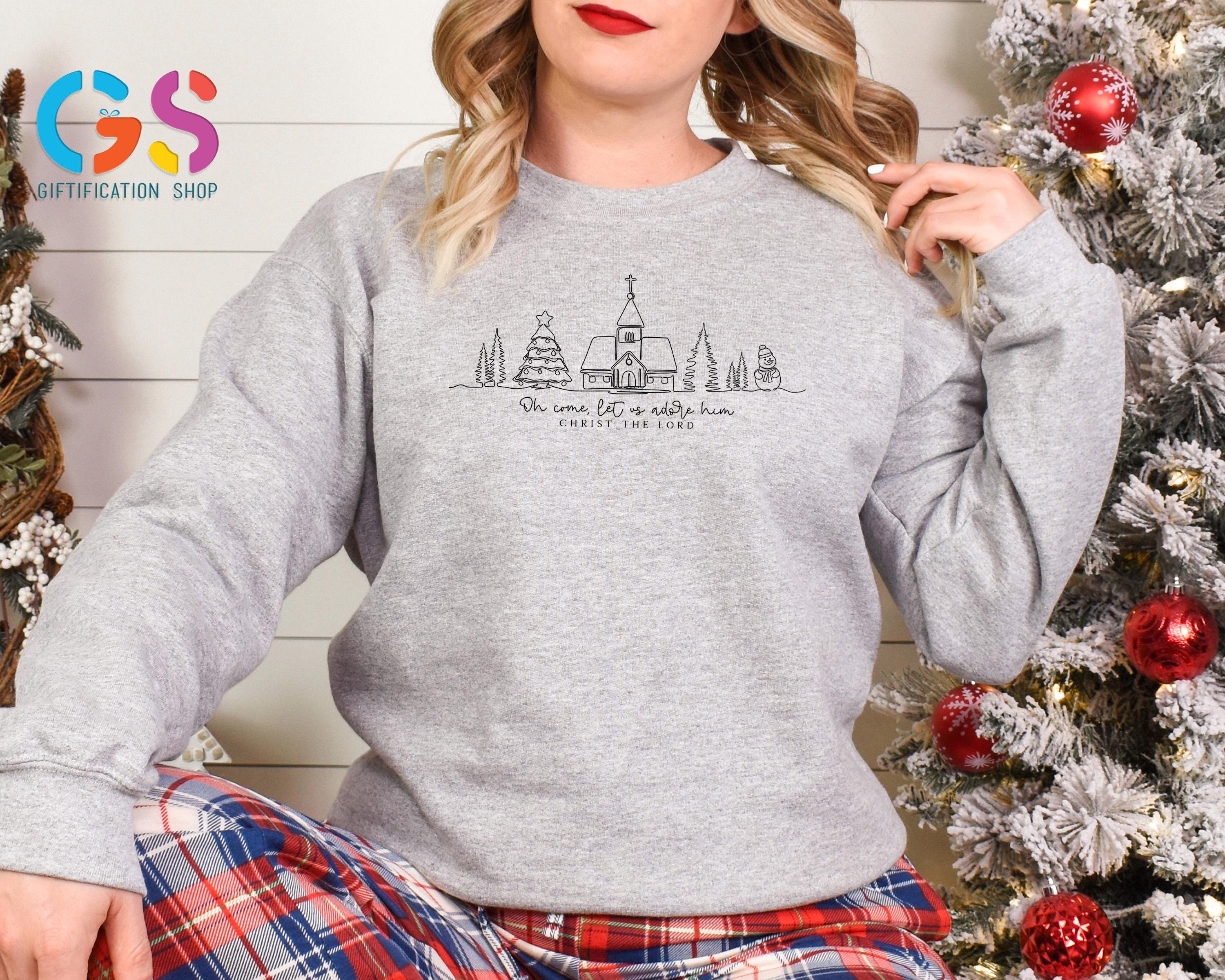 Let Us Adore Him Merry Christmas Sweatshirt, Christian Holiday Gift, Church Sweater, Jesus Lover Cclothing, Family Top