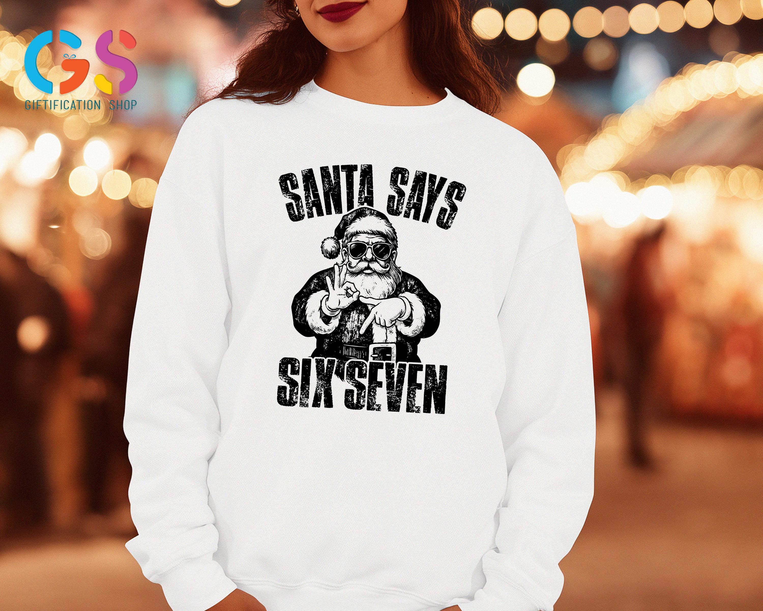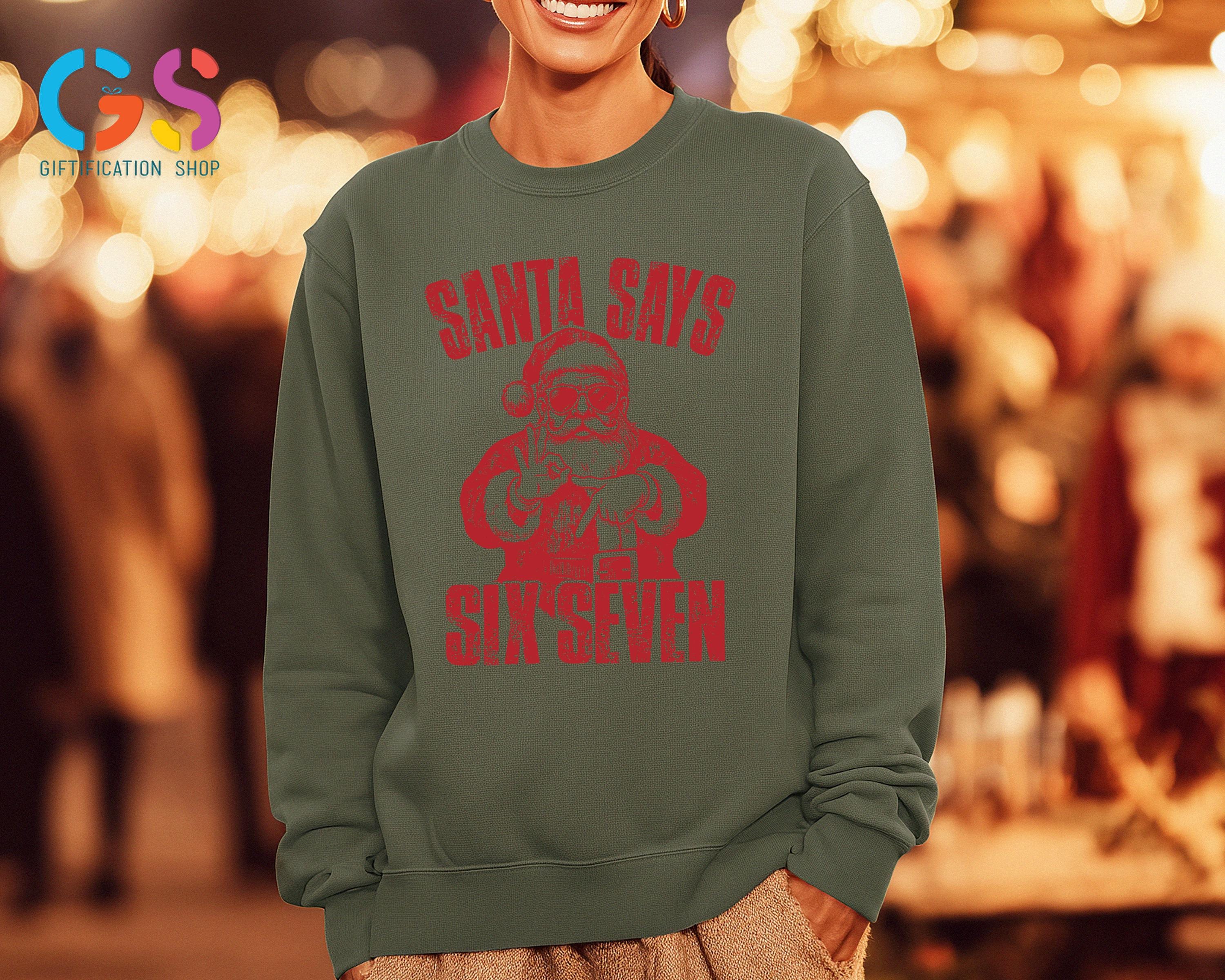 Santa Says Six Seven Sweatshirt, 67 Christmas Sweater, Viral Xmas Meme Hoodie, Sarcastic Gen Z Alpha Clothes