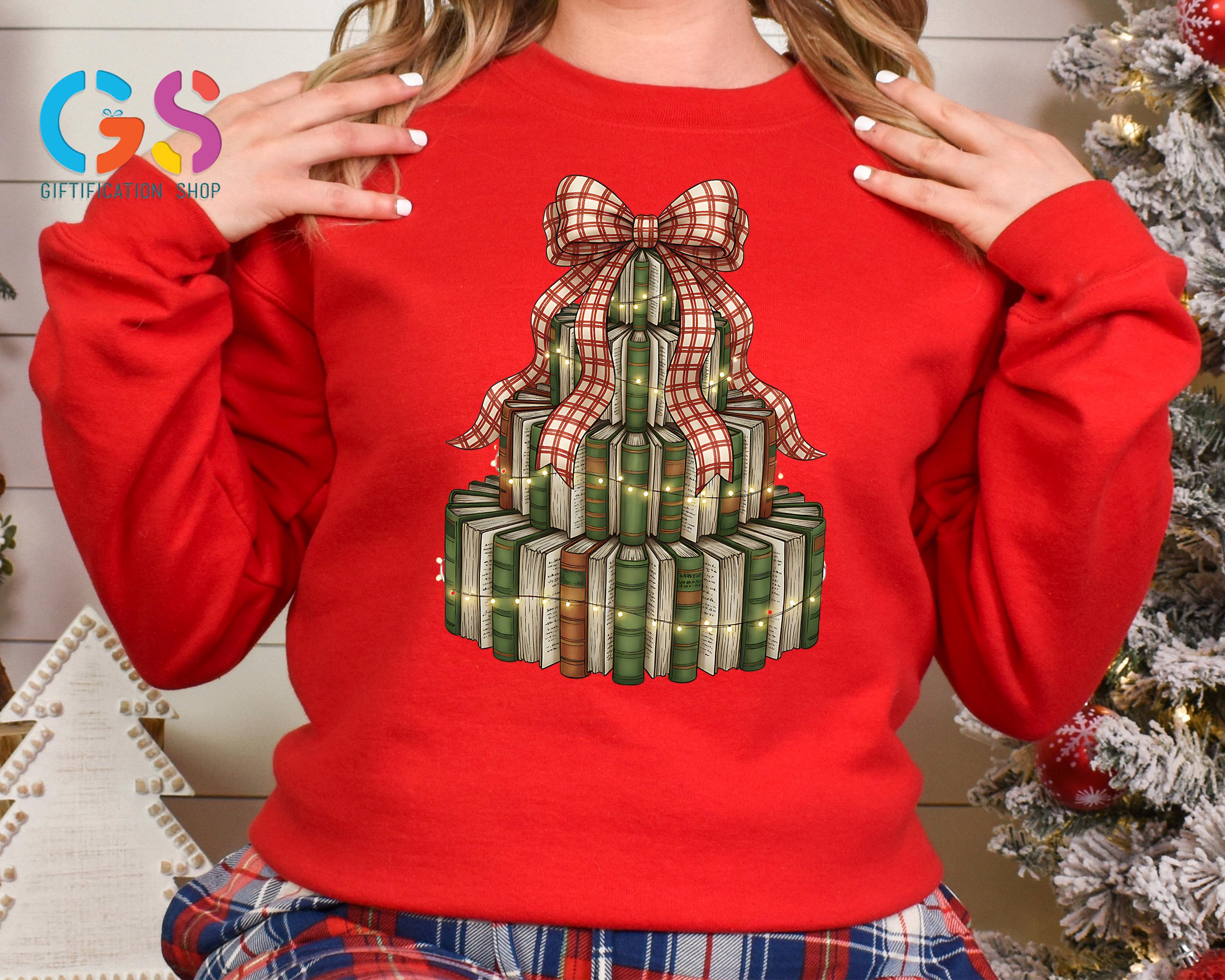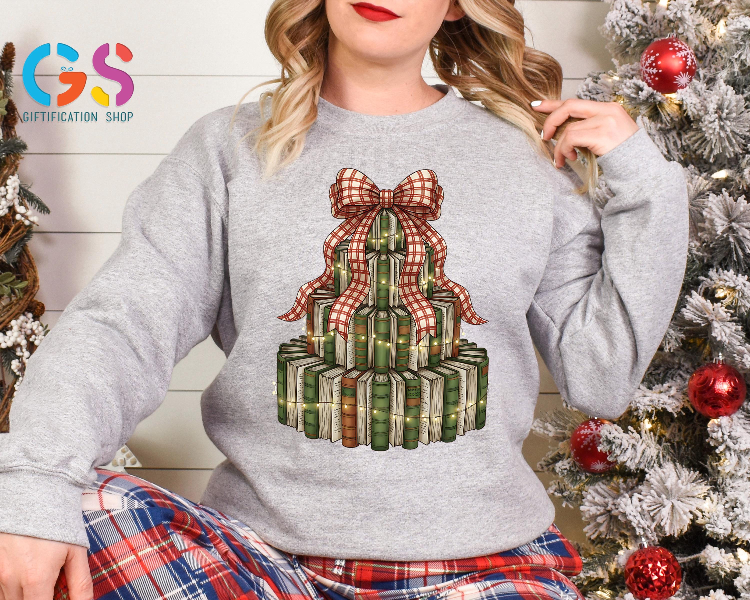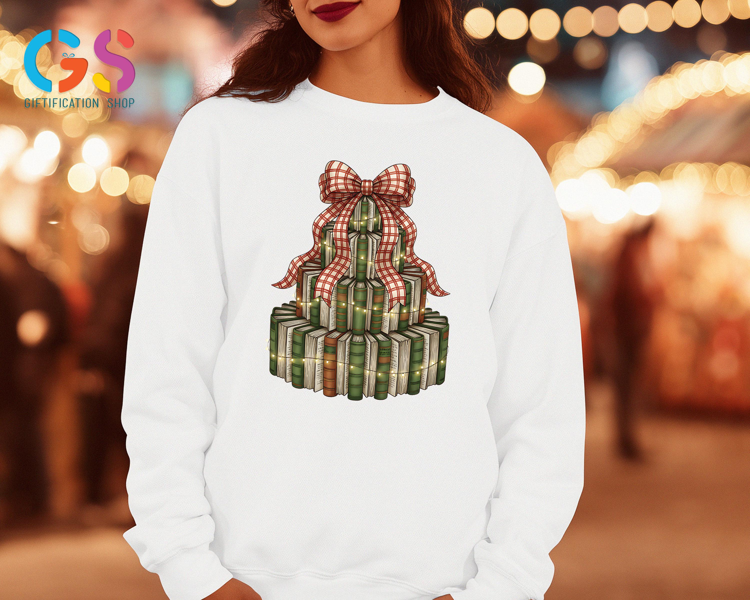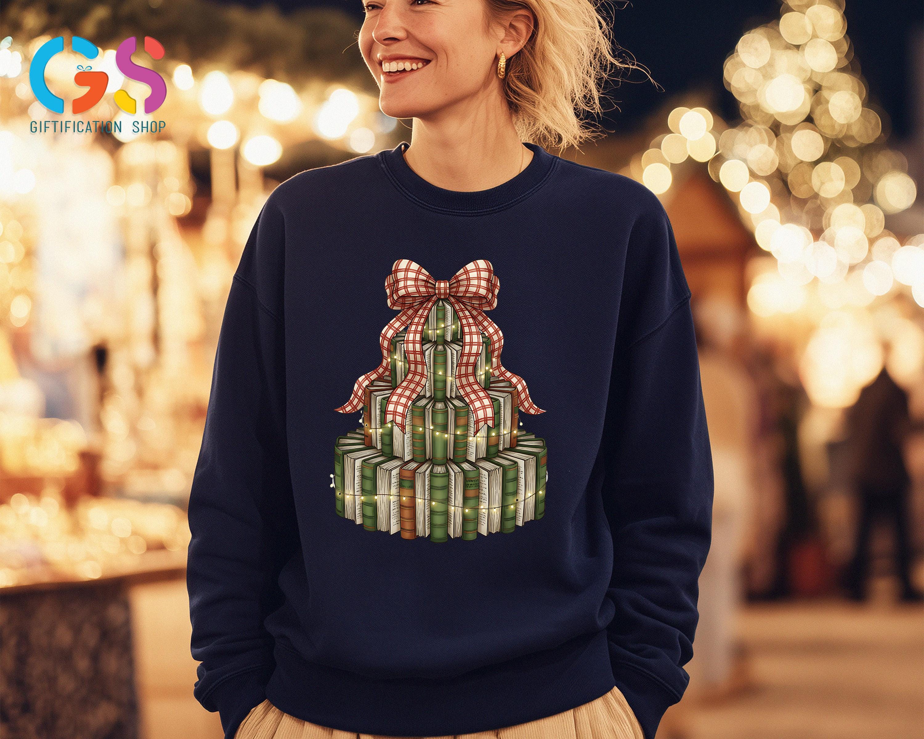 Celebrate the season in literary style with our Book Tree Sweatshirt, featuring the playful phrase "All Booked For Christmas"—perfect for book lovers and holiday enthusiasts alike! This bookish holiday hoodie is a cozy way to show off your love for reading while embracing the festive spirit. Ideal for gifting, this Christmas book tree design makes a unique Christmas gift for any book lover. Whether you're enjoying a quiet holiday evening or celebrating with family, this book sweatshirt will keep you warm and stylish. It’s the ultimate family Christmas apparel, combining the joy of Merry Christmas with the passion for reading. Perfect for ringing in the New Year, this bookish sweatshirt is sure to bring smiles to any book lover’s face!