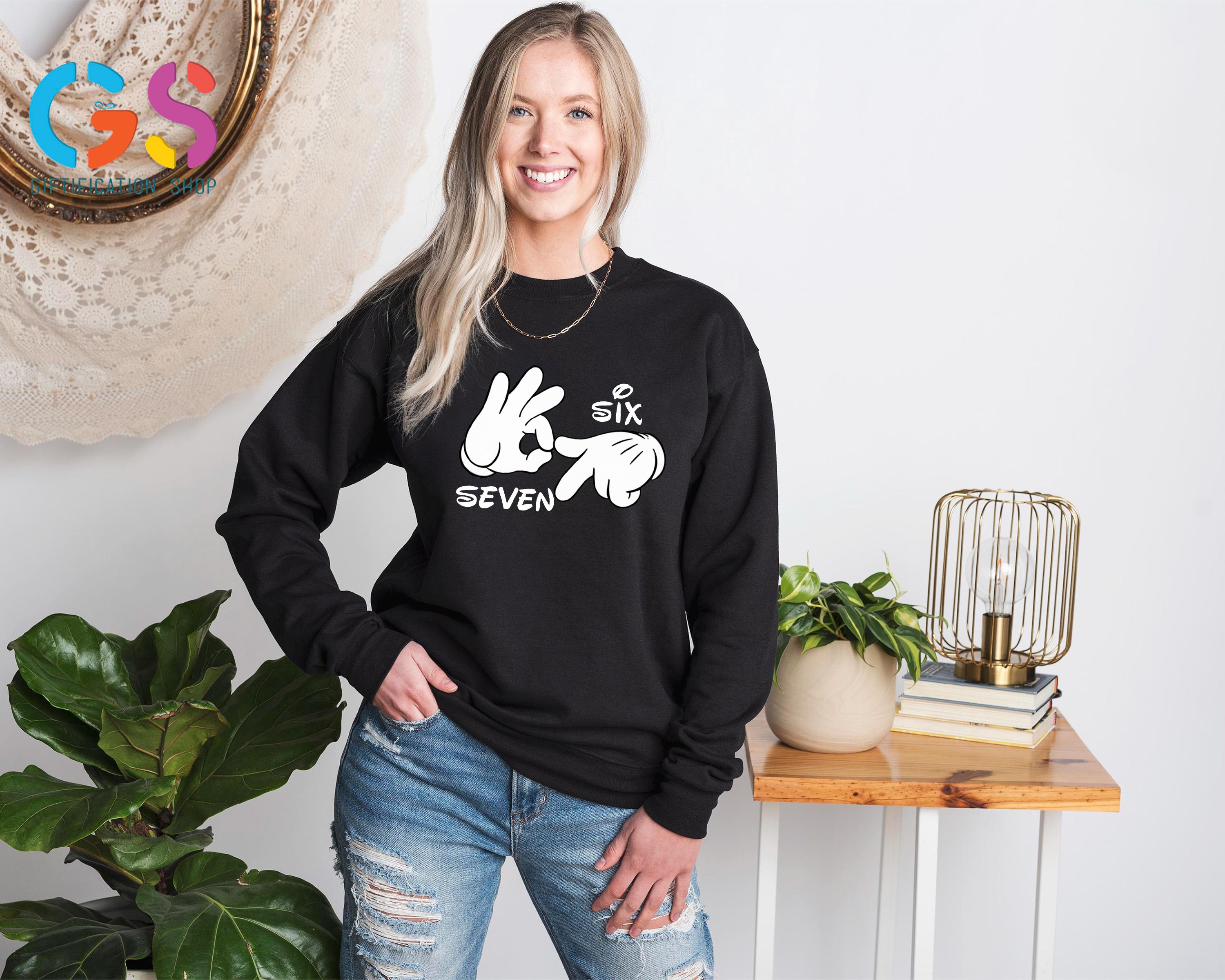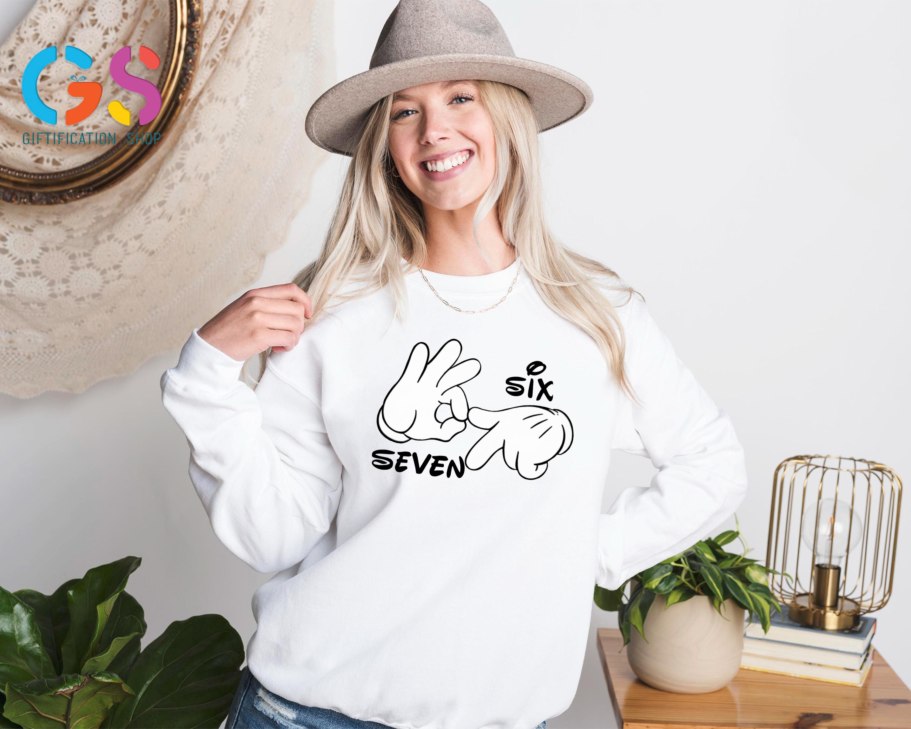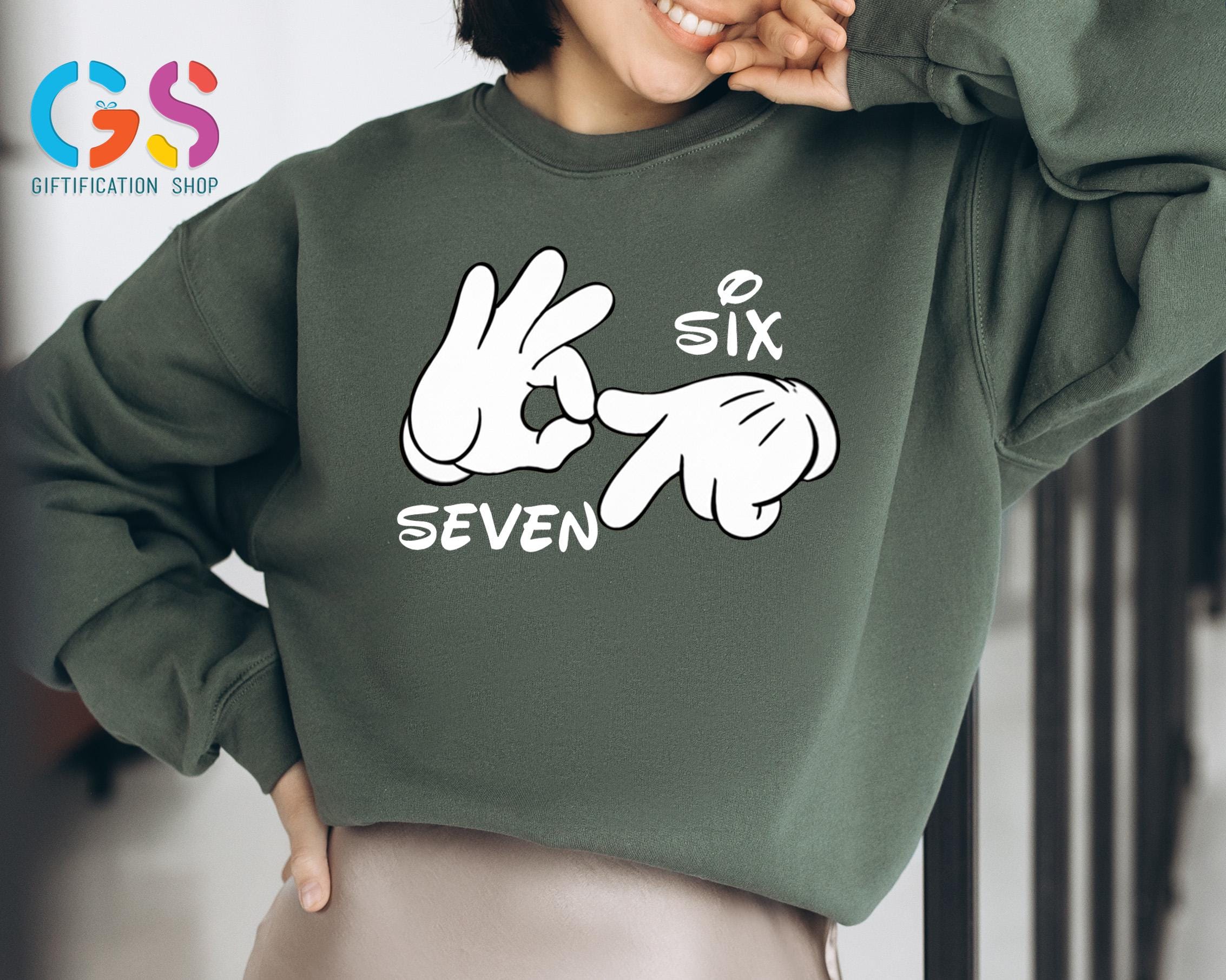Show off your love for both Disney and meme culture with the Disney Hand Six Seven Sweatshirt! Featuring a playful Movie Character 67 Hoodie design, this viral teenager sweater is the perfect blend of sarcastic humor and iconic Disney vibes. Whether you're rocking a 6 7 shirt or just embracing your inner Gen Z or Gen Alpha trendsetter, this funny saying shirt is guaranteed to make a statement. From Mickey Sweatshirts to Disney gifts, this trendy shirt is perfect for any teen girl or funny teenager looking to add a touch of humor and nostalgia to their wardrobe. It’s the ultimate mix of Disney sweatshirt magic and viral meme shirt fun!