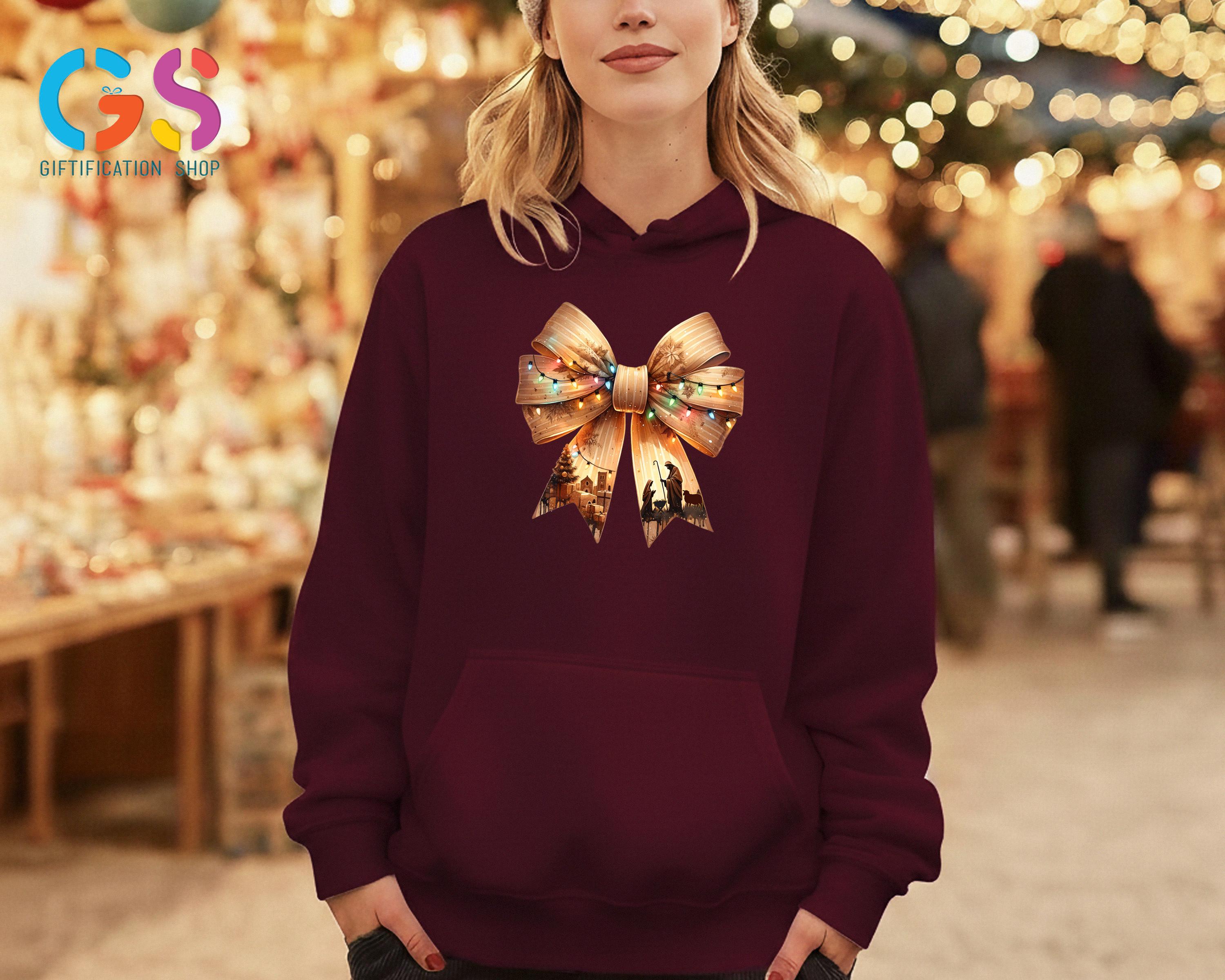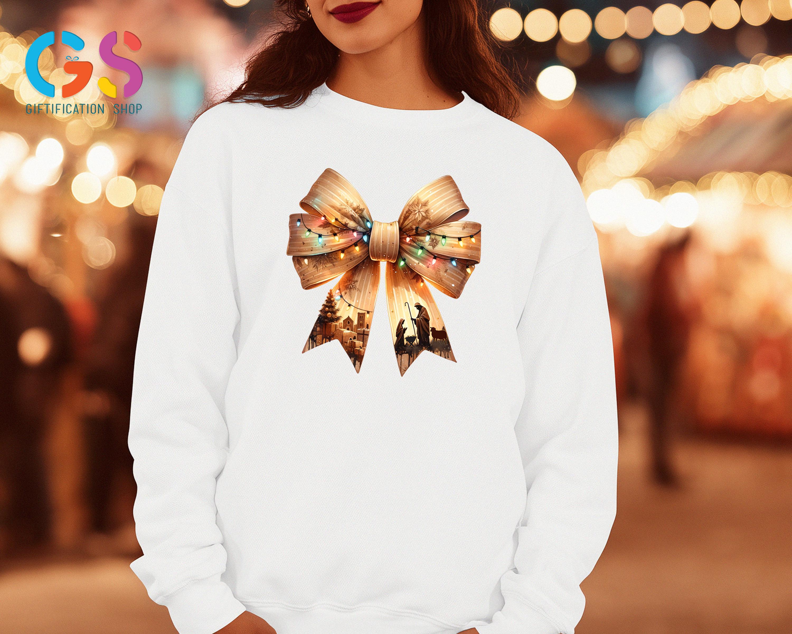 Celebrate the true meaning of Christmas with our Coquette Nativity Scene Sweatshirt, a beautiful way to express your faith this holiday season. Featuring a stunning nativity scene design, this Christian sweatshirt is the perfect combination of Christmas vibes and faith sweatshirt style. The Greatest Gift of All Hoodie reminds us of the true gift of Jesus, making it a meaningful addition to your holiday wardrobe. Whether you're looking for a Christmas Christian sweater or a girly Christmas top, this religious sweatshirt will keep you cozy while spreading the joy of the season. Ideal as a Christian xmas tee or bible verse shirt, it's a perfect holiday sweatshirt to wear to church, family gatherings, or as a thoughtful Xmas gift for someone who cherishes their faith. Stay warm and filled with Christmas cheer in this beautiful, coquette Christian piece!