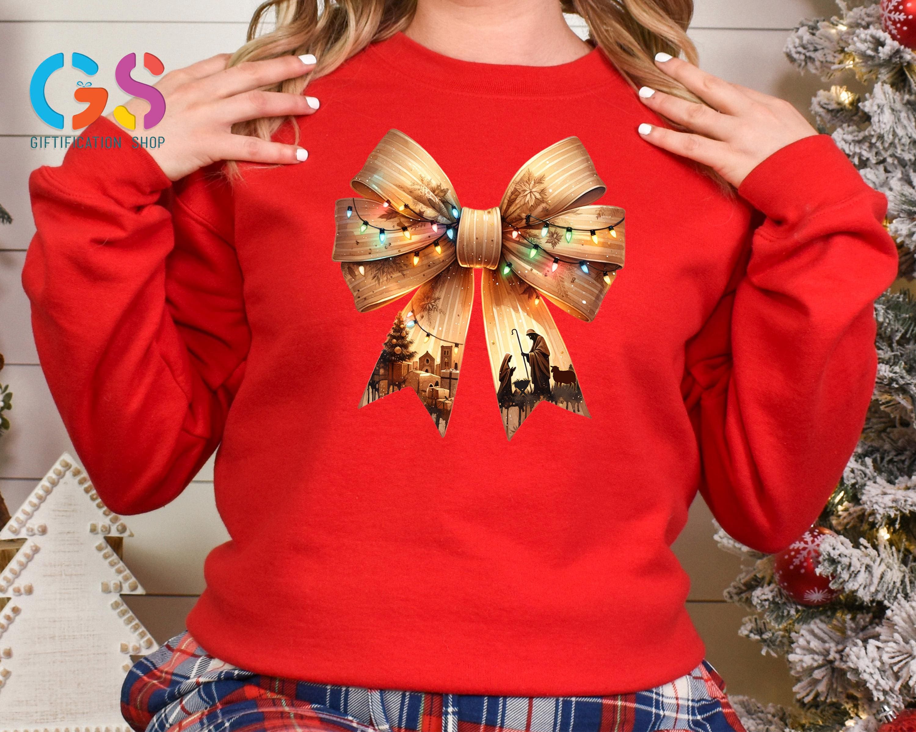 Coquette Nativity Scene Sweatshirt, Christmas Christian Sweater, Greatest Gift Of All Hoodie, Xmas Girly Bible Verse Gift