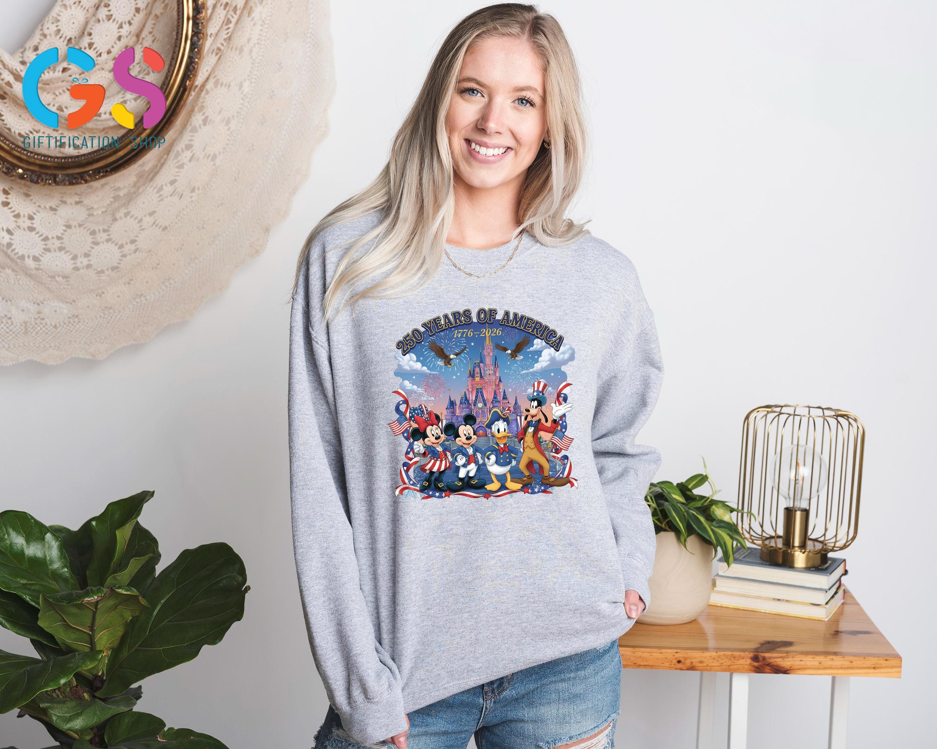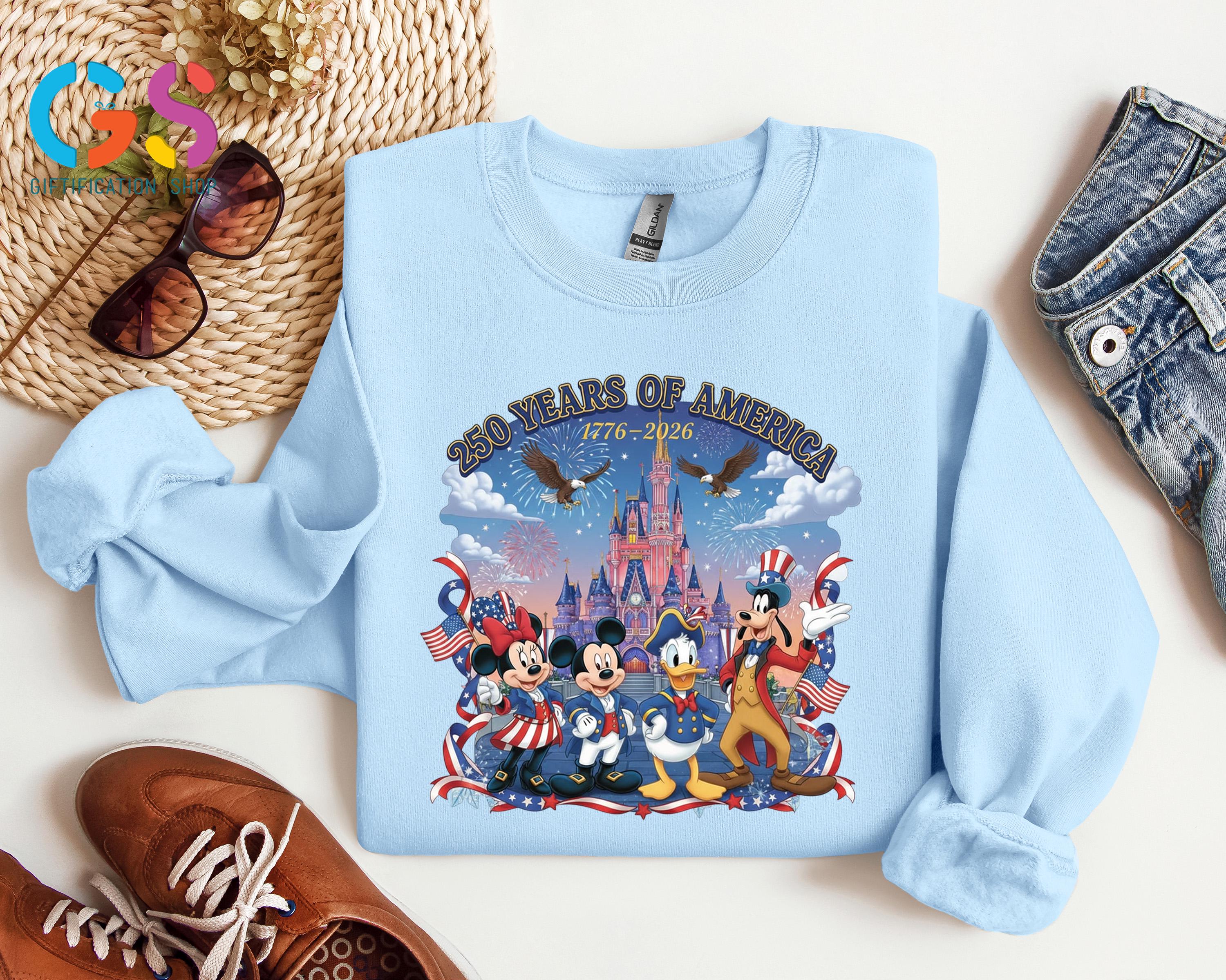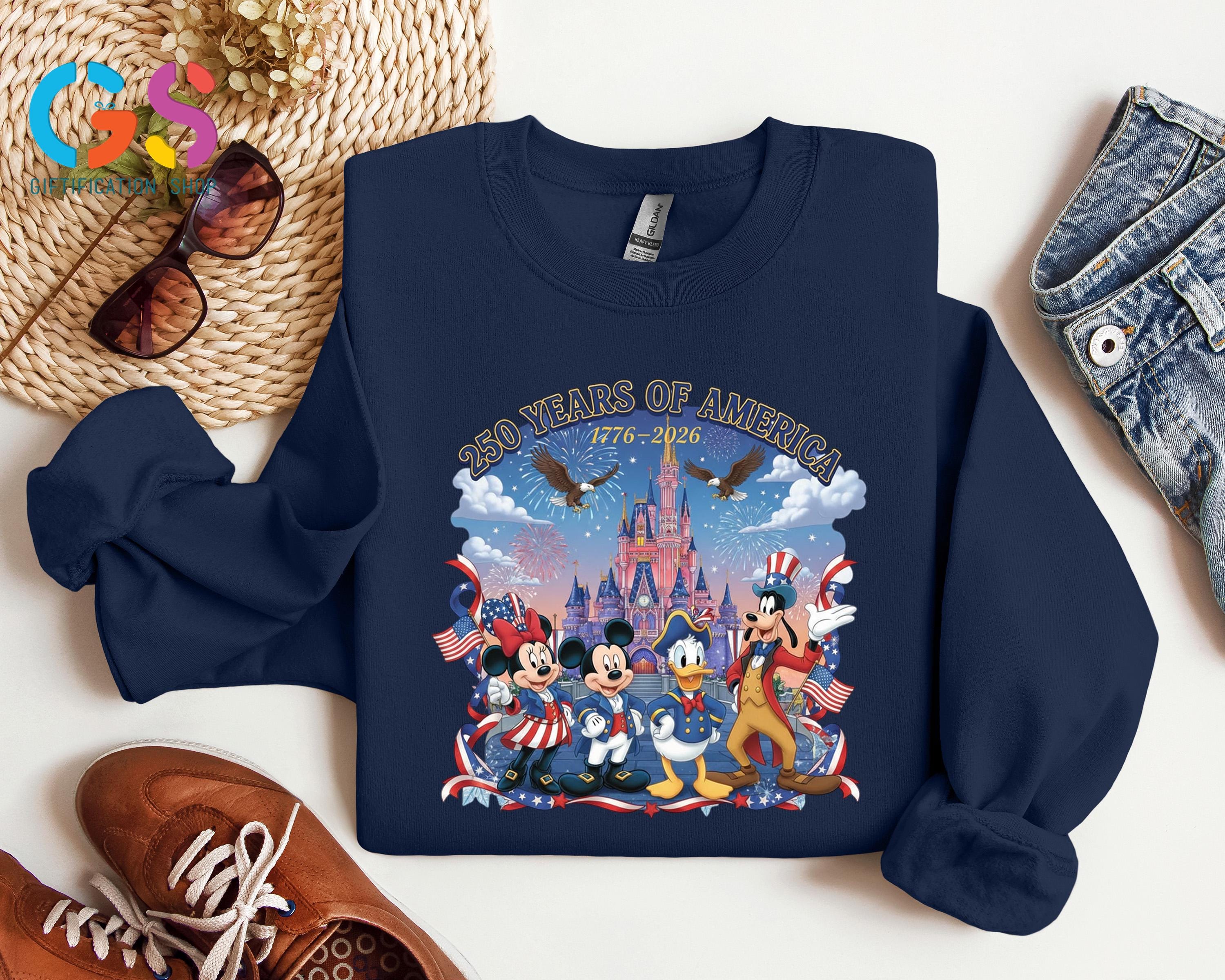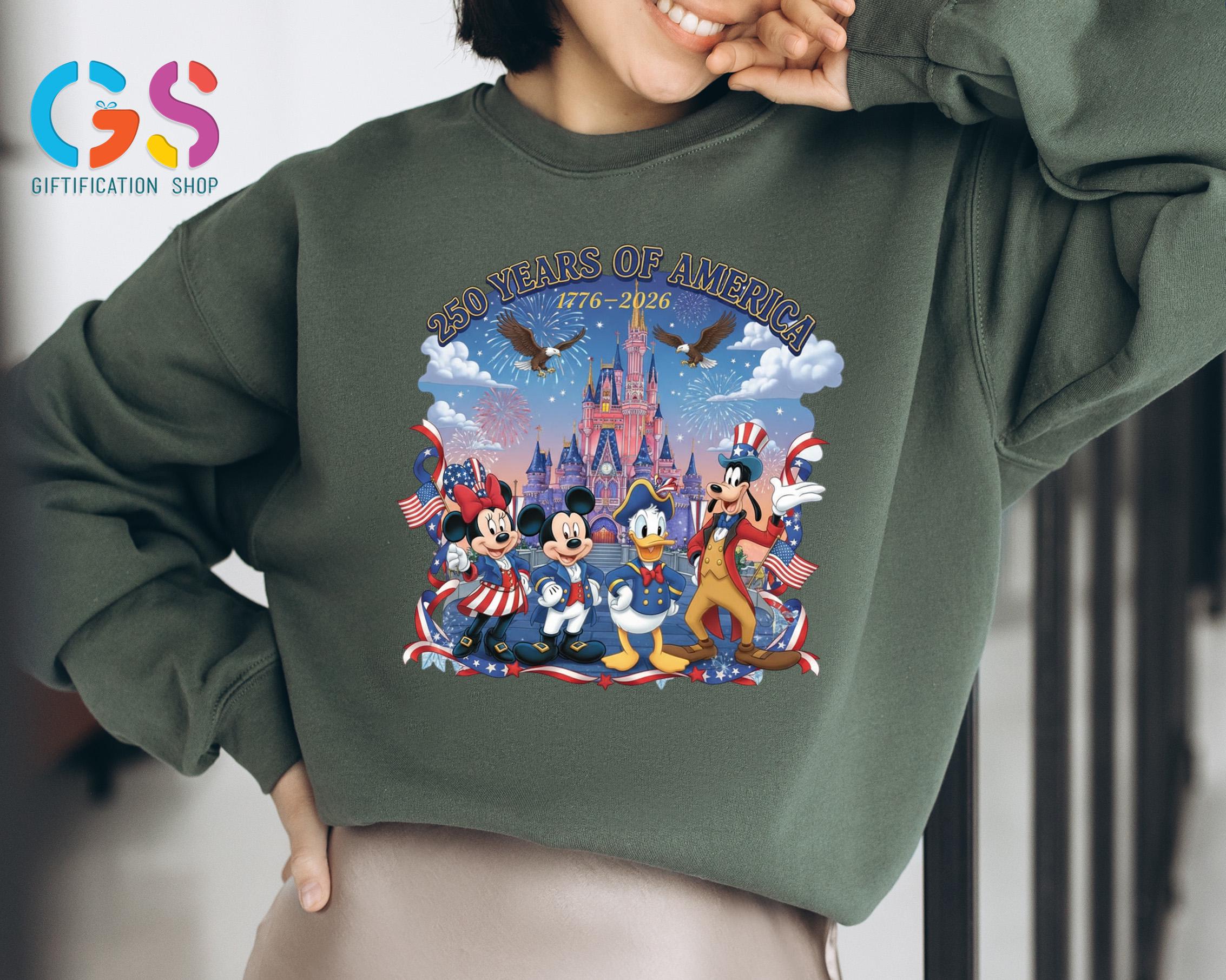 Celebrate 250 years of America in true Disney style with our Disney 250 Years of America Sweatshirt! Perfect for any Disneyworld trip, this patriotic eagle hoodie combines the magic of Disney with a love for the United States. Whether you're celebrating Independence Day or commemorating this historic anniversary, this sweatshirt makes an excellent anniversary gift or patriotic gift. Featuring iconic Mickey America shirt and Mickey and Friends designs alongside powerful symbols like the American Eagle and Statue of Liberty, it’s a standout piece for any Disney fan who wants to show their love for both country and Disney. Ideal as a military gift or a memorable souvenir from your Disneyland trip, this disney sweatshirt is a perfect way to celebrate America’s 250th year in style!