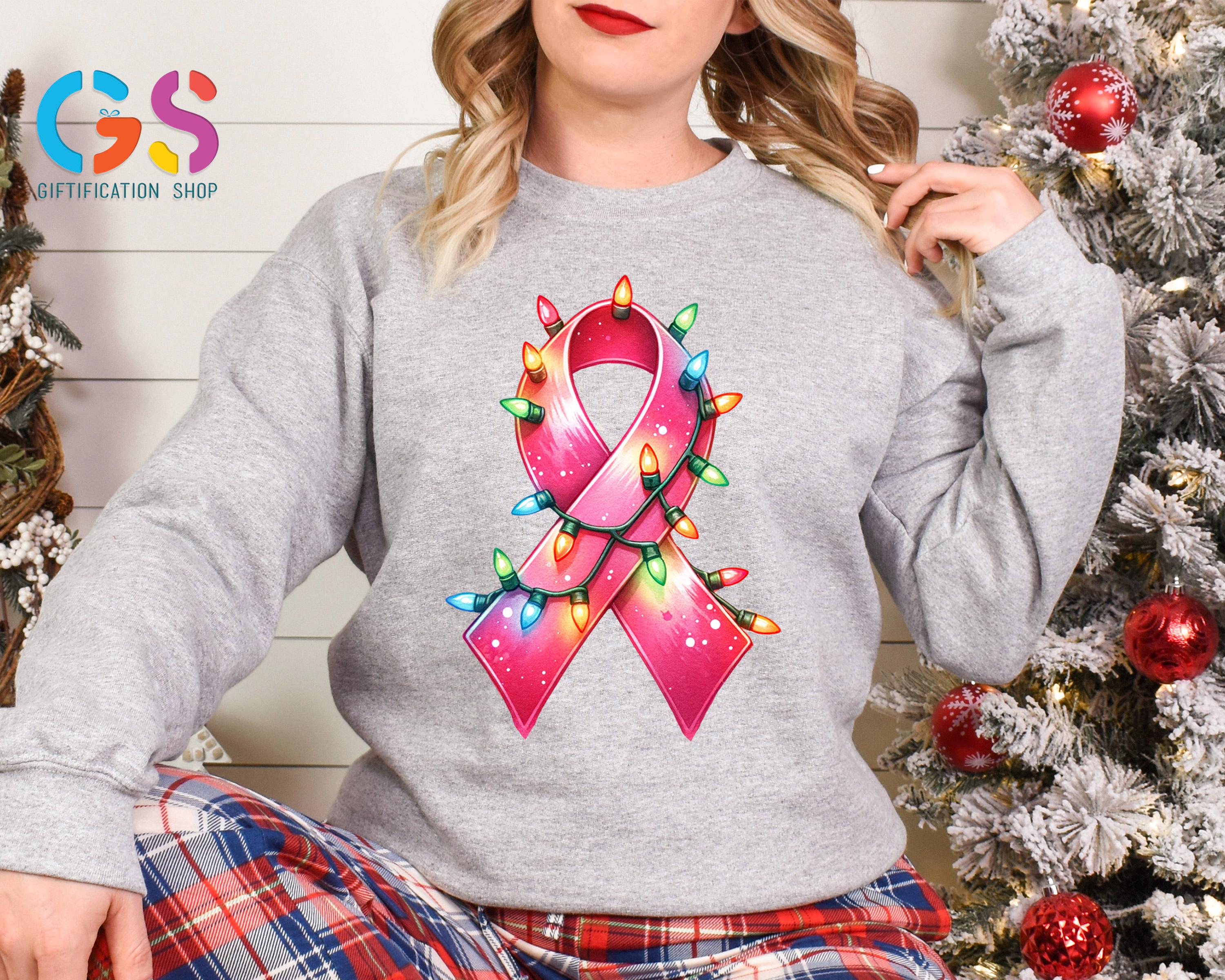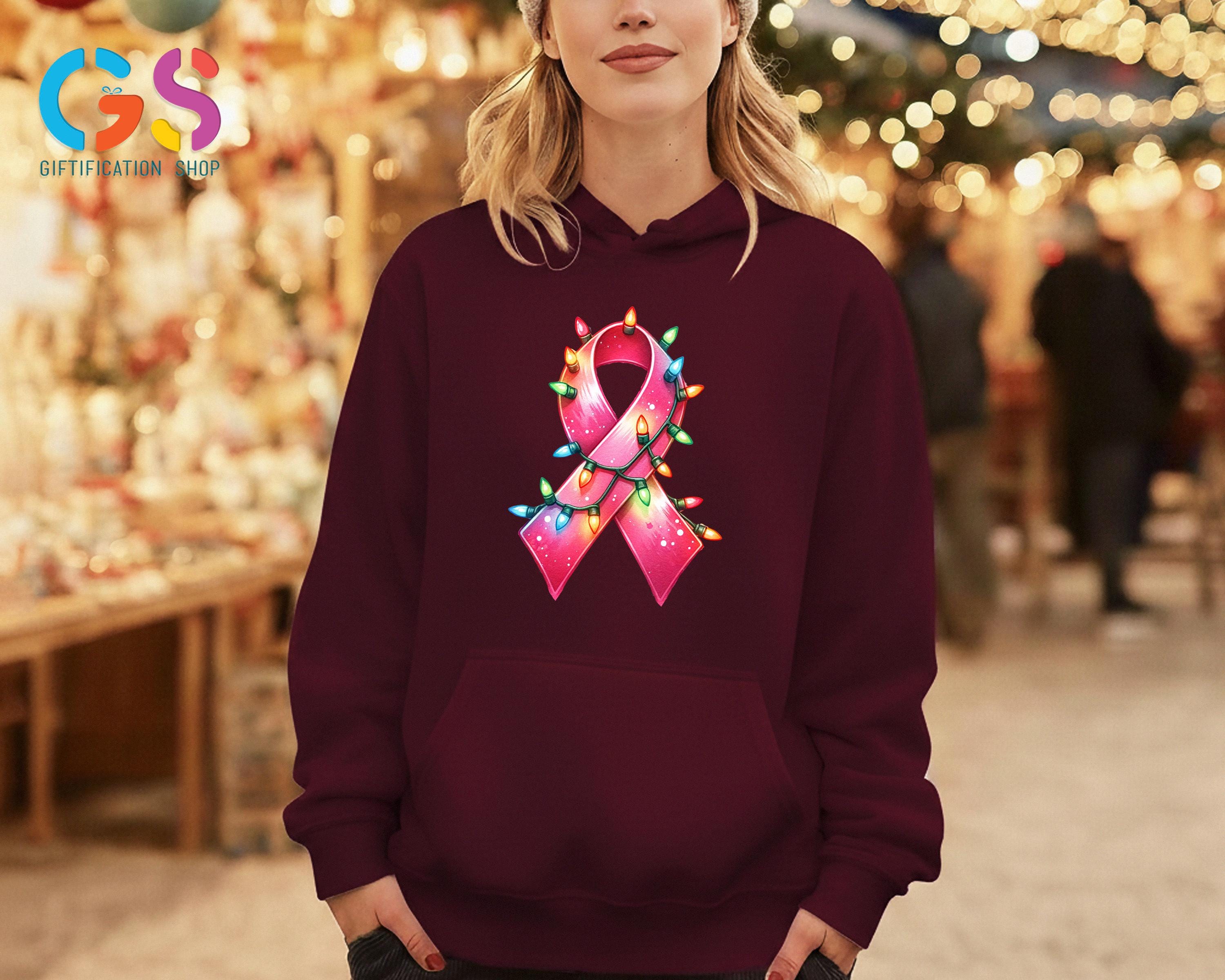 Pink Ribbon Christmas Sweatshirt, Xmas Girly Holiday Vibe Hoodie, Breast Cancer Awareness Clothes, Chemo Sweater