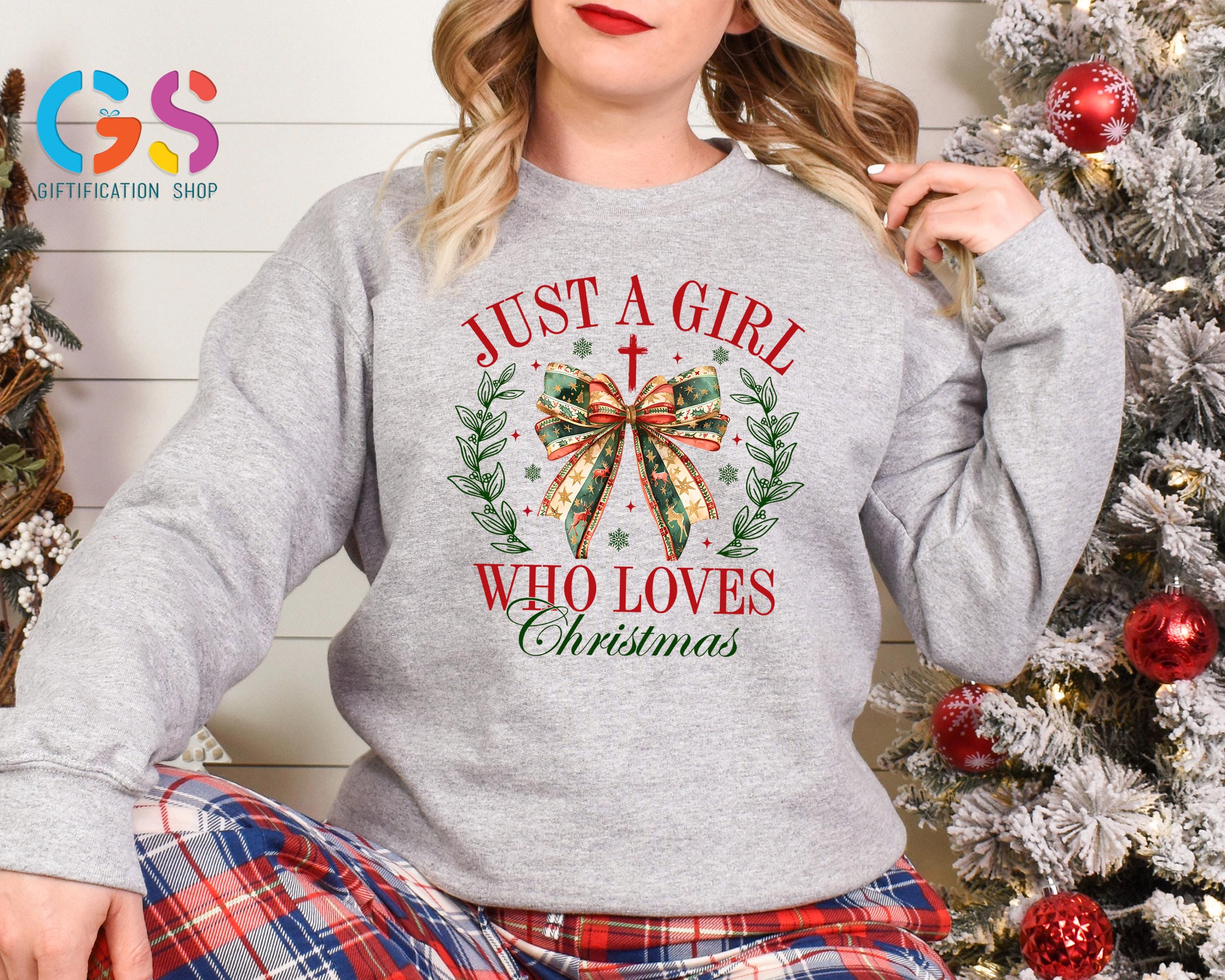 Get ready to spread Christmas vibes in style with our Just A Girl Who Loves Christmas Bow Sweatshirt! Perfect for the Christmas season, this merry and bright design is ideal for anyone who’s all about holiday sweatshirt fashion. Featuring a cute bow detail and a fun, festive message, it’s the perfect addition to your winter sweatshirt collection. Whether you're celebrating with your Christmas family or gearing up for New Year clothes, this merry Christmas sweatshirt will keep you cozy while adding to the Christmas vibes all season long. From xmas shirts to just a girl shirt looks, this Christmas sweatshirt is perfect for anyone who can’t get enough of the holiday magic!