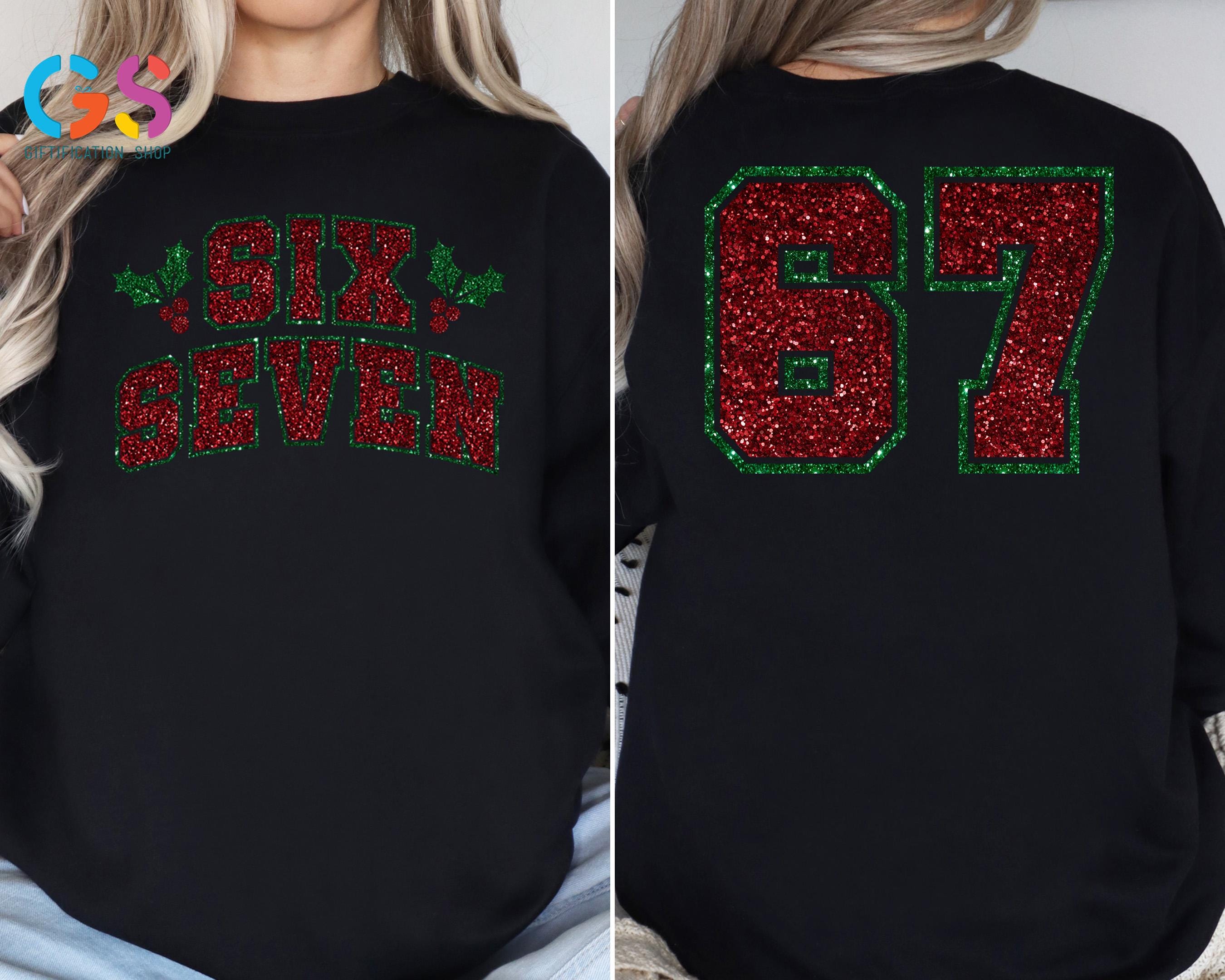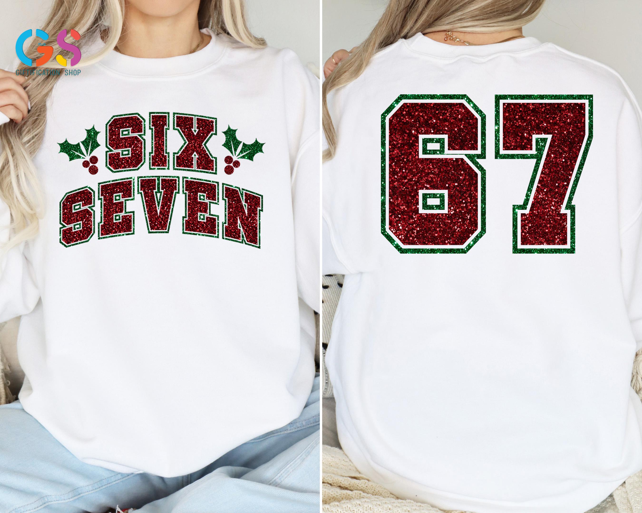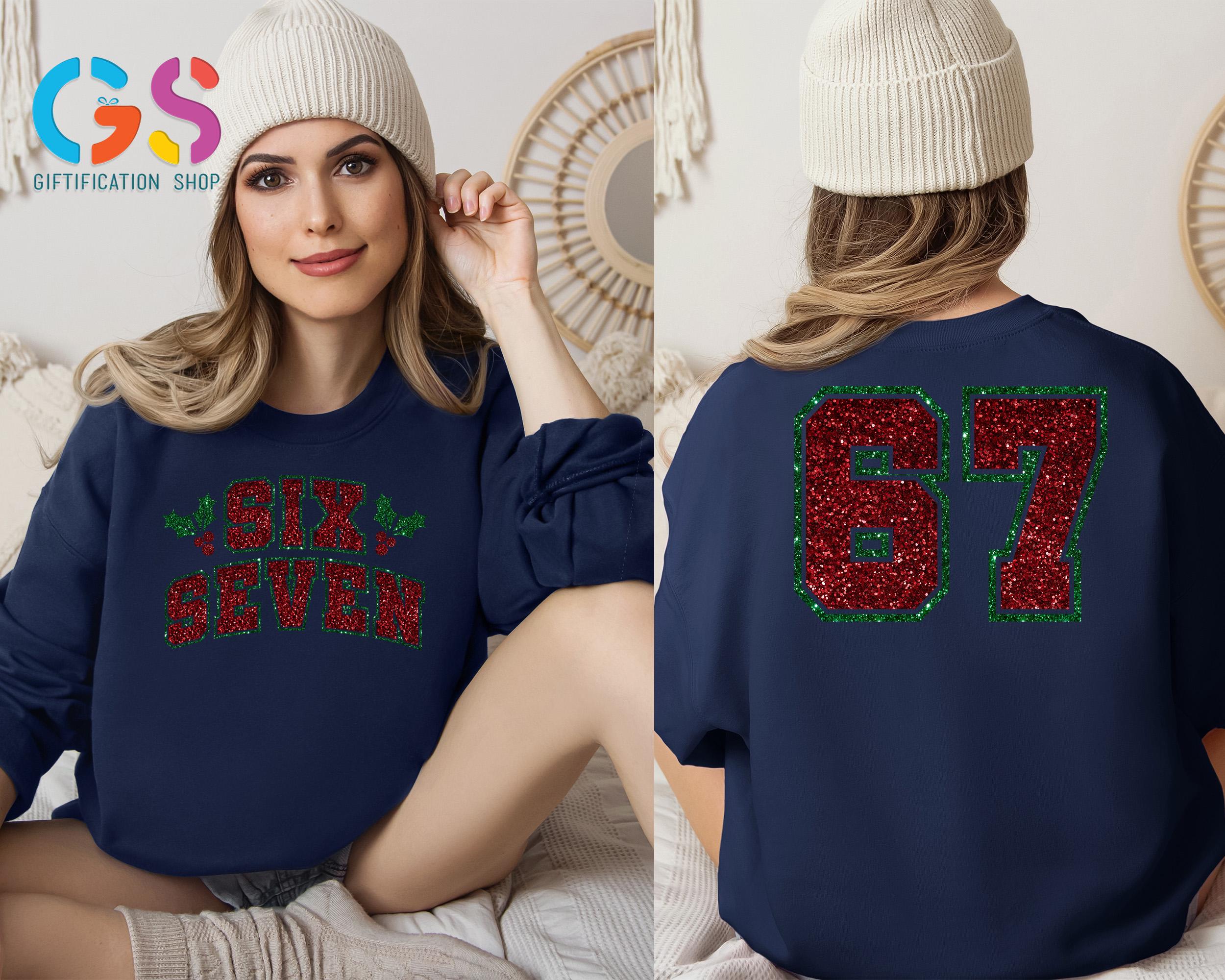 Get into the holiday spirit with the Christmas Six Seven Sweatshirt, featuring the perfect mix of funny 67 meme and sarcastic shirt style! This Xmas shirt is ideal for Gen Z and Gen Alpha trendsetters who love viral meme shirts and funny saying shirts. Whether you're shopping for a holiday gift or looking for a teen Christmas shirt, this Christmas meme sweater will bring Merry Christmas vibes and plenty of laughs. A fun and sarcastic holiday hoodie that’s sure to be the standout piece in your womens clothing collection this season! Perfect for anyone who loves a little humor with their Christmas gifts and is ready to make a statement this festive season.