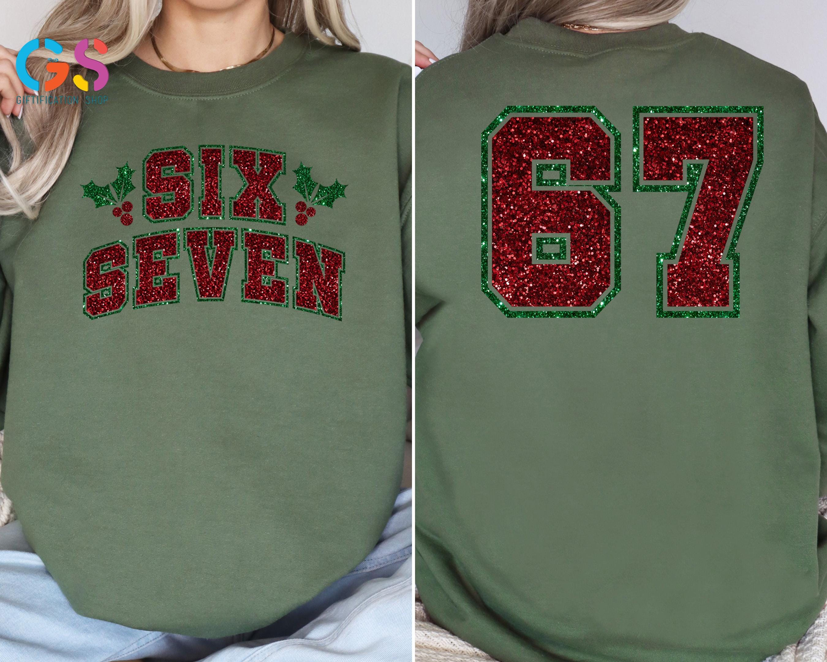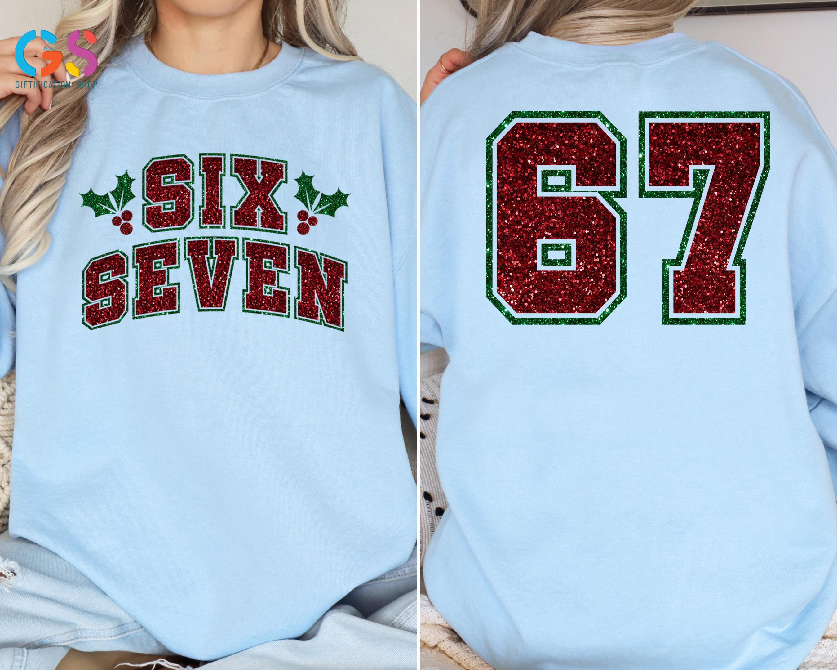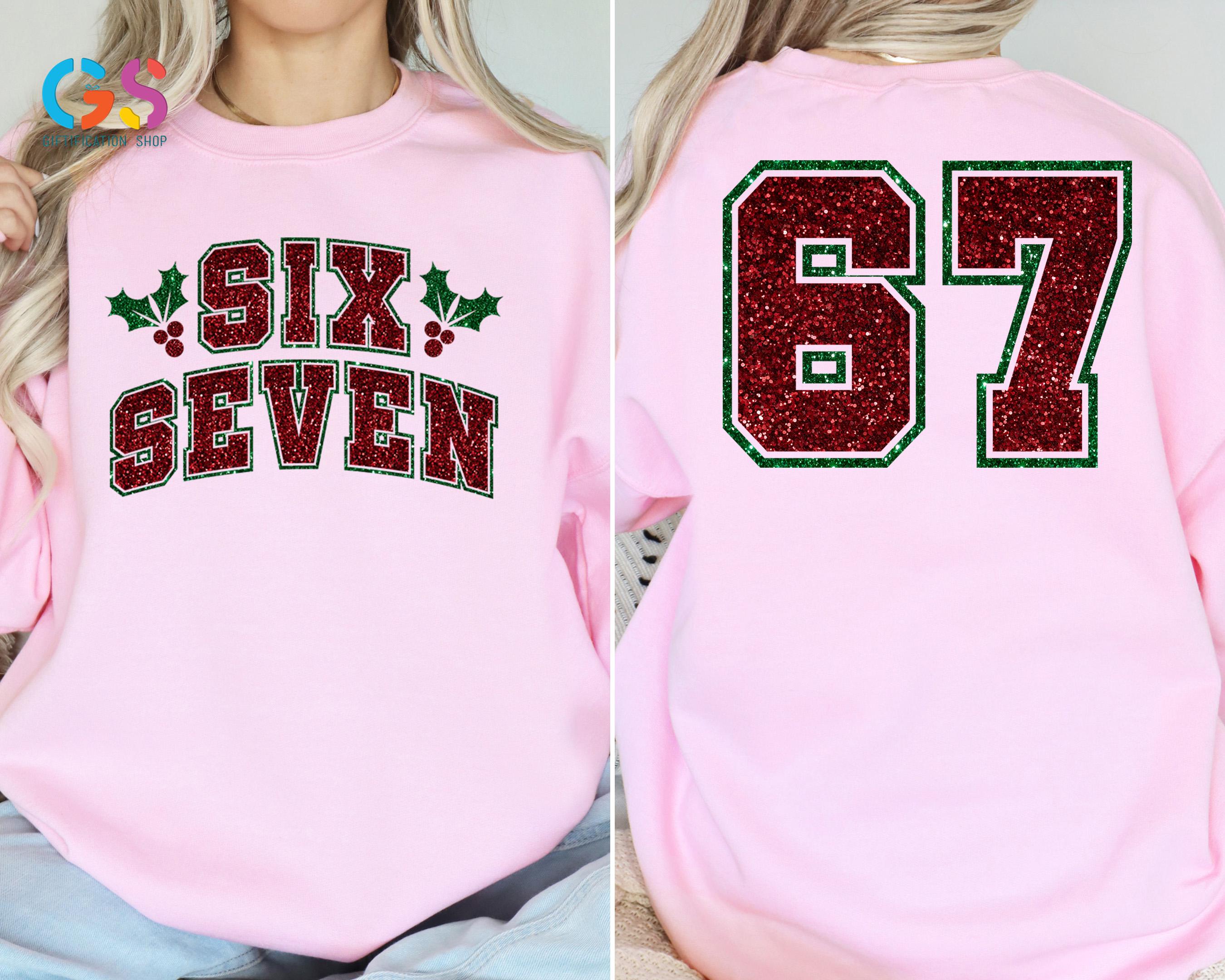 Get into the holiday spirit with the Christmas Six Seven Sweatshirt, featuring the perfect mix of funny 67 meme and sarcastic shirt style! This Xmas shirt is ideal for Gen Z and Gen Alpha trendsetters who love viral meme shirts and funny saying shirts. Whether you're shopping for a holiday gift or looking for a teen Christmas shirt, this Christmas meme sweater will bring Merry Christmas vibes and plenty of laughs. A fun and sarcastic holiday hoodie that’s sure to be the standout piece in your womens clothing collection this season! Perfect for anyone who loves a little humor with their Christmas gifts and is ready to make a statement this festive season.
