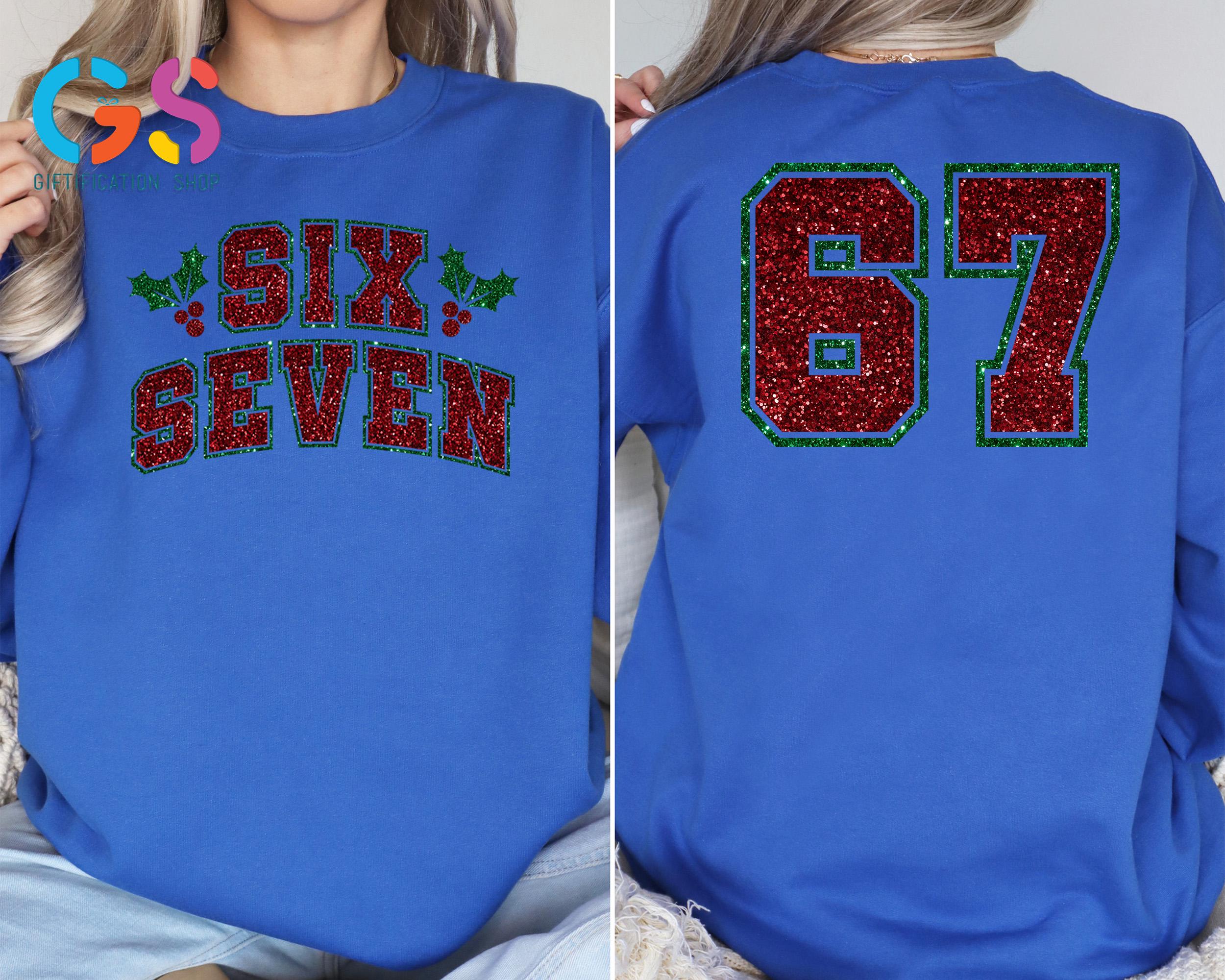 Christmas Six Seven Sweatshirt, Funny 67 Meme Xmas Sweater, Sarcastic Holiday Hoodie, Teen Gen Viral Woman Clothes