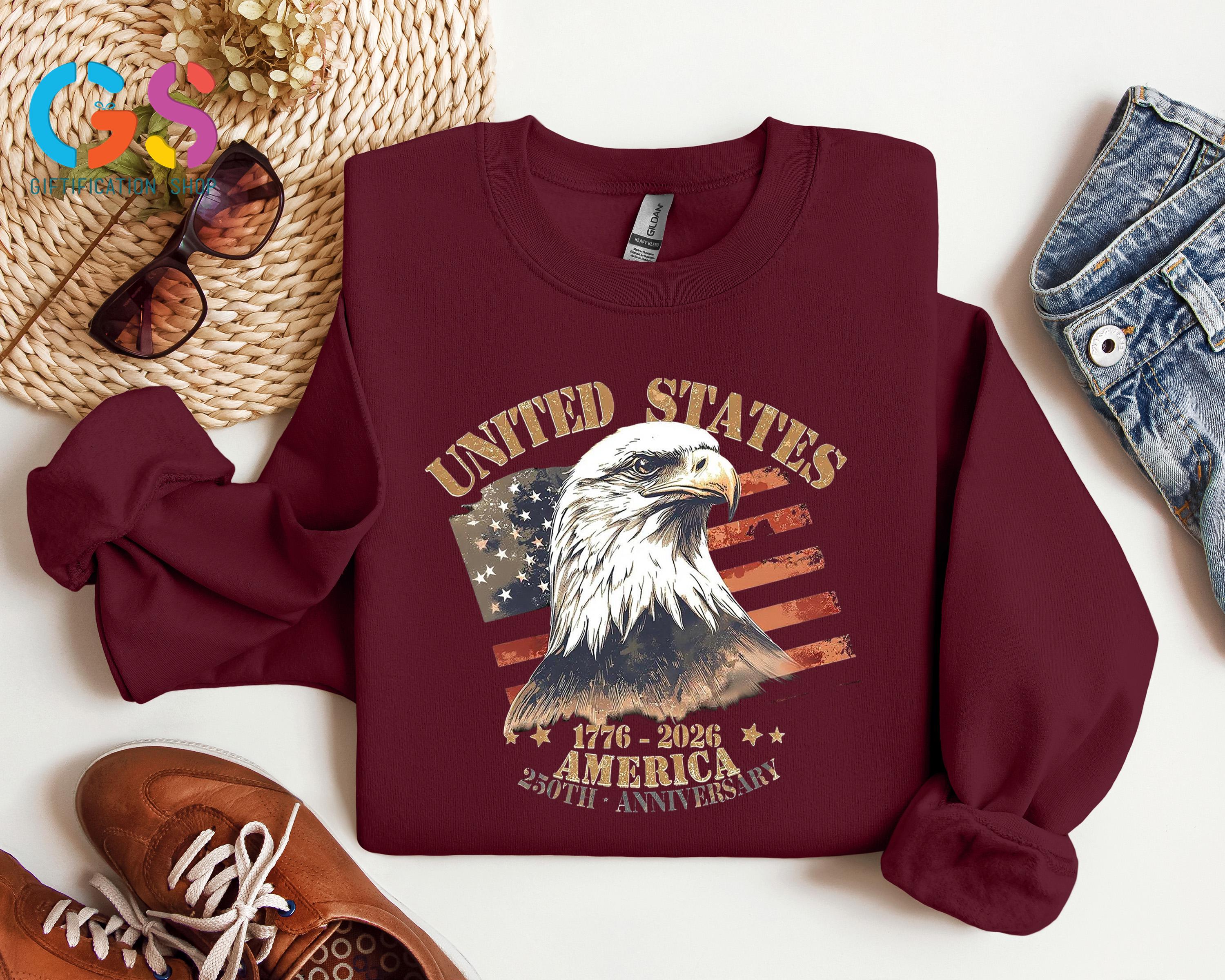 Celebrate America’s historic 250th anniversary with our USA 250th Anniversary America Sweatshirt! This patriotic eagle sweater is a bold tribute to the American flag and the bravery of the founding fathers, making it the perfect piece for any Memorial Day shirt, Independence Day celebration, or Patriot Day event. Featuring a powerful American eagle design and vibrant red, white, and blue colors, this freedom sweatshirt captures the spirit of the Revolutionary War and the strength of a nation. Ideal for military veteran gifts or anyone who proudly supports the USA, this America sweatshirt is the perfect way to show your patriotism all year round. Whether you're honoring the nation's past or celebrating the 250th anniversary of the United States, this patriotic sweatshirt is a must-have for every American!