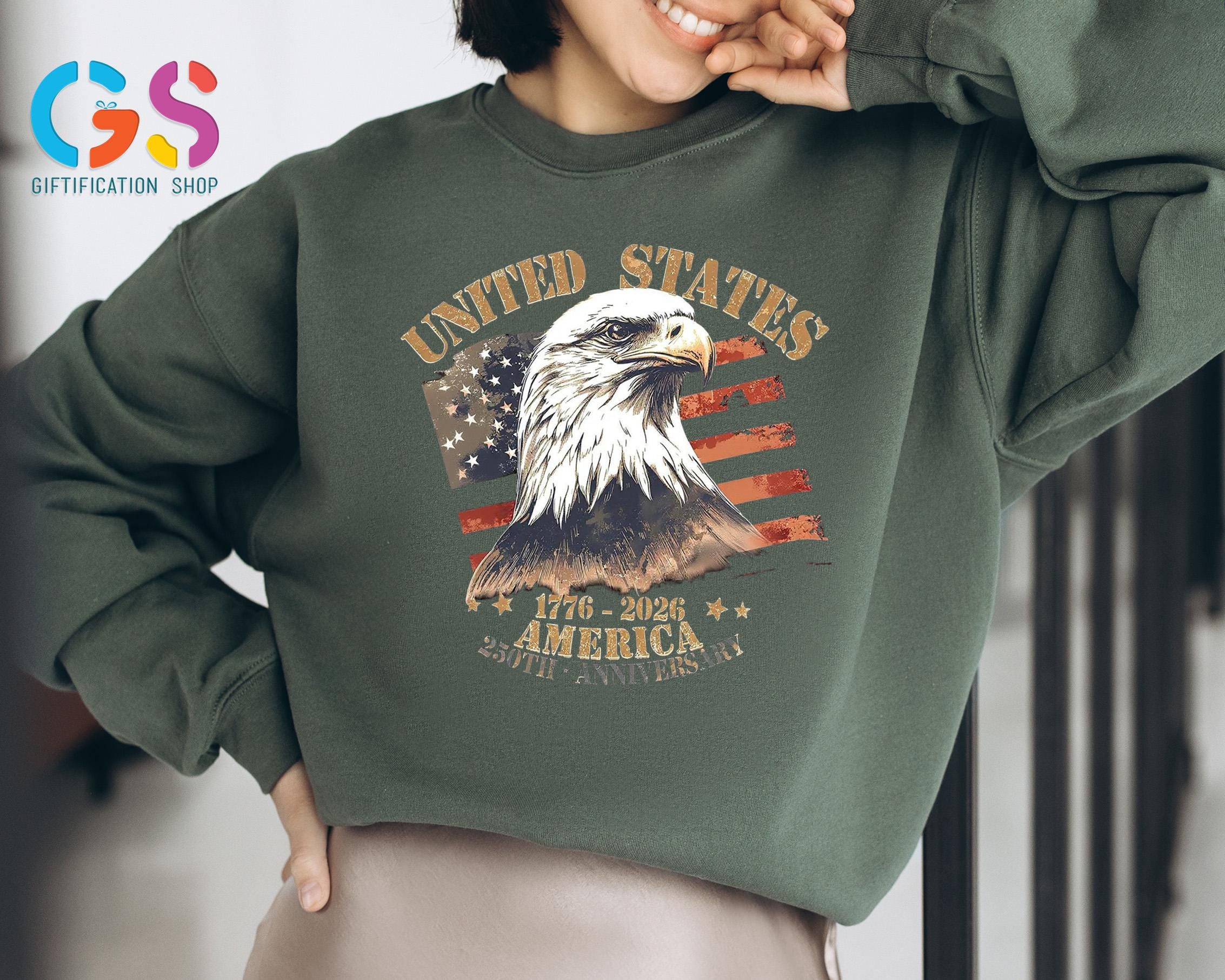 USA 250th Anniversary America Sweatshirt, Patriotic Eagle Sweater, Military Veteran Gift, Patriot Day Clothes