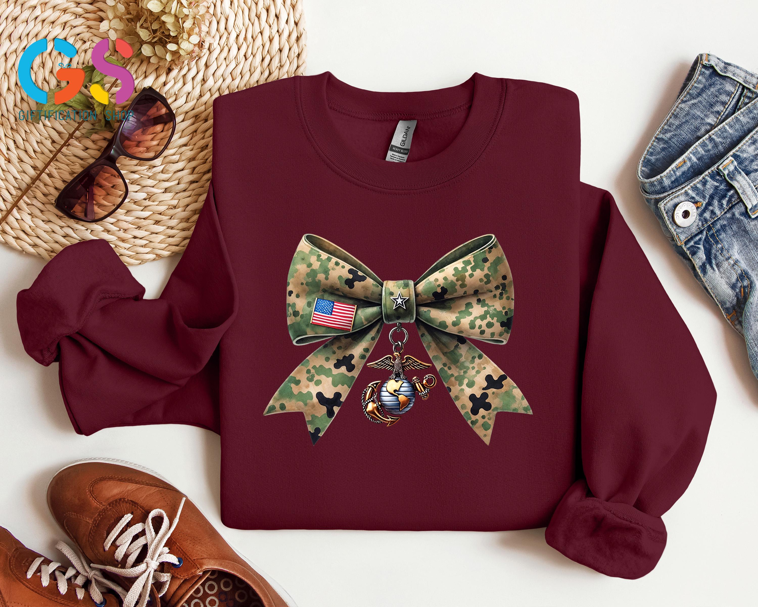 America Marine Sweatshirt, Patriotic Coquette Bow Anchor Sweater, Military Veteran Gift, USA 250th Anniversary Clothes