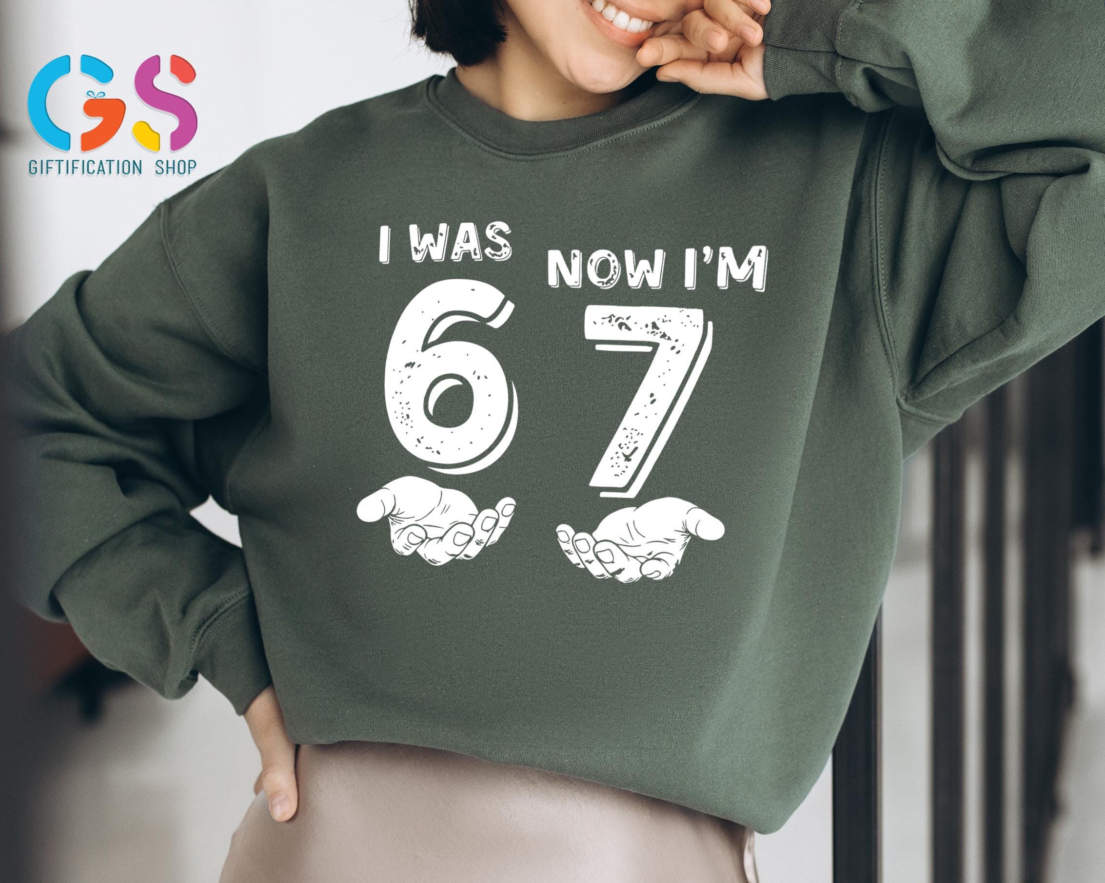 Get ready to embrace your six seven year with a laugh in our I Was 6 Now I’m 7 Sweatshirt! Perfect for anyone who loves meme humor, this funny viral meme sweater is a Gen Z and Gen Alpha favorite. Featuring a playful six seven shirt design, this cozy youth sweatshirt is ideal for those who appreciate sarcastic shirts and viral meme shirts. Whether you’re adding a bit of humor to your winter sweatshirt collection or just want to rock that 67 sweatshirt vibe, this piece will keep you comfy and laughing all season long. A must-have for anyone who loves a good meme gen z shirt or cozy sweatshirt with a side of humor!