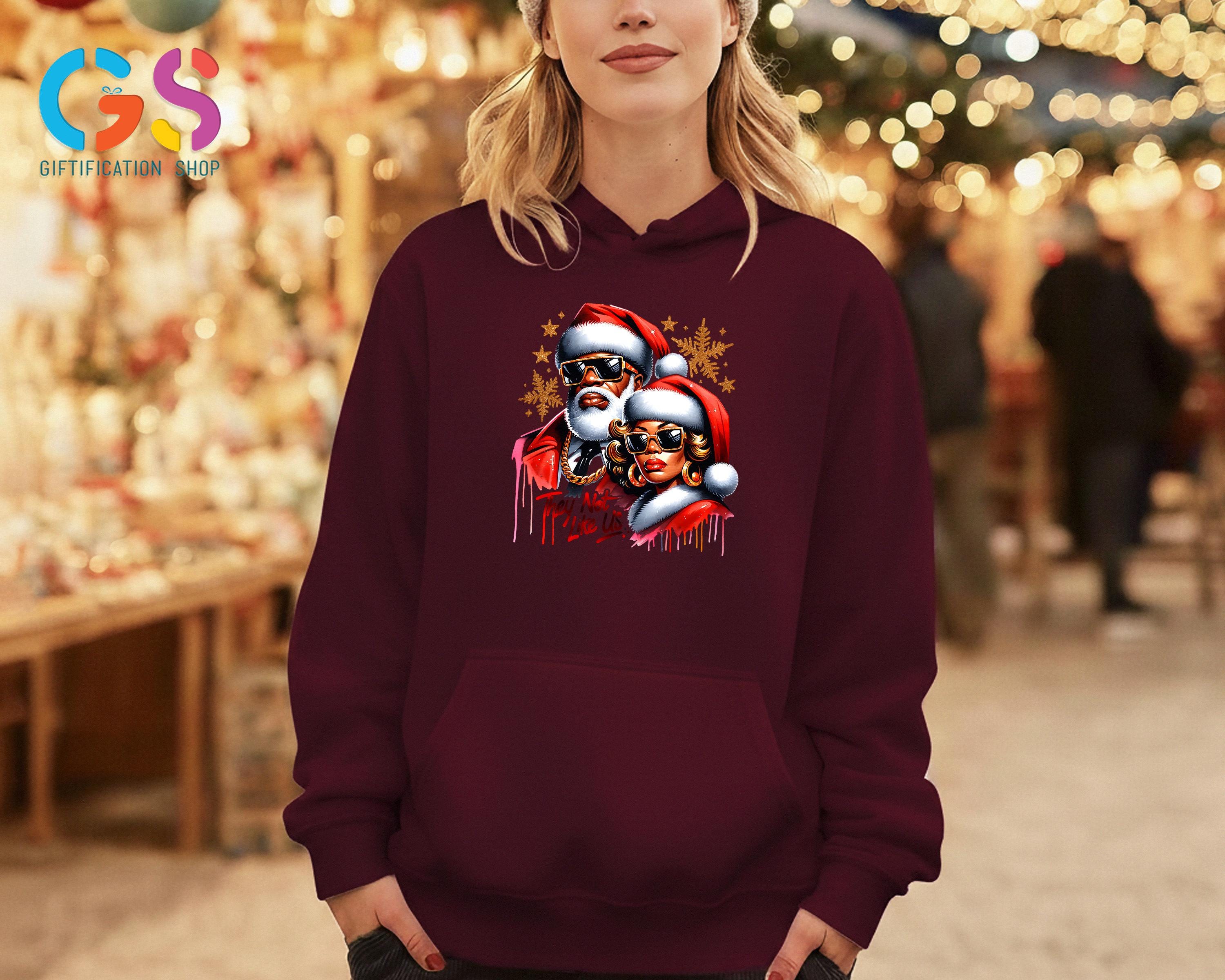 Black Santa Sweatshirt, Mr. Mrs. Claus Sweater, Xmas Holiday Hoodie, Merry Christmas African American Clothing