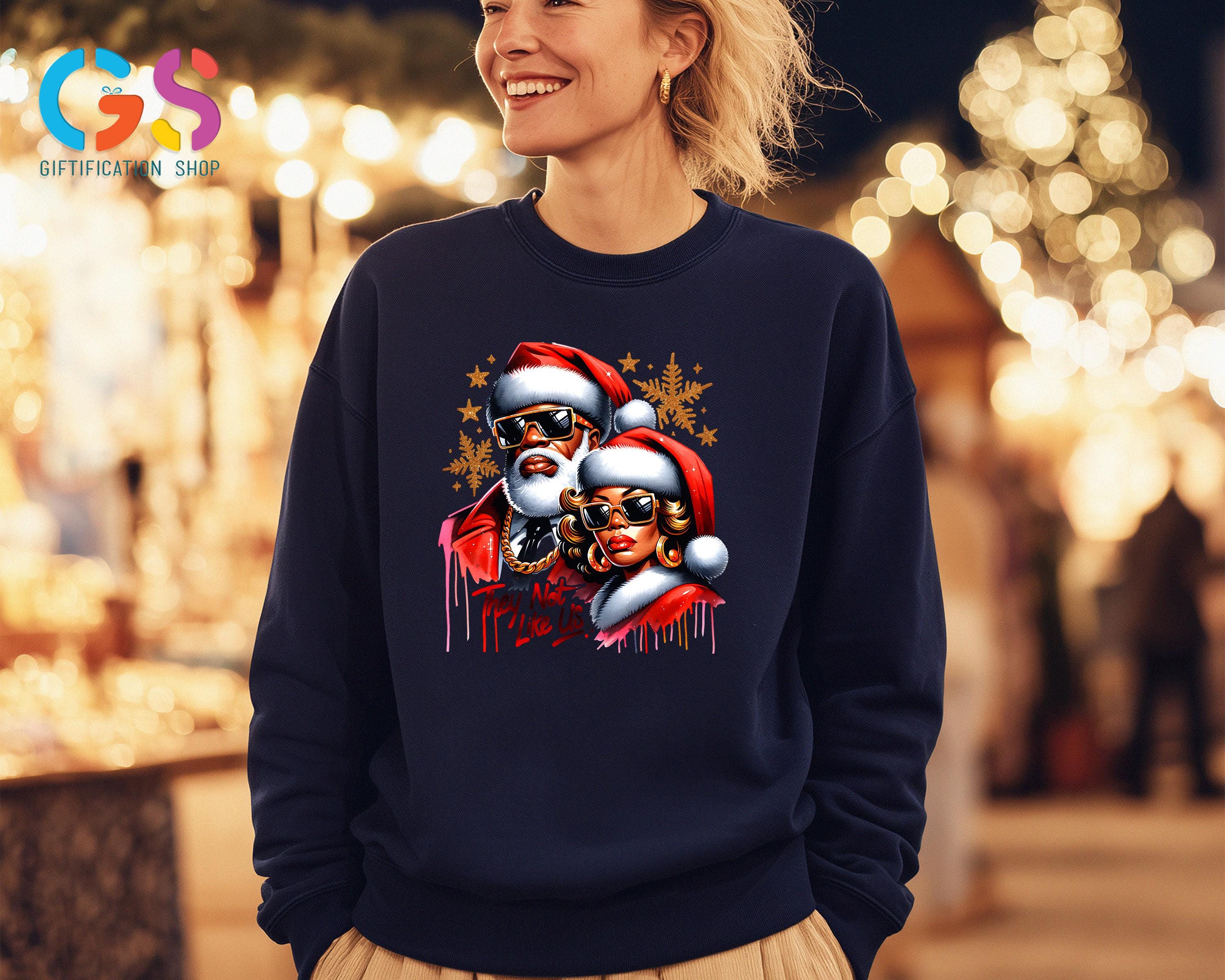 Celebrate the season with joy and style in our Black Santa Sweatshirt! This festive Christmas sweatshirt features a vibrant Black Santa design, bringing Christmas vibes and holiday cheer to your wardrobe. Whether you're rocking it for Merry Christmas wishes or just enjoying the season, this Xmas sweatshirt is perfect for spreading love and warmth. The Mr. Mrs. Claus Sweater design adds a fun twist, making it ideal for couples or families celebrating together. A must-have Christmas gift for anyone who loves African American holiday clothing, this piece is a beautiful way to embrace and honor African Christmas traditions. Cozy up in this holiday sweater and make your Christmas even more memorable this year!
