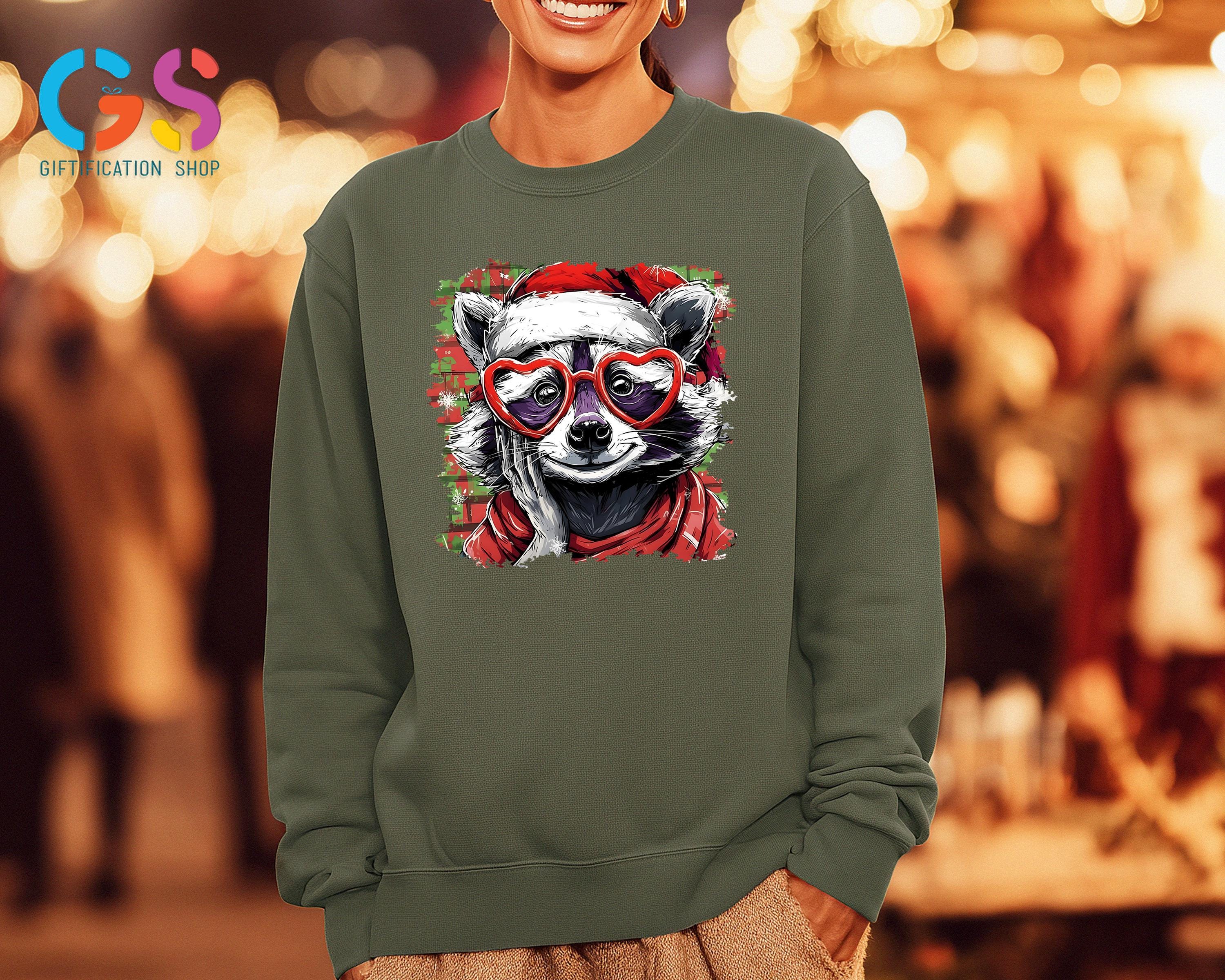 Merry Trashmas Sweatshirt, Christmas Raccoon Sweater, Funny Xmas Hoodie, Feral Animal Lover Santa Season Clothing