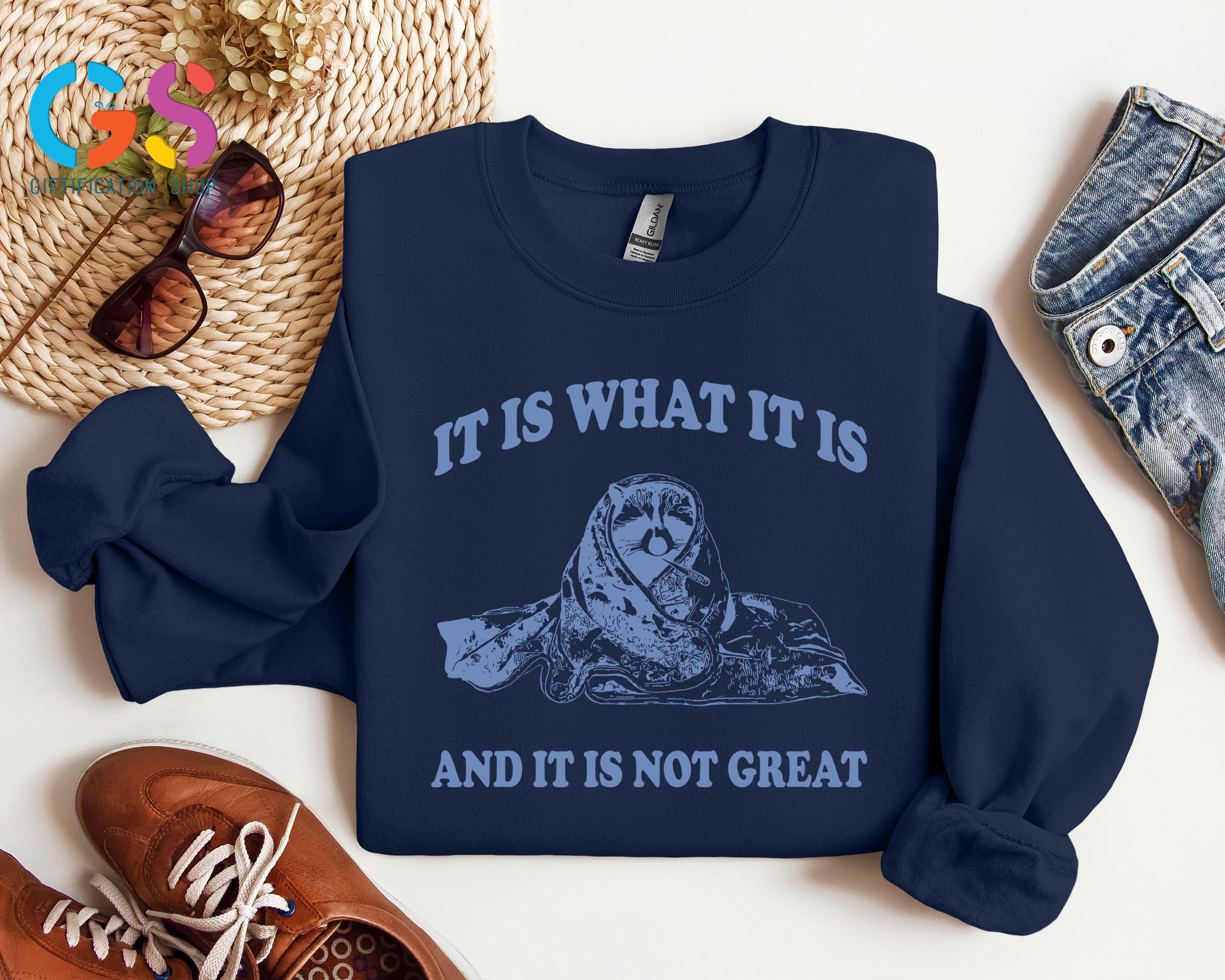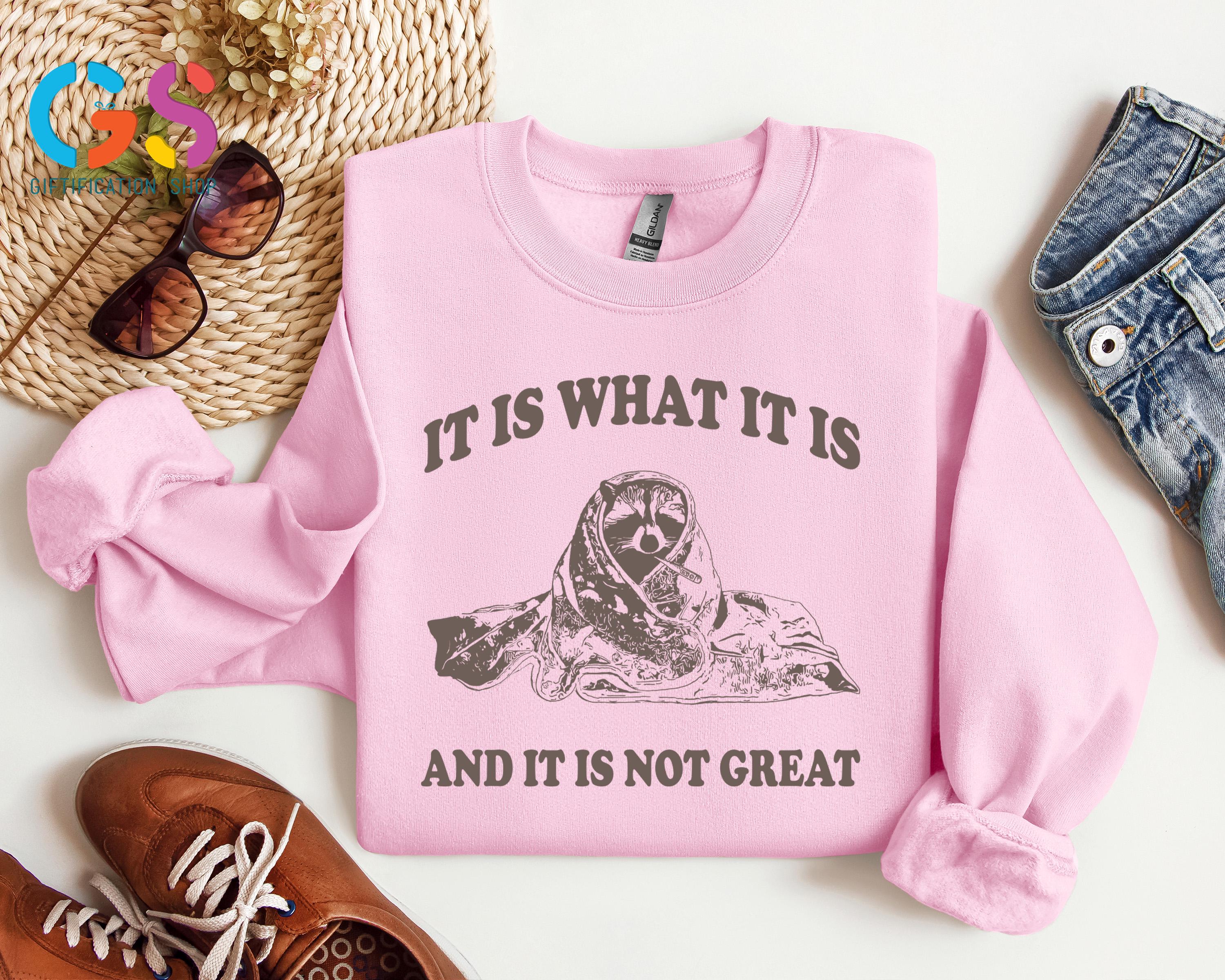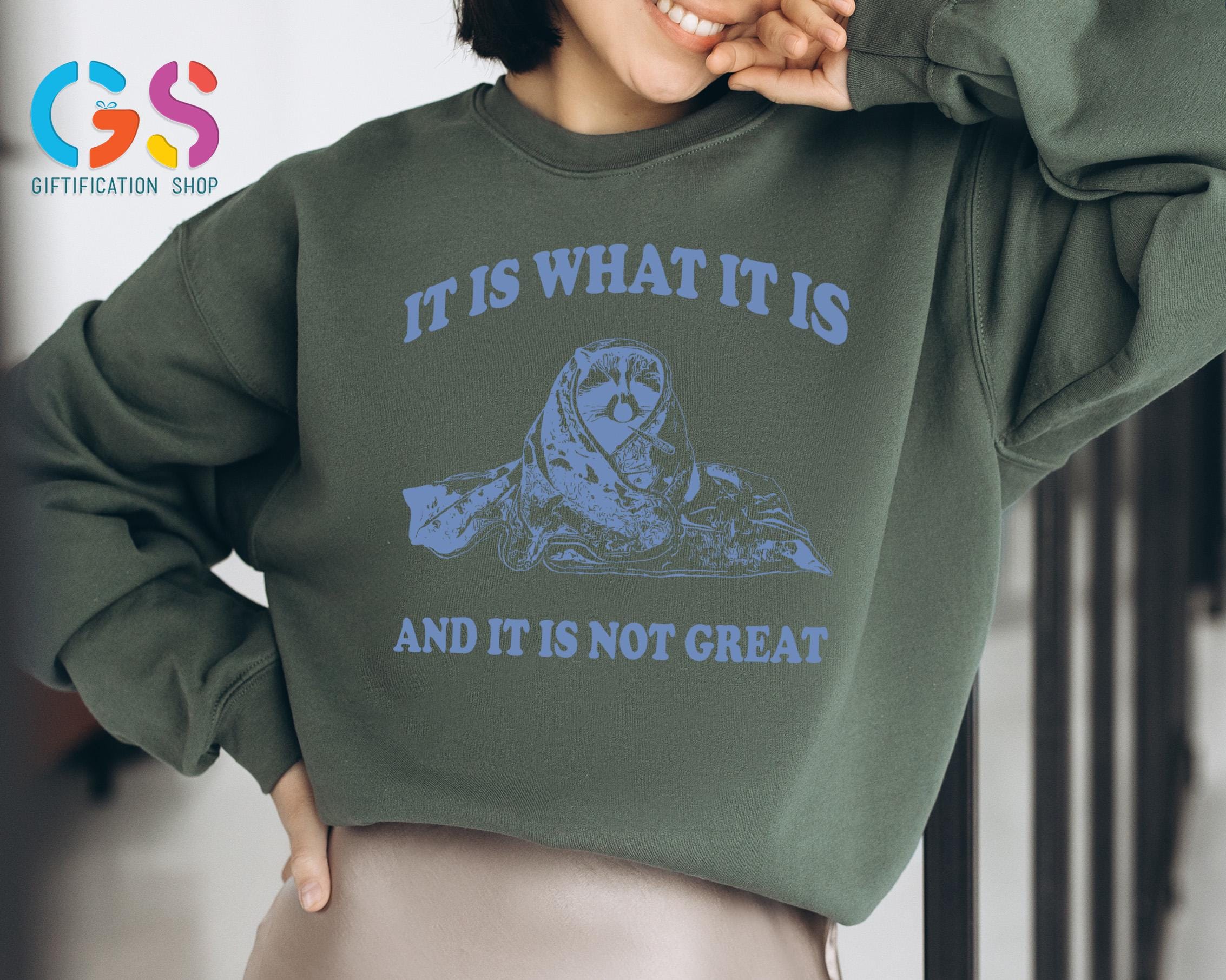 It Is What It Is And It Is Not Great Sweatshirt, Meme Raccoon Sweater, Funny Saying Gag Hoodie, Mental Health Clothing