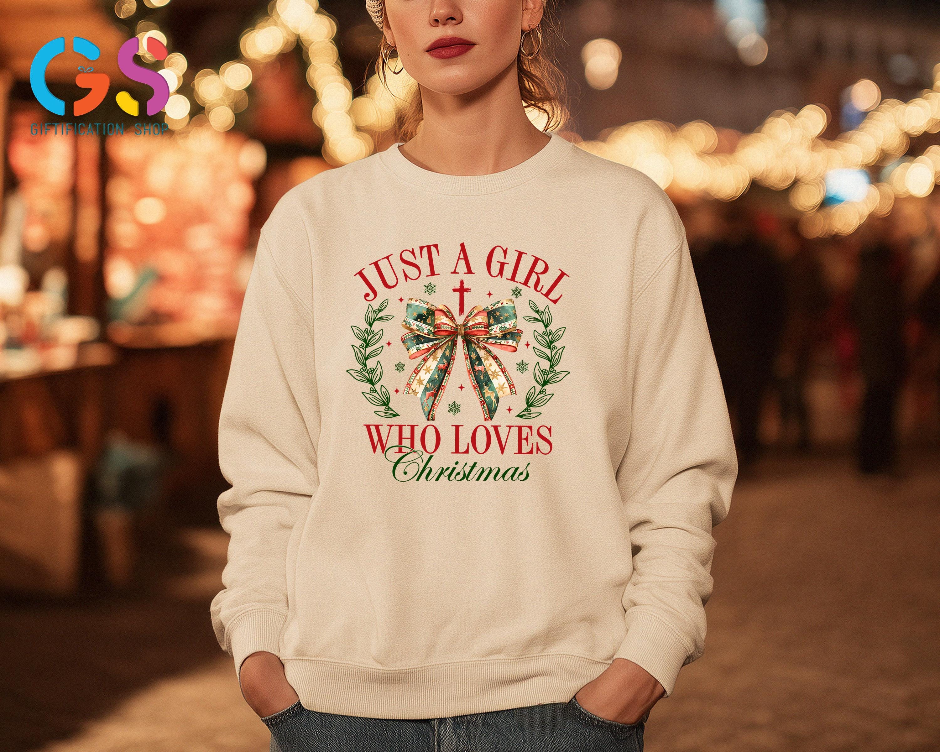 Embrace the Christmas vibes with the Just A Girl Who Loves Christmas Sweatshirt! This cozy holiday sweatshirt captures the magic of the season, blending girly Christmas charm with a touch of faith. Featuring a beautiful Christian cross design, this winter sweatshirt is the perfect way to show your love for the Christmas season and merry Christmas spirit. Ideal for anyone who adores the holiday season, this Xmas shirt adds a coquette Christmas touch, making it perfect for all your festive gatherings. Pair it with your favorite jeans or leggings for an effortless yet festive look this New Year. It’s the perfect gift for those who love to celebrate with faith, style, and a whole lot of Christmas cheer!