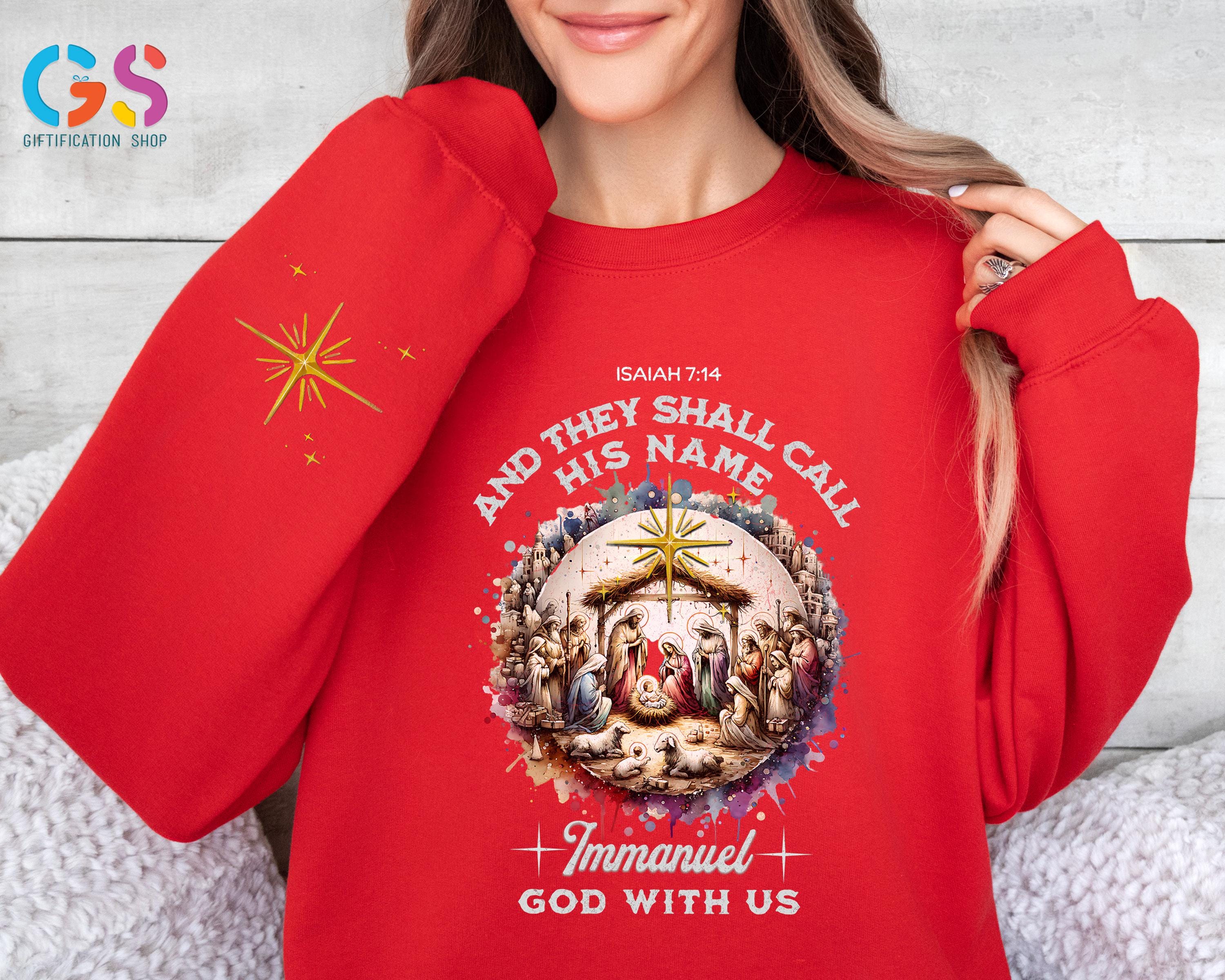 God With Us Sweatshirt, Nativity Scene Sweater, Jesus Christ Christmas Faith Hoodie, Bible Verse Holiday Birth Clothing
