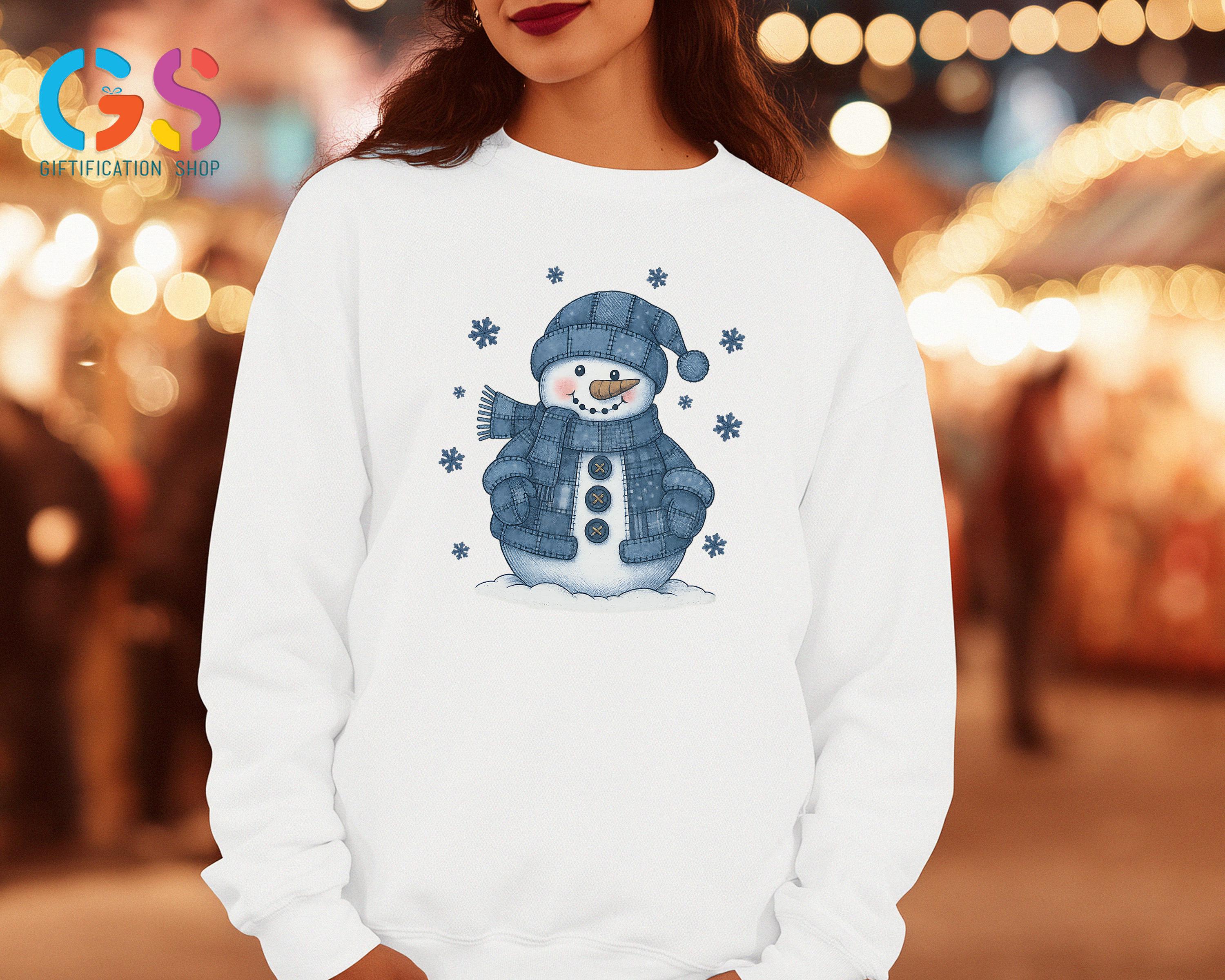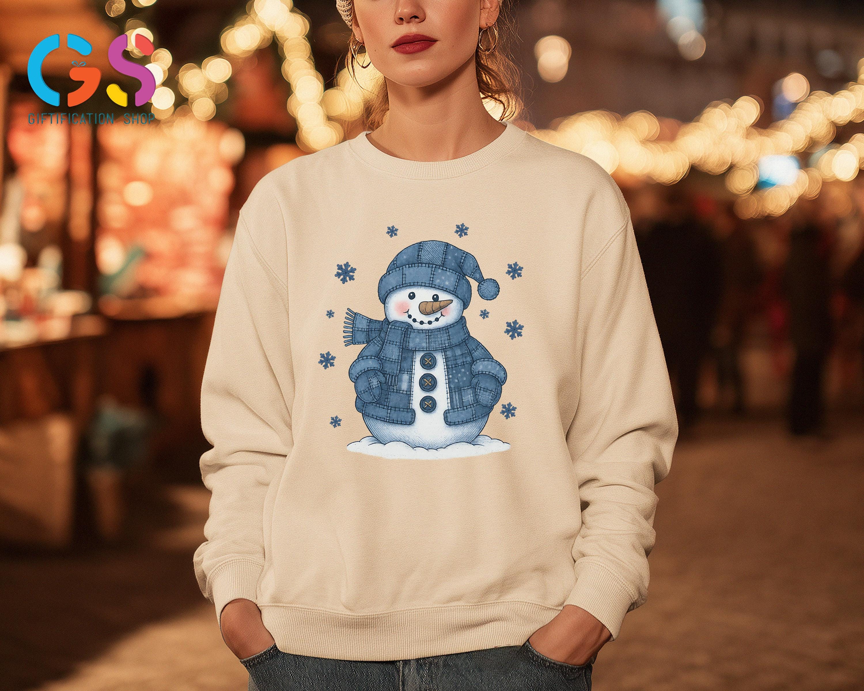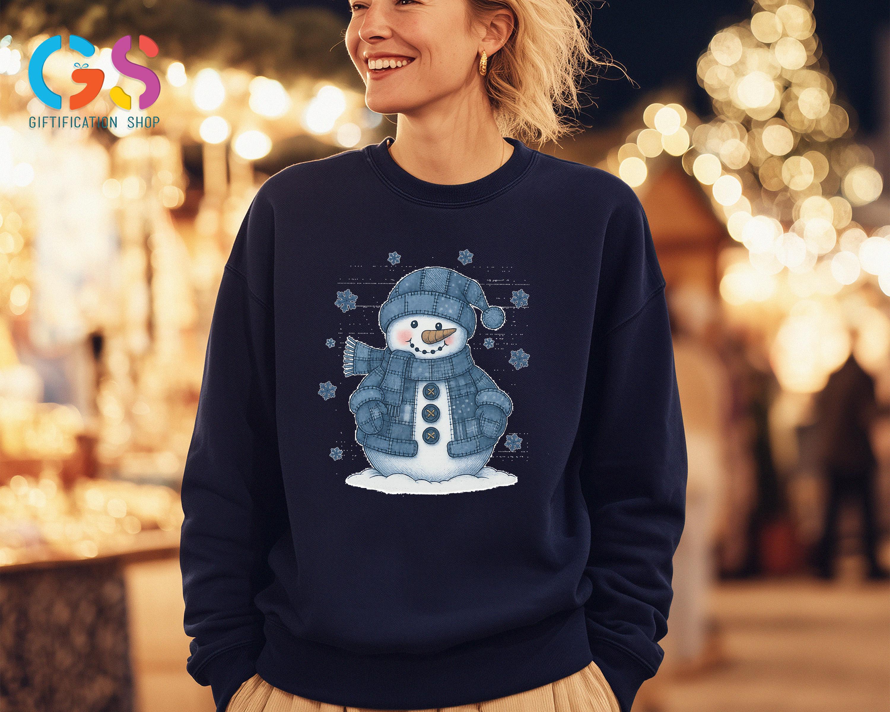 Get into the festive spirit with the Denim Snowman Sweatshirt, a perfect blend of cozy and chic for the winter season! This pieced fabric sweater features a charming denim snowman design, adding a touch of unique style to your Christmas sweatshirt collection. Whether you're snuggling up for the holidays or heading out to a winter wonderland, this winter blue snowflake apparel will keep you warm and stylish. Ideal for Christmas gifts or a festive gift for someone special, this cozy sweatshirt is the perfect way to celebrate the new year in style. With its holiday sweatshirt vibe, this denim snowman design is sure to be your go-to for a merry sweatshirt look this winter.