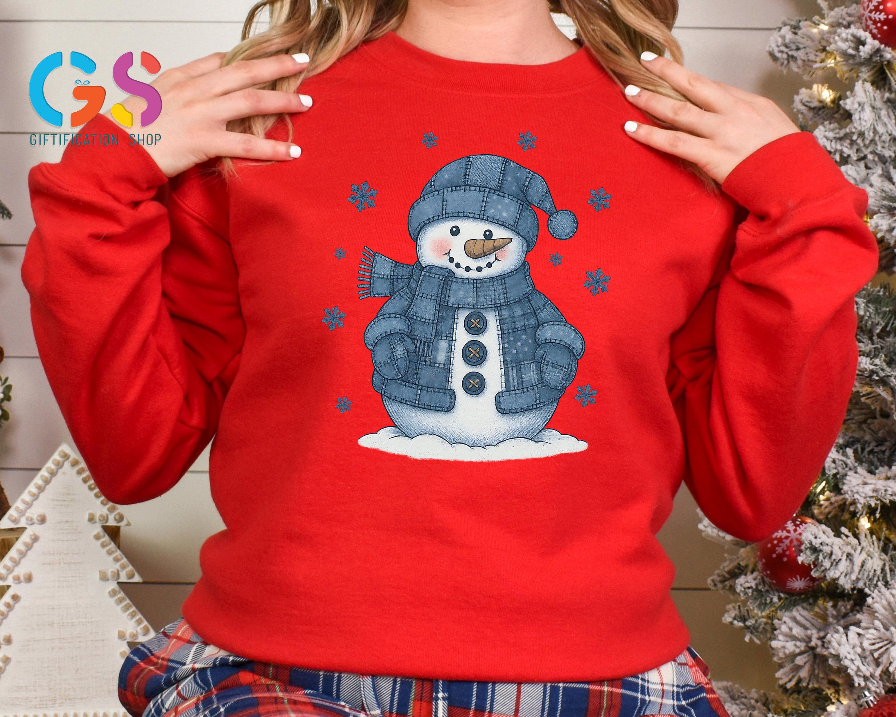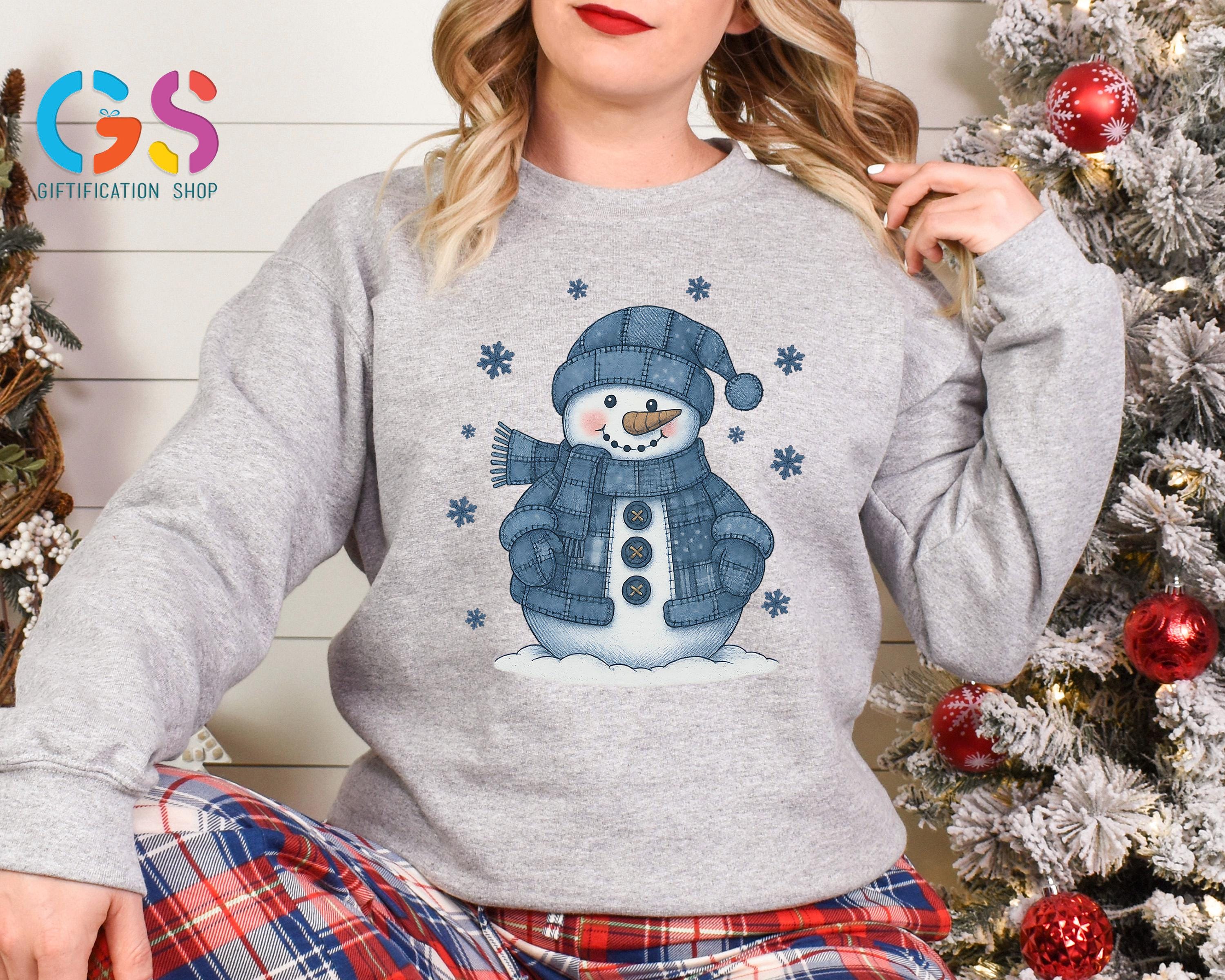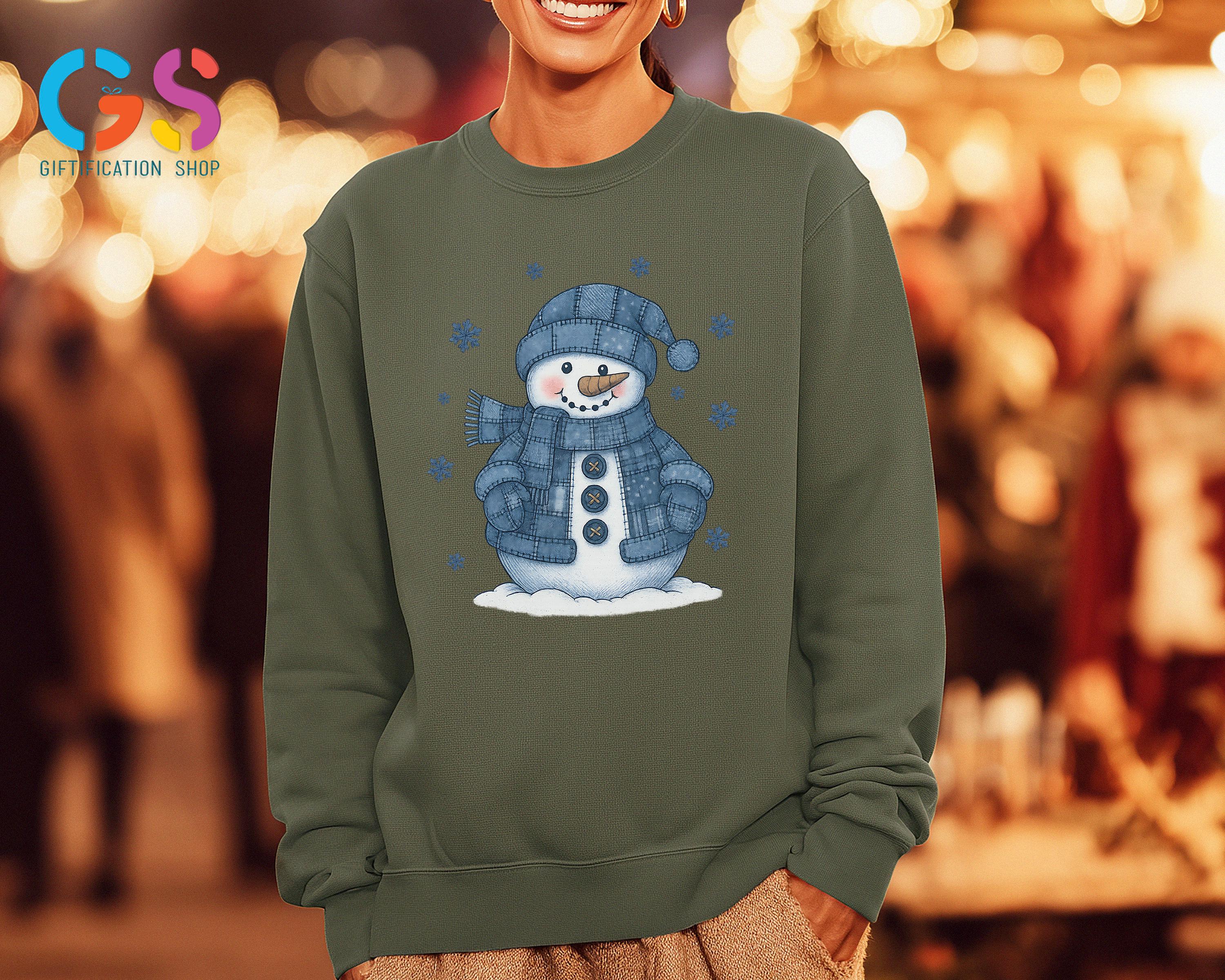 Get into the festive spirit with the Denim Snowman Sweatshirt, a perfect blend of cozy and chic for the winter season! This pieced fabric sweater features a charming denim snowman design, adding a touch of unique style to your Christmas sweatshirt collection. Whether you're snuggling up for the holidays or heading out to a winter wonderland, this winter blue snowflake apparel will keep you warm and stylish. Ideal for Christmas gifts or a festive gift for someone special, this cozy sweatshirt is the perfect way to celebrate the new year in style. With its holiday sweatshirt vibe, this denim snowman design is sure to be your go-to for a merry sweatshirt look this winter.