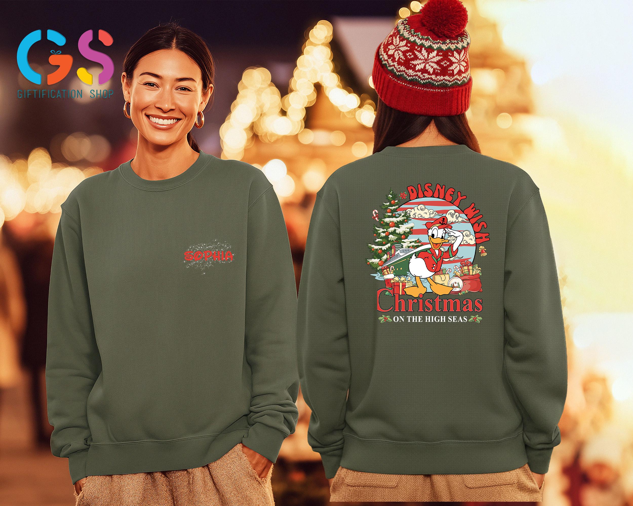 Celebrate the holiday season in true Disney style with the Custom Name Disney Character Christmas Sweatshirt. Perfect for your Disney vacation or Disney cruise, this personalized sweatshirt is a festive way to bring your family together. Whether you're celebrating with Disney characters like Mickey and Friends or rocking Disney couples designs, this matching Christmas sweatshirt adds that extra magic to your Christmas squad celebration. A great Christmas gift, this cruise sweatshirt is ideal for your cruise trip or for anyone looking to make their Disney cruise memories extra special. Customize it with your name for a one-of-a-kind Disney-themed Christmas sweatshirt, and show off your family’s love for the most magical place on earth while spreading festive cheer!