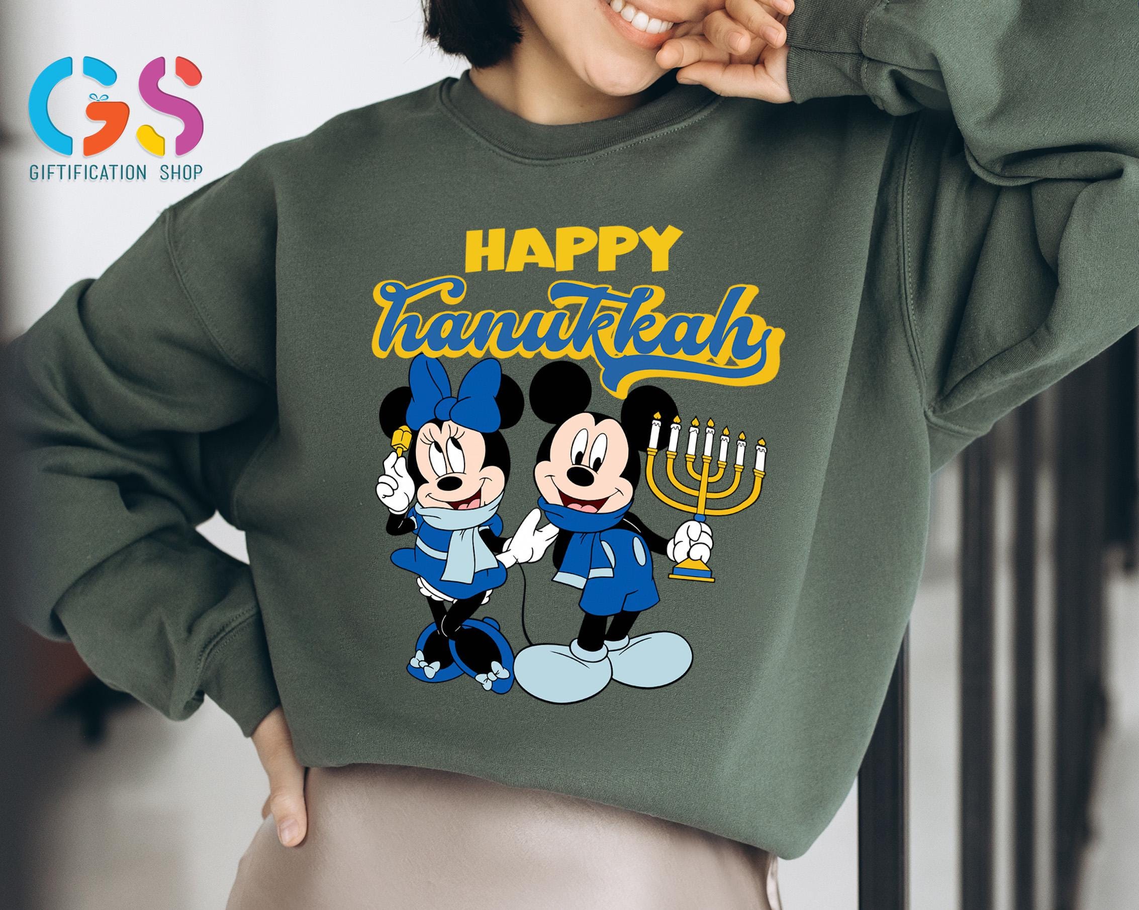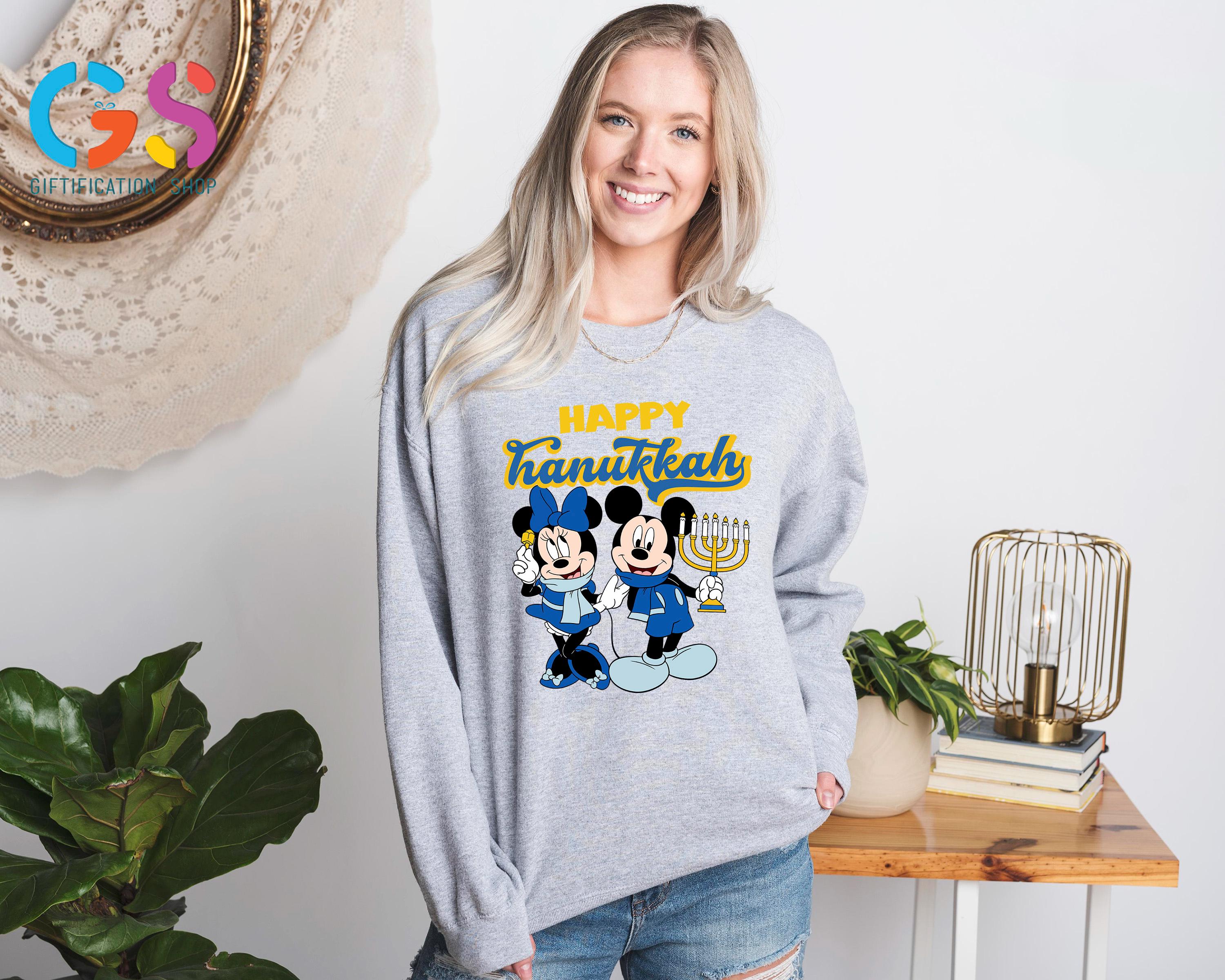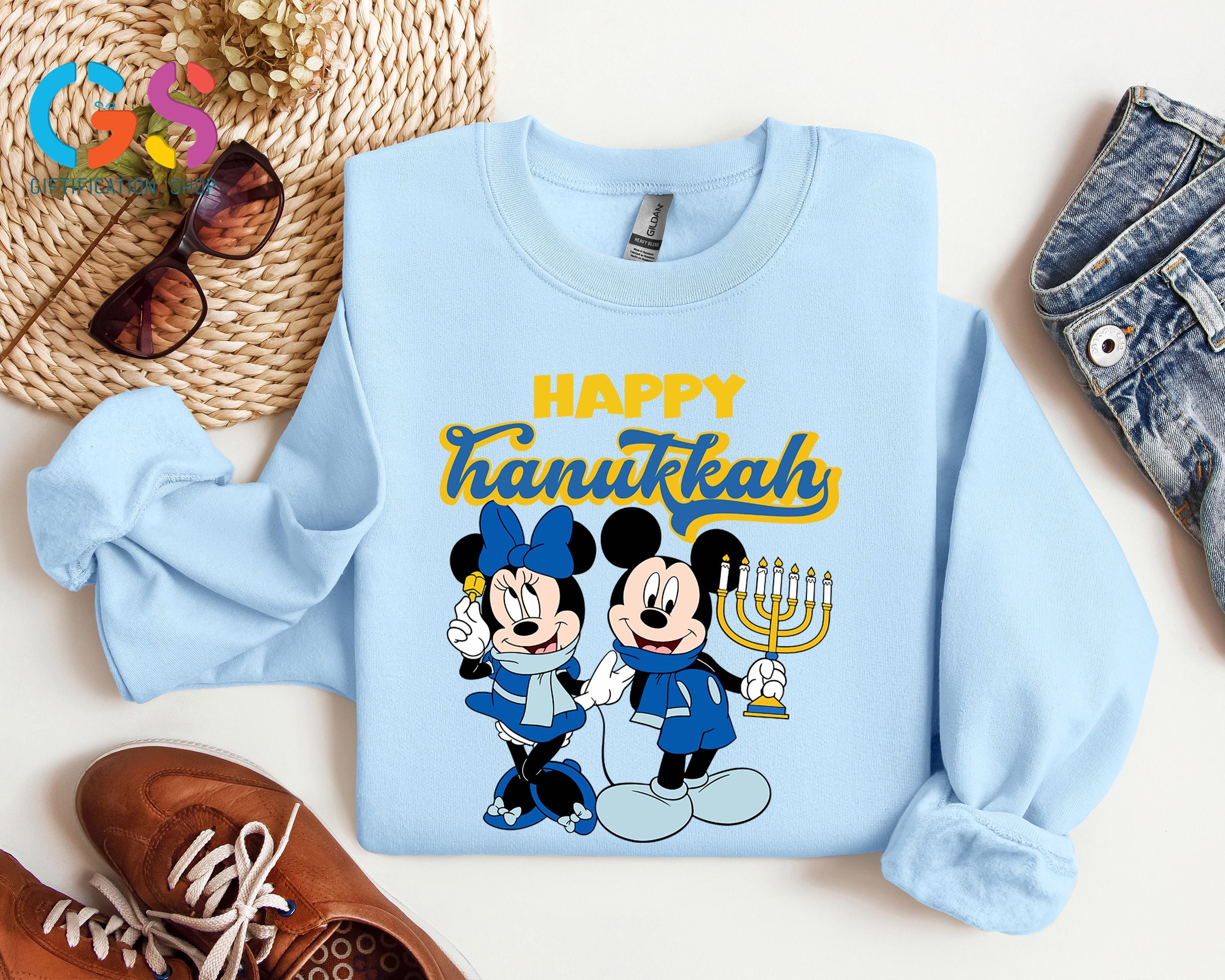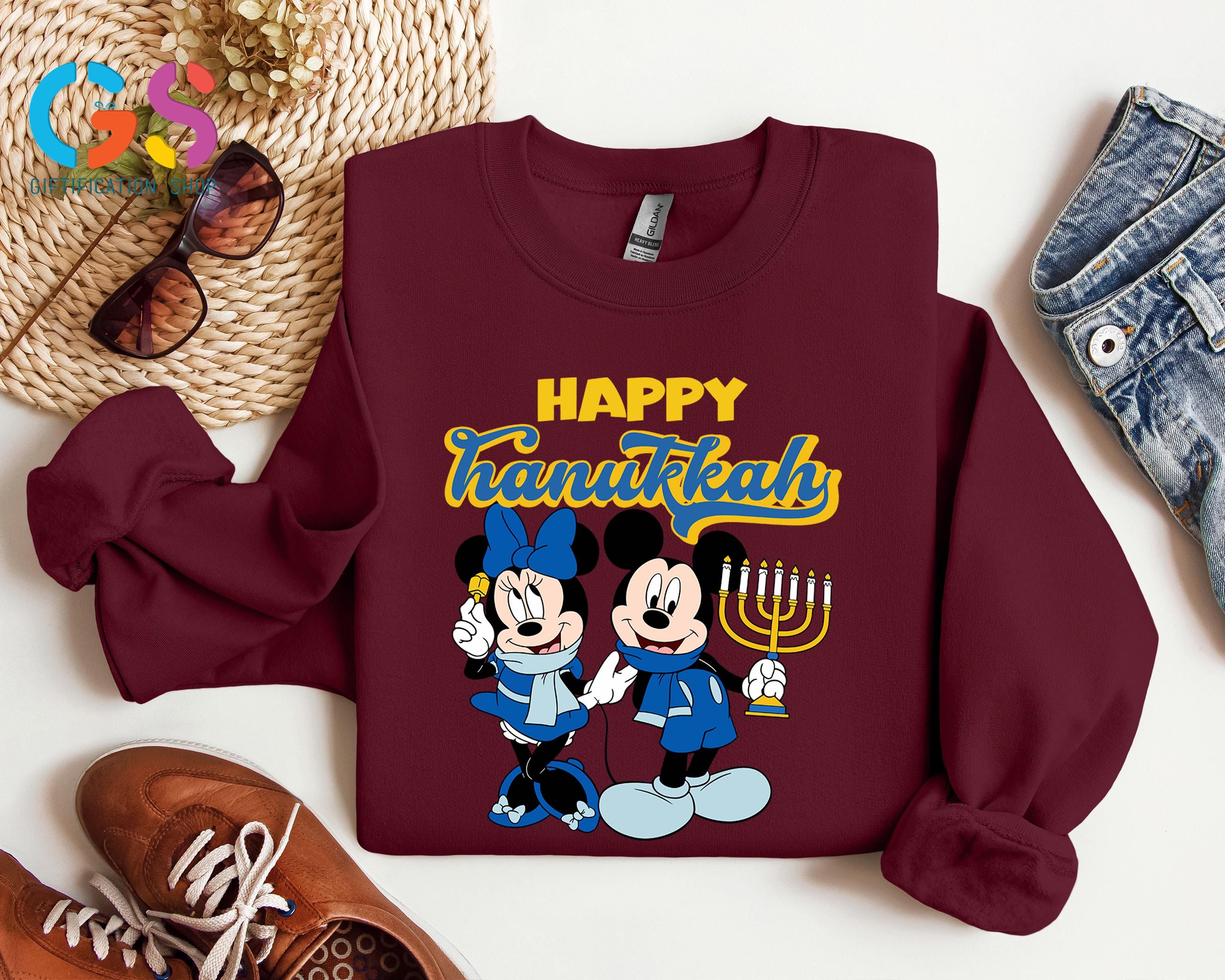 Happy Hanukkah Disney Sweatshirt, Mickey & Minnie Chanukah Sweater, Disneyland Trip Apparel, Holiday Jewish Clothes
