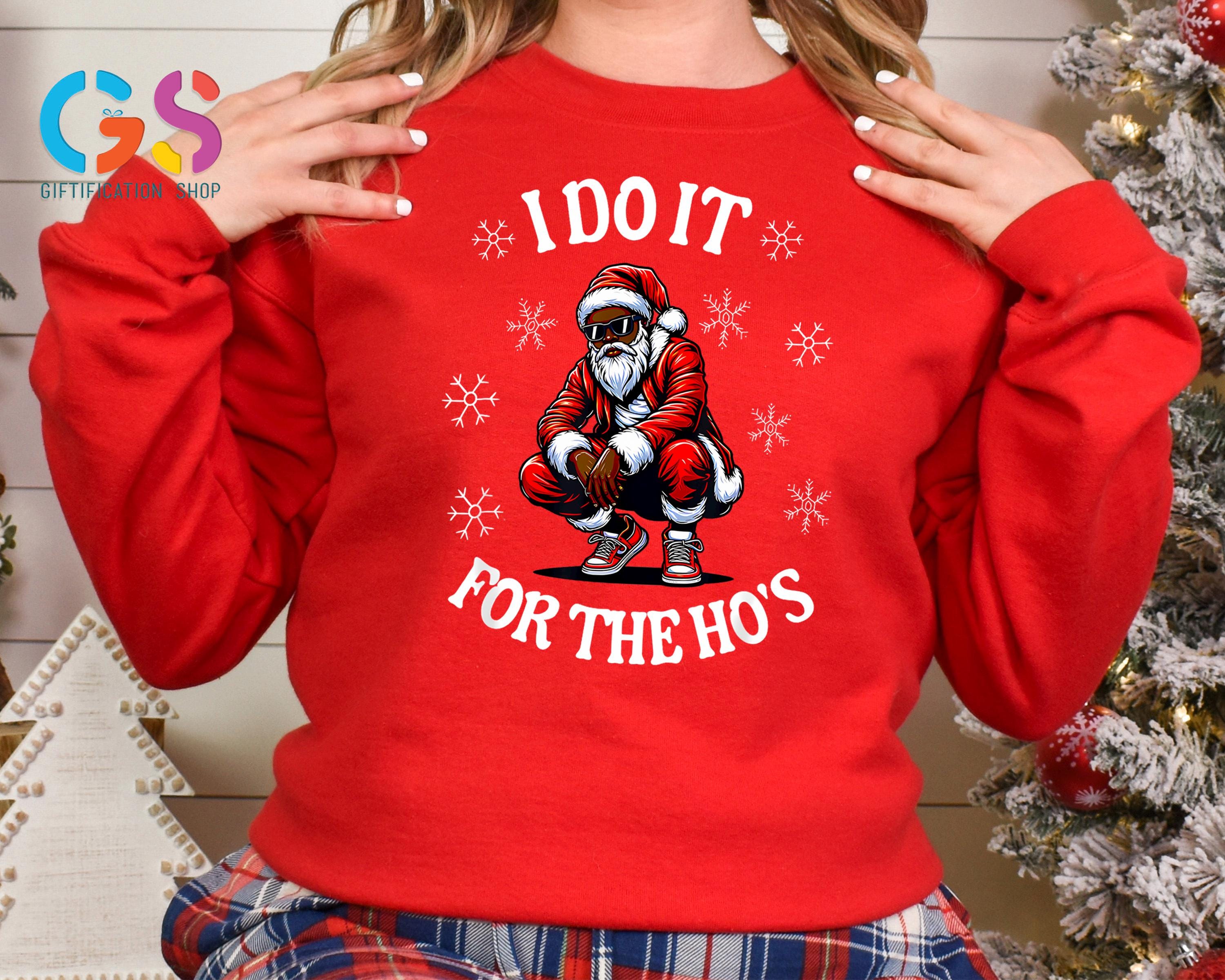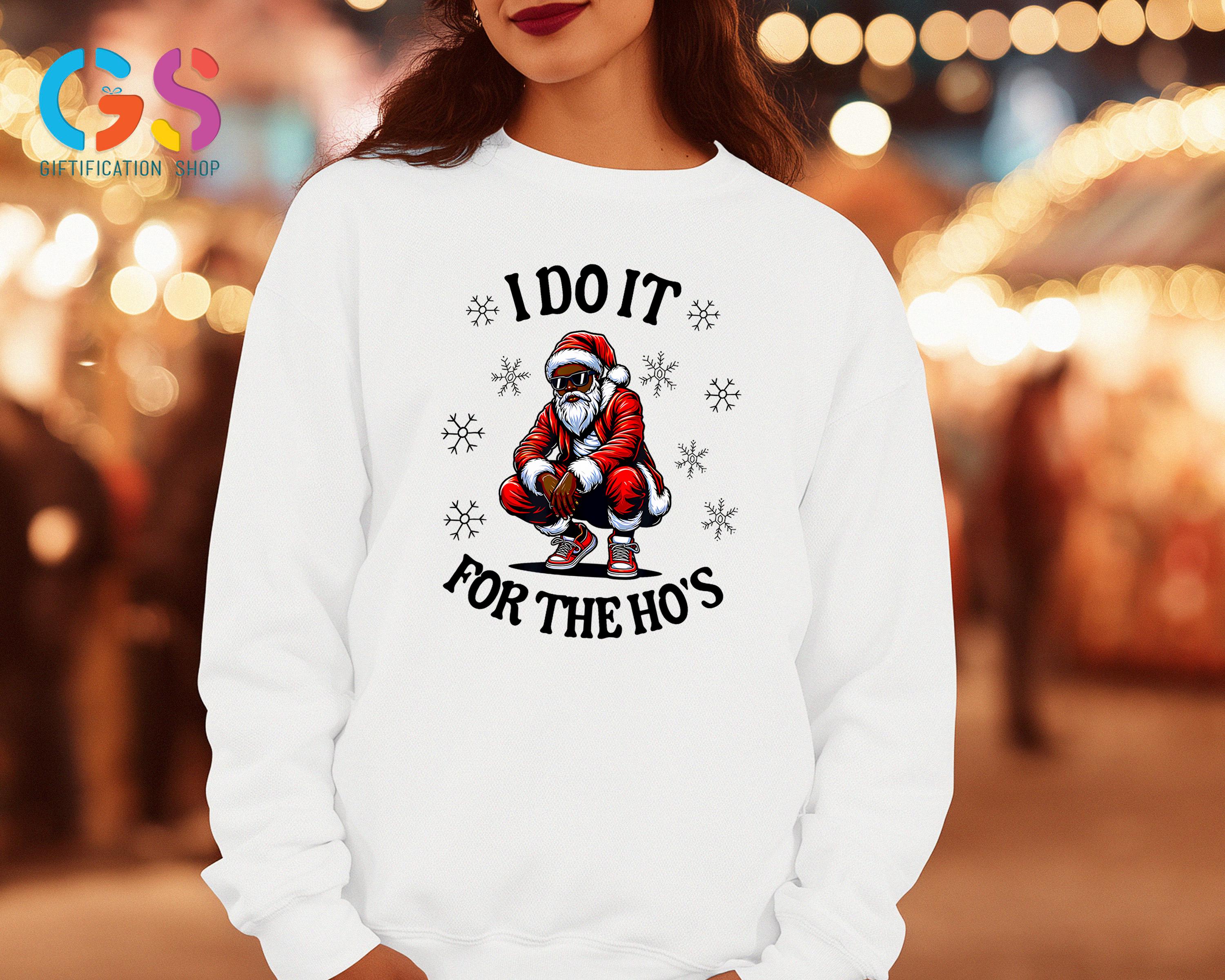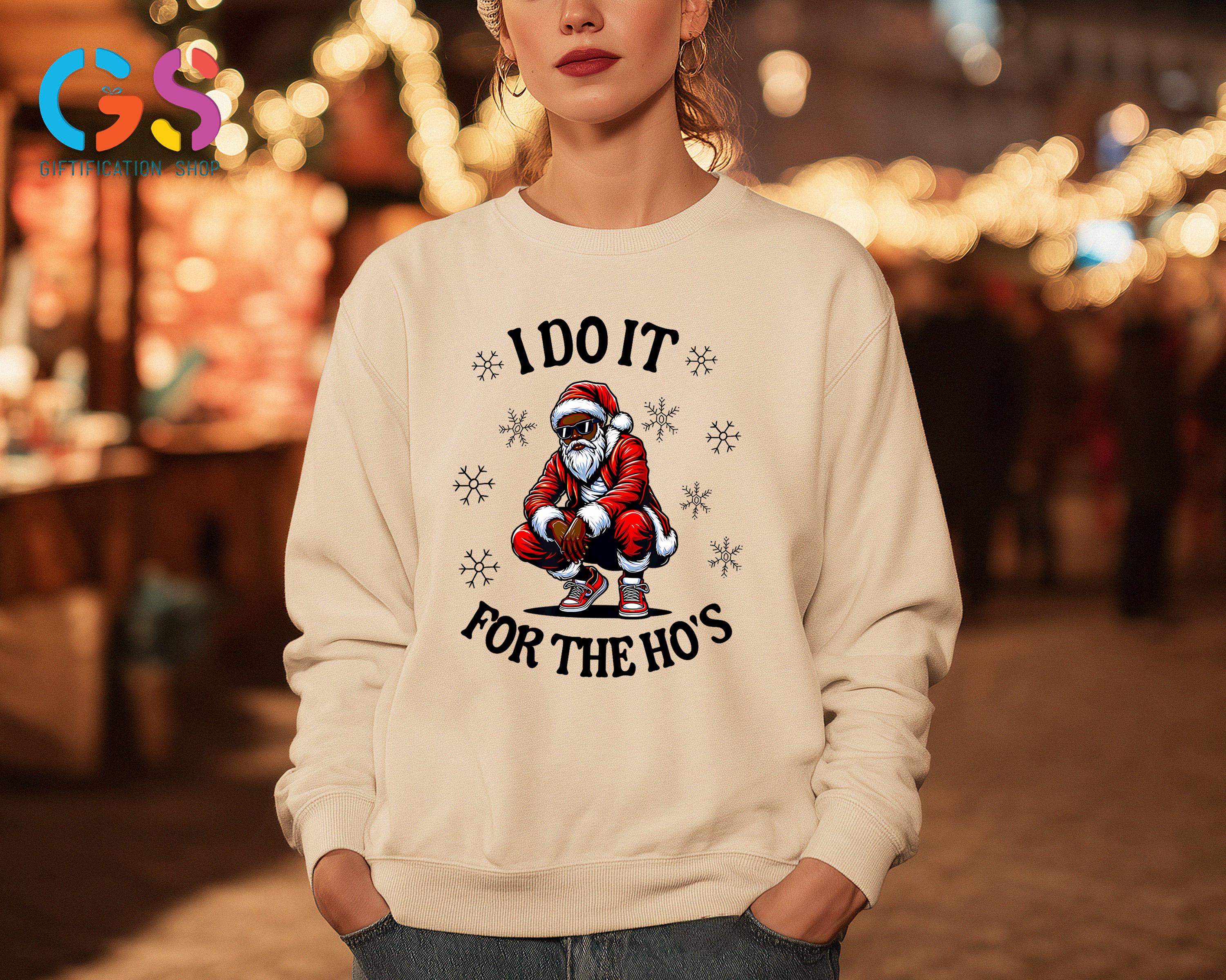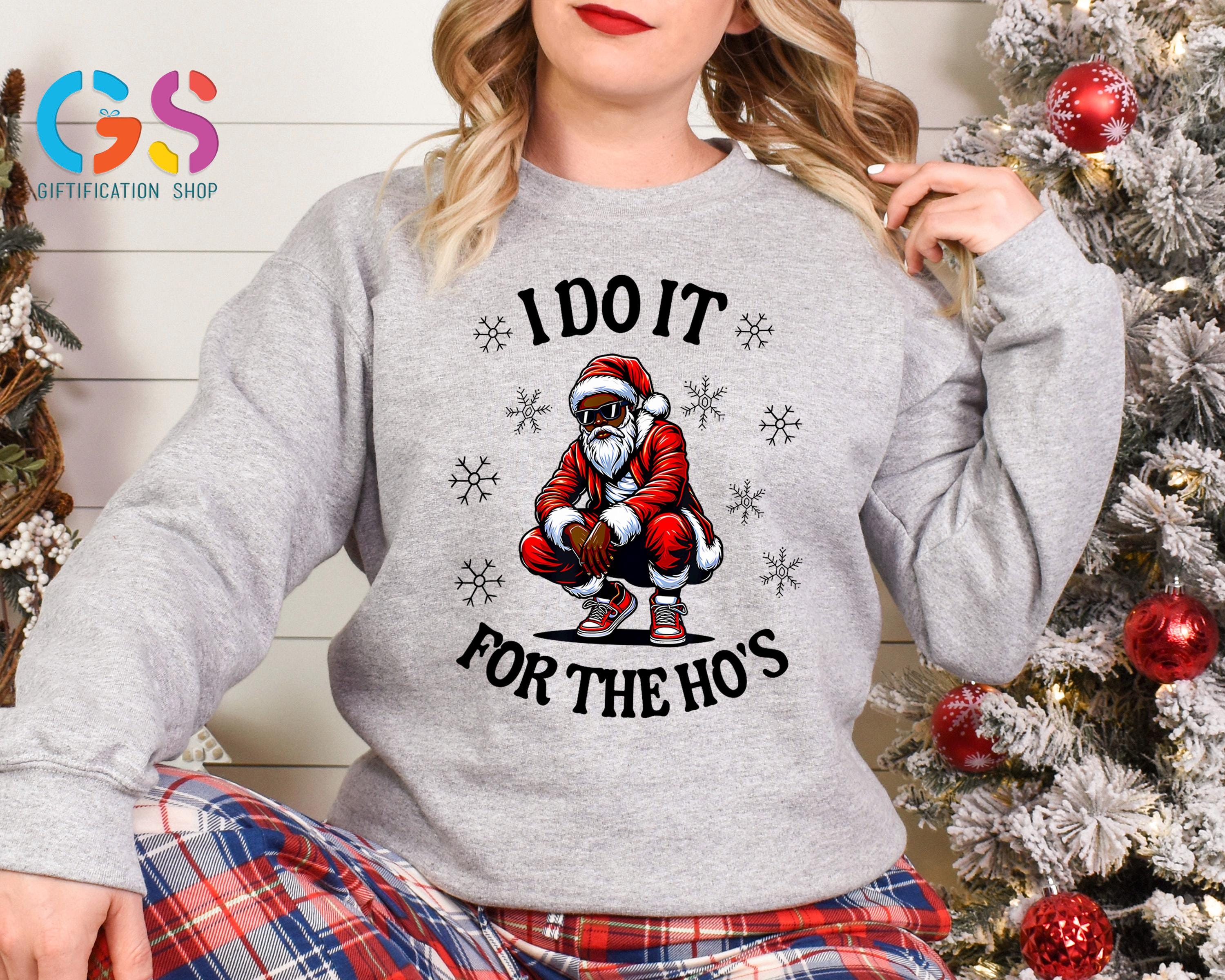 Black Santa Claus Christmas Sweatshirt, I Do It For The Ho's Sweater, African American Merry Xmas Gift, Holiday Clothing